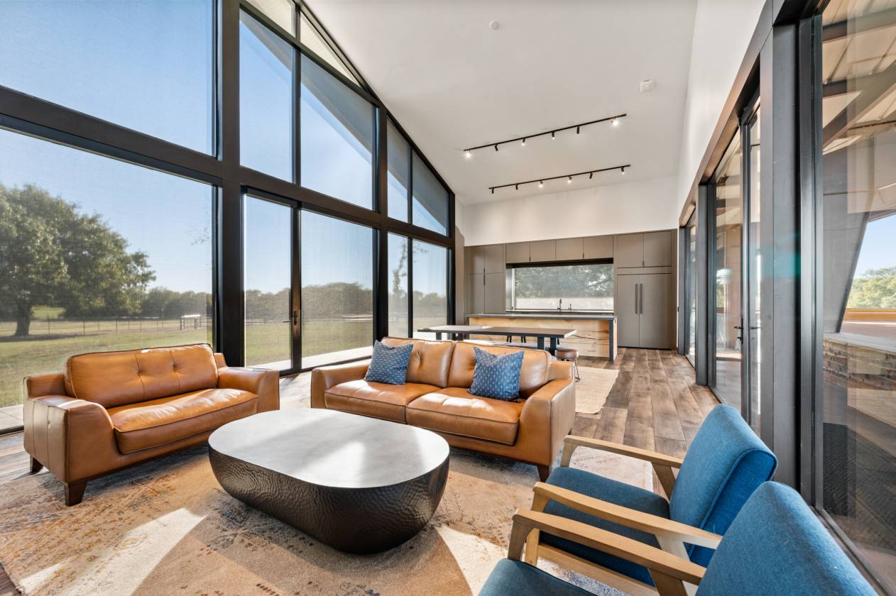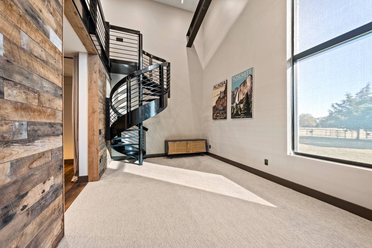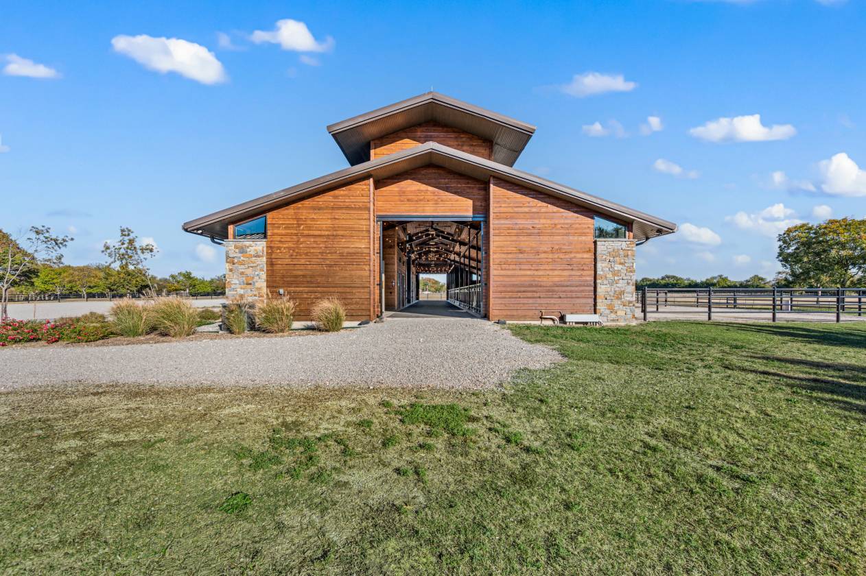 Experience premier equestrian living on nearly 50 acres of beautifully maintained North Texas land, offering exceptional facilities, thoughtful design, and unmatched versatility. This property combines Tract 23 (40.849 acres) and Tract 333 (8.946 acres) for a total of 49.795 acres, providing the perfect blend of functionality and elegance for both horse and rider. At the heart of the property sits an impressive 122' x 46' barn, thoughtfully designed with removable stall walls allowing up to eight individual stalls or four oversized double stalls. The barn features two wash bays (one on each end), two tack bays, a kitchen, tack room, bathroom, feed room, storage, and a dedicated entrance. Practicality meets sophistication with black equine paver tile flooring throughout the aisleway—safe and non-slip for horses. Access points include a large roll-up door on the south side and double sliding doors at each end, offering excellent ventilation and flow. Adjacent to the barn is the impressive 160' x 200' covered arena, ideal for year-round training and events. Nearby, the observation area and lounge offer comfort and hospitality, featuring a full kitchen, dining area, living room, lounge, two dressing rooms, and two bathrooms on the main level. A spiral staircase leads to a private loft bedroom and closet, creating the perfect retreat or guest accommodations. The property includes scenic walking and riding trails, enhancing both beauty and functionality for equestrian and outdoor lifestyles alike. This remarkable estate delivers the space, amenities, and craftsmanship to support the highest level of equine care, recreation, and relaxation.
