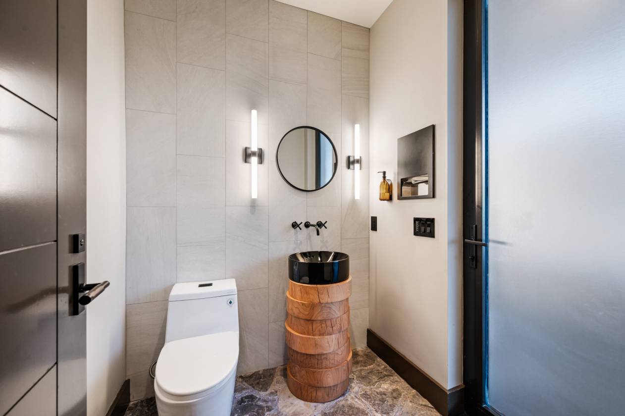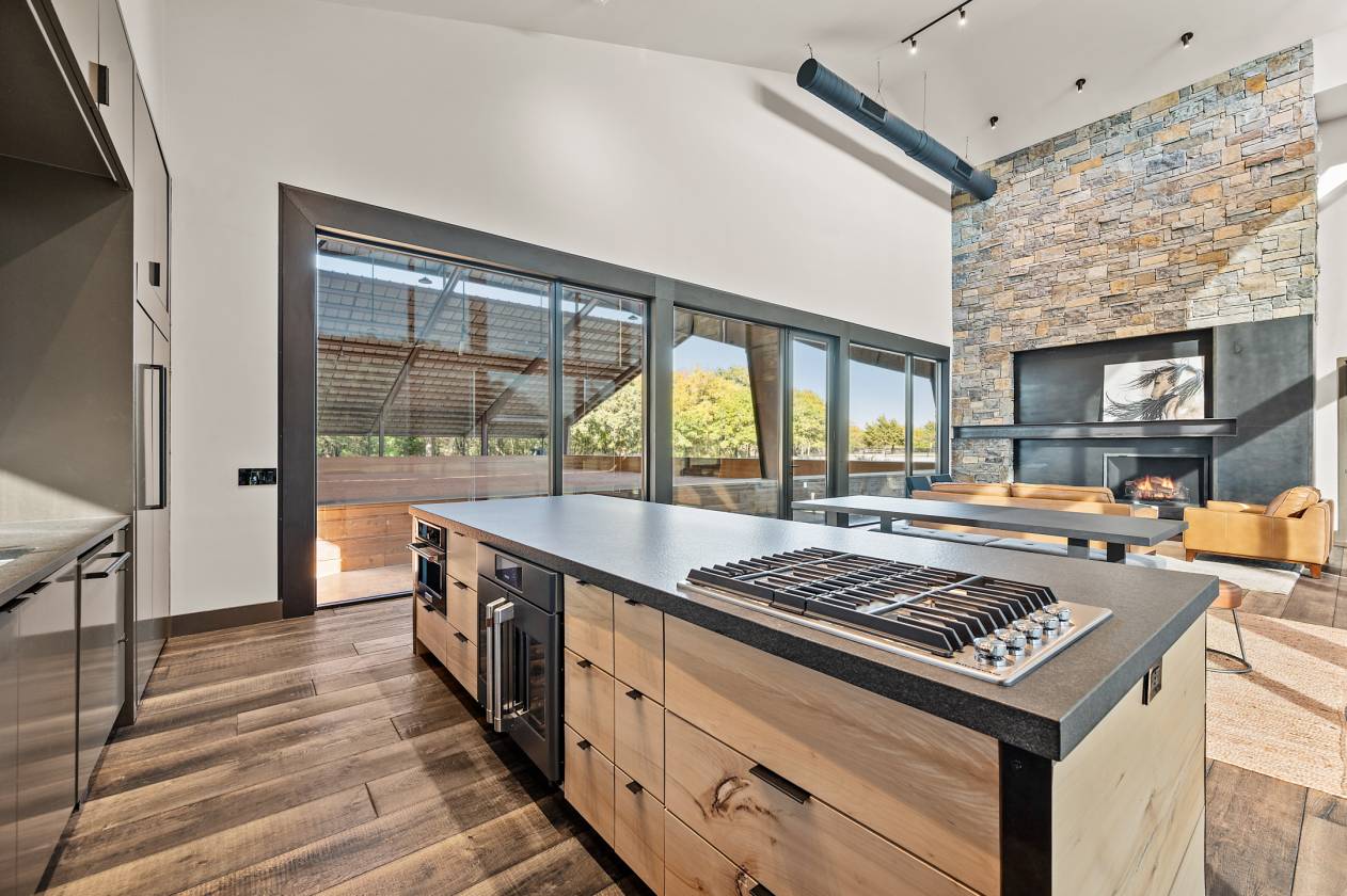 - The observation area and lounge offer comfort and hospitality, featuring a full kitchen, dining area, living room, lounge, two dressing rooms, and two bathrooms on the main level. A spiral staircase leads to a private loft bedroom and closet, creating the perfect retreat or guest accommodations.