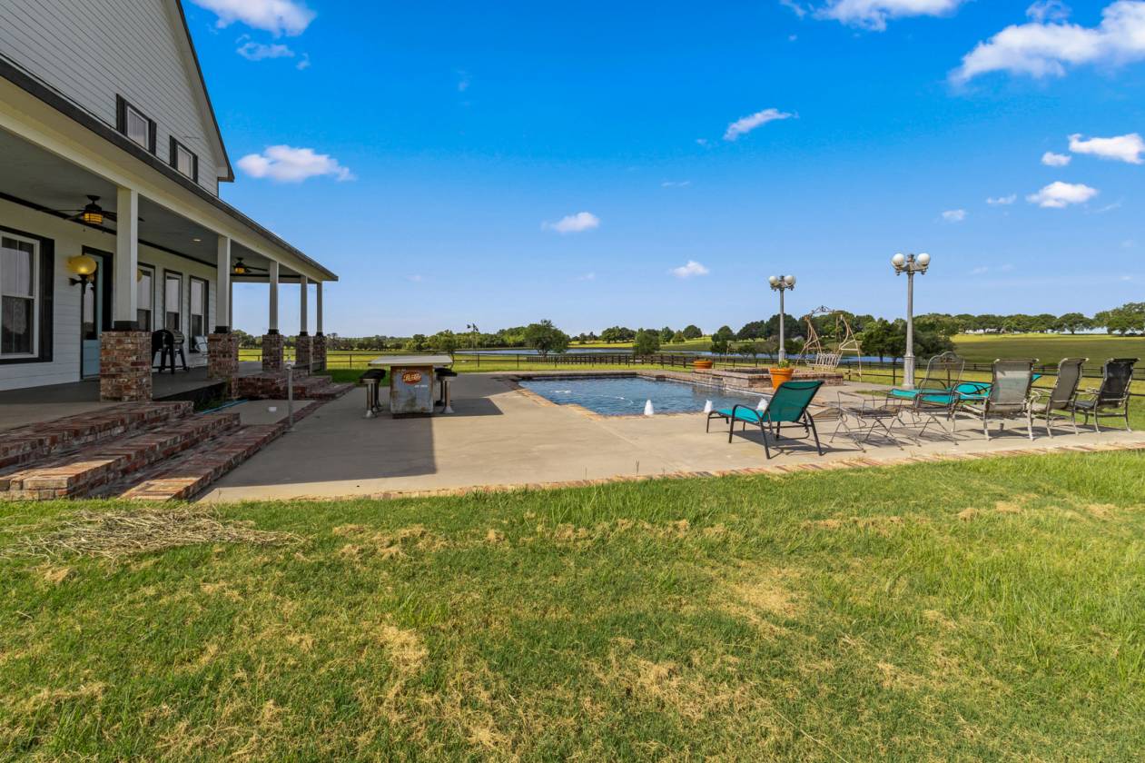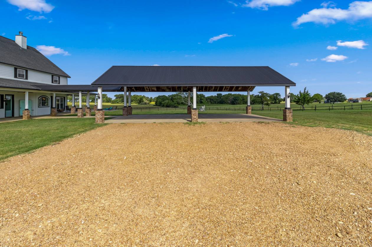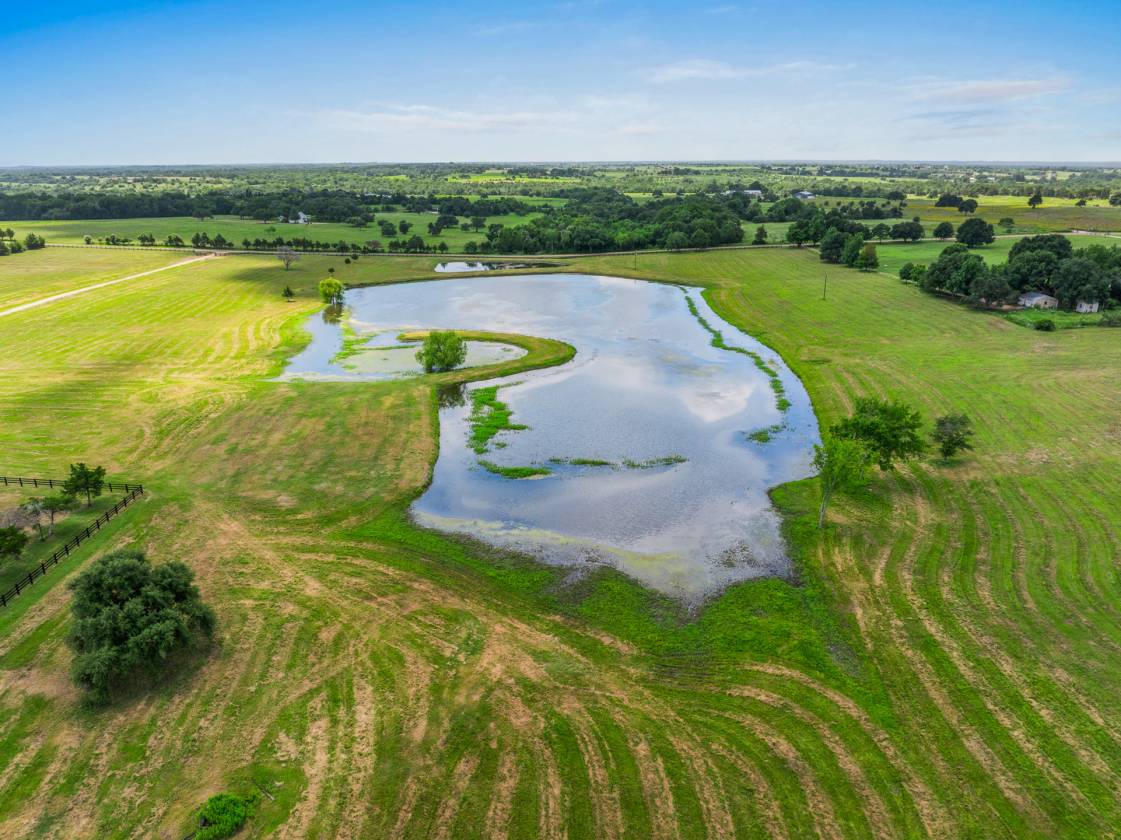 Welcome to this breathtaking homestead where luxury living meets equestrian excellence. From the moment you arrive at the grand entrance, this property captivates with its beauty, thoughtful design, and unrivaled amenities. Sitting on nearly 60 acres of improved pastures, this ranch features a custom 4-bedroom home with pool, designed to blend comfort and elegance. Every element of the property was crafted by horse people for horse people—ensuring no detail was overlooked when it comes to convenience, function, and equine care. The main barn offers 13 oversized stalls and a Priefert 8-panel automatic horse walker at its center. Step outside directly into the 300’x145’ lighted outdoor arena with covered roping boxes and chute. For added safety and sustainability, the arena is fully lined with rubber conveyor belting. Alongside, multiple RV hookups welcome family, friends, and event guests. A second insulated barn provides 8 open-concept stalls with direct turnout, complete with a revolving saddle rack door—an innovative touch that enhances functionality. The 50’x50’ insulated shop is perfect for equipment storage, while the neighboring insulated party barn with caretaker’s apartment makes entertaining and guest accommodations effortless. Beyond the barns, enjoy fishing in the stocked 3-acre lake, or relax knowing the property is fully fenced and cross-fenced with pipe and treated board, secured by two automatic gated entrances. Perfectly positioned, you’re just 25 minutes from Round Top Antique Days and minutes away from two private country clubs—The Falls and The Big Easy Ranch—both offering world-class golf. With its location and amenities, this property also offers Airbnb income potential or could serve as a stunning wedding and event venue. This ranch is more than turnkey—it’s a true equestrian paradise, blending rural luxury with accessibility.