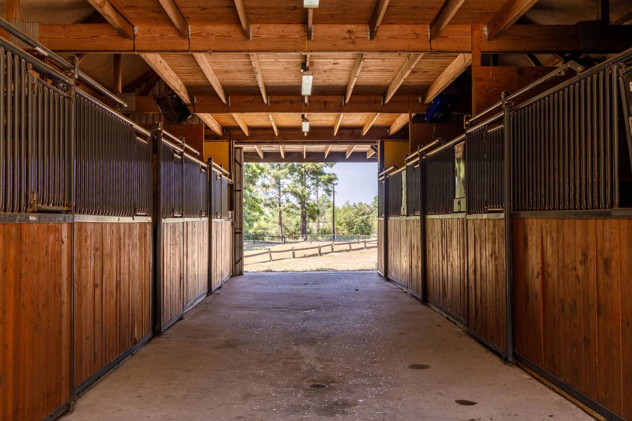 - The riding arena is 176' x 60' and consists of sandy loam mixed with clay. There is wood railing and a sprinkler system. It is partially shaded in the mornings and afternoons by the large trees. This ranch also comes with a 4 horse, reversible, 3 speed walker. The hay barn is 30' wide x 15' high x 72' long and is constructed of PBU galvalume metal in an arched style. The machinery storage shed was constructed in 2016 and is 34' W x 12 ft' H x 48' L. It also features PBU galvalume steel and a single incline roof. There are 4 1/2 in diameter pipe poles set in concrete and 2 3/8 in pipe welded rafters. There are 4 paddocks with continuous waterers and hay racks.