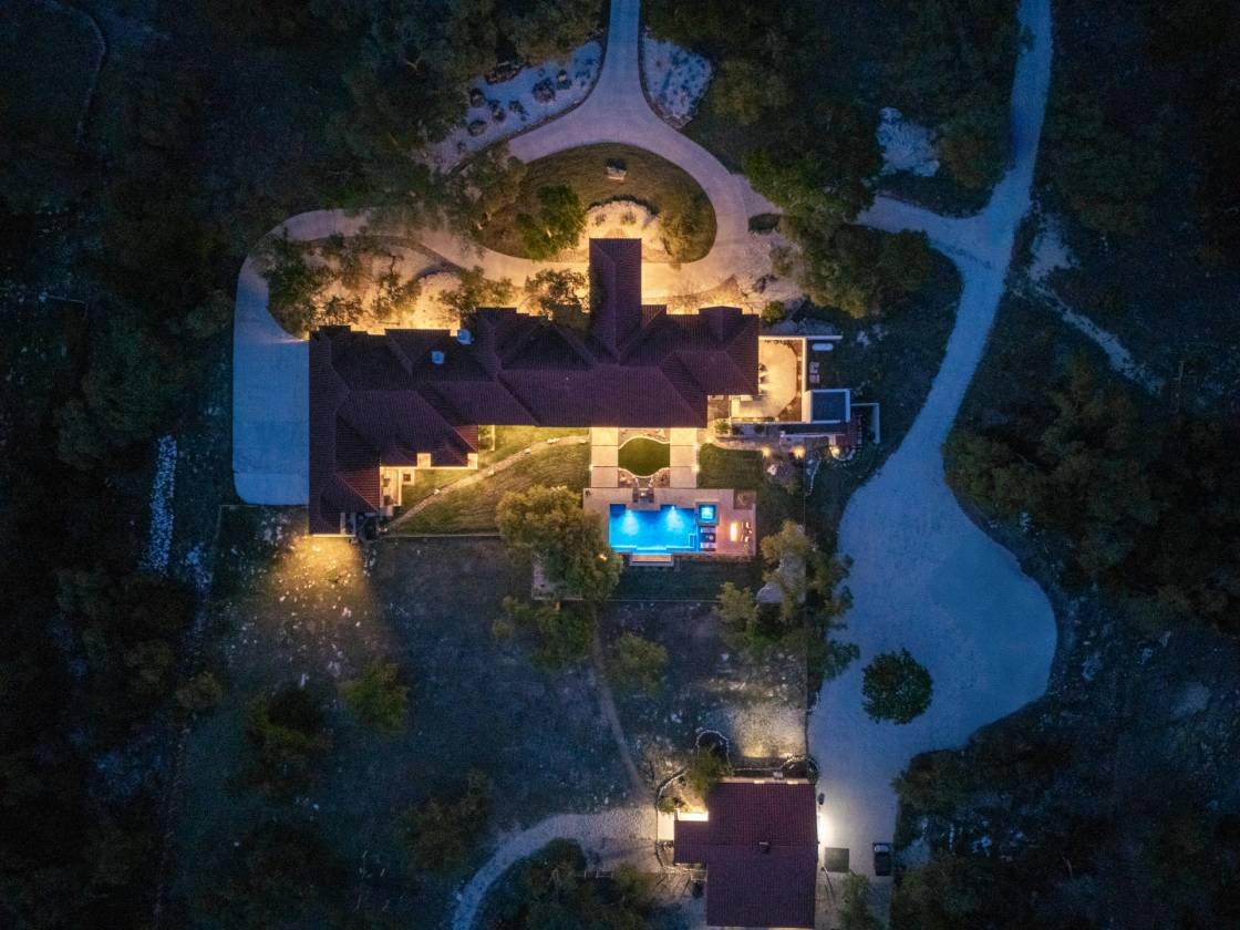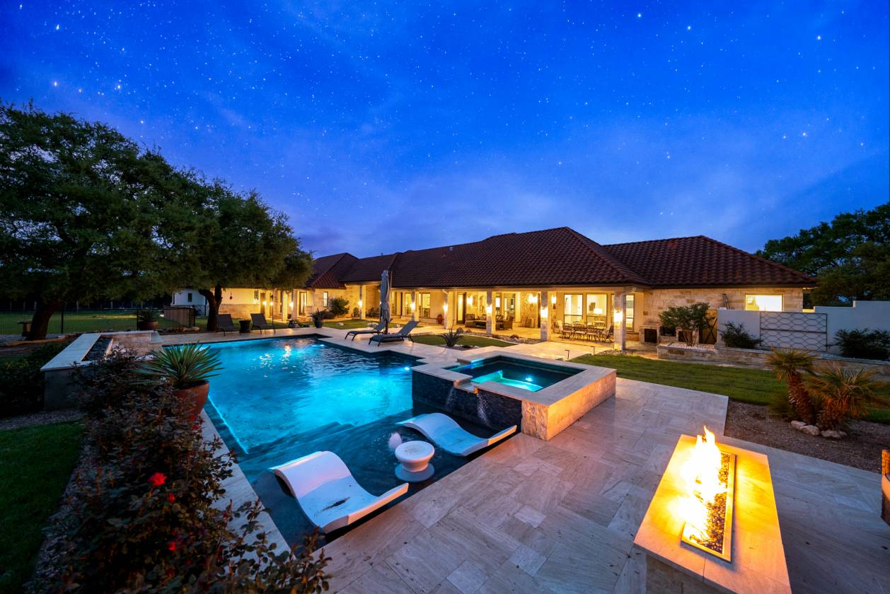 - The home's outdoor living space also features a brand-new pool with a jacuzzi and fire feature, crafted by Texas' top pool builders Infinity Pools and comes with a five-year transferable warranty. This exceptional estate is designed for ultimate efficiency, featuring a Daikin commercial HVAC system (three units, two years old), blown foam insulation in the attic, and a new 900 ft deep well tapping into the Trinity Aquifer, complete with a heavy metal filter, booster pump, pressure tank, and water softener. A 2500-gallon cistern ensures ample water supply for both the home and the equestrian facilities.