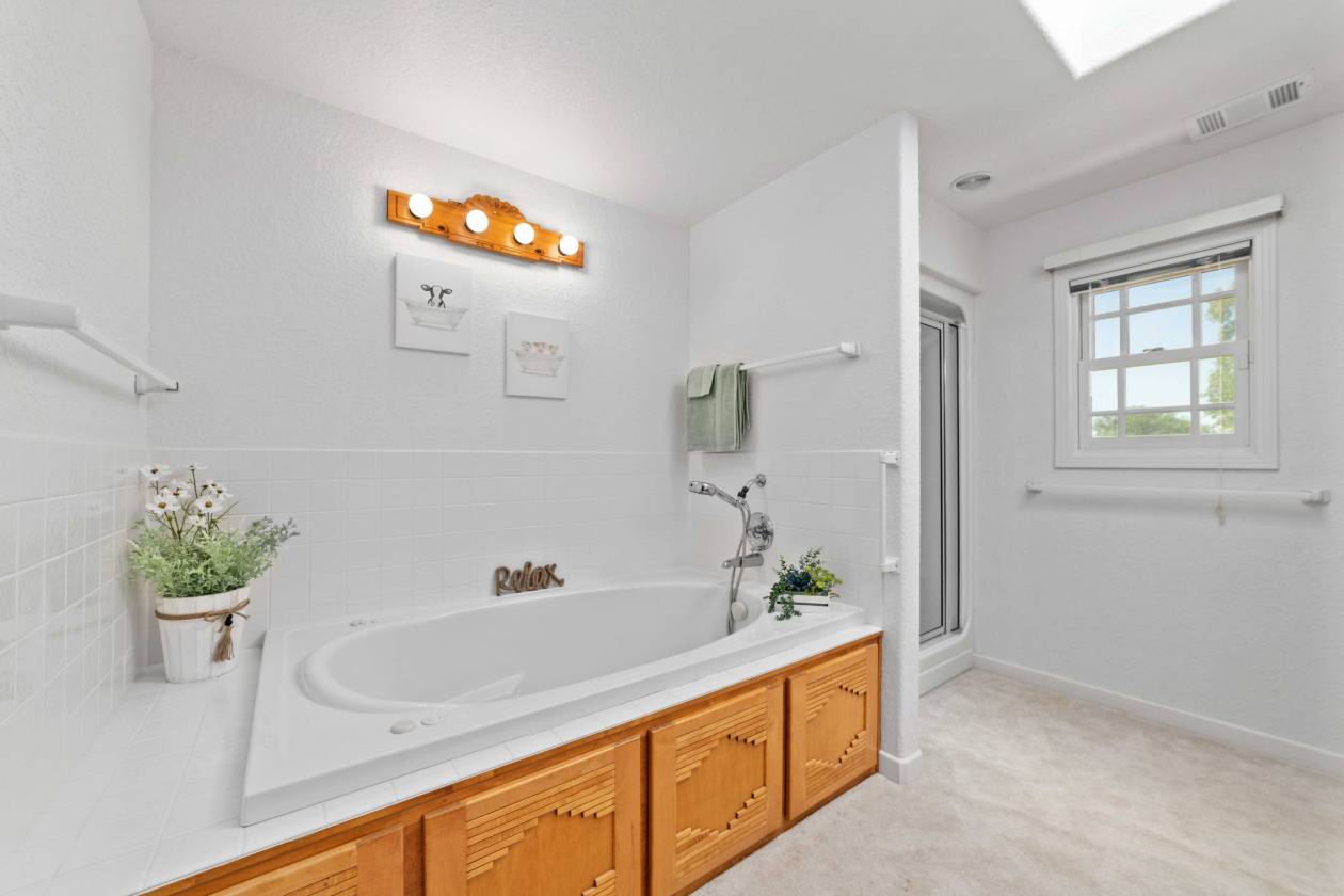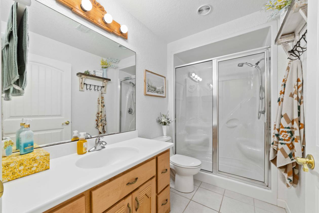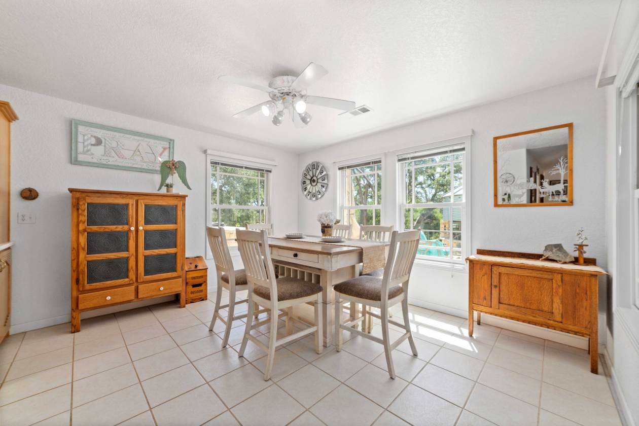 - Heated floors in secondary bath and kitchen dining area