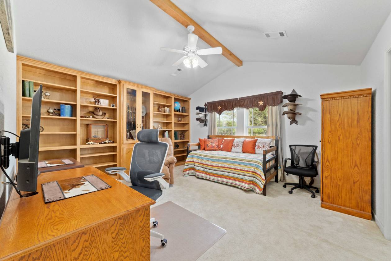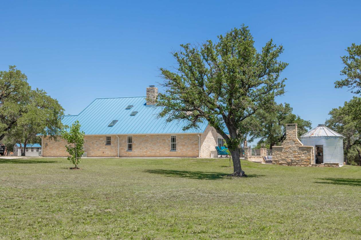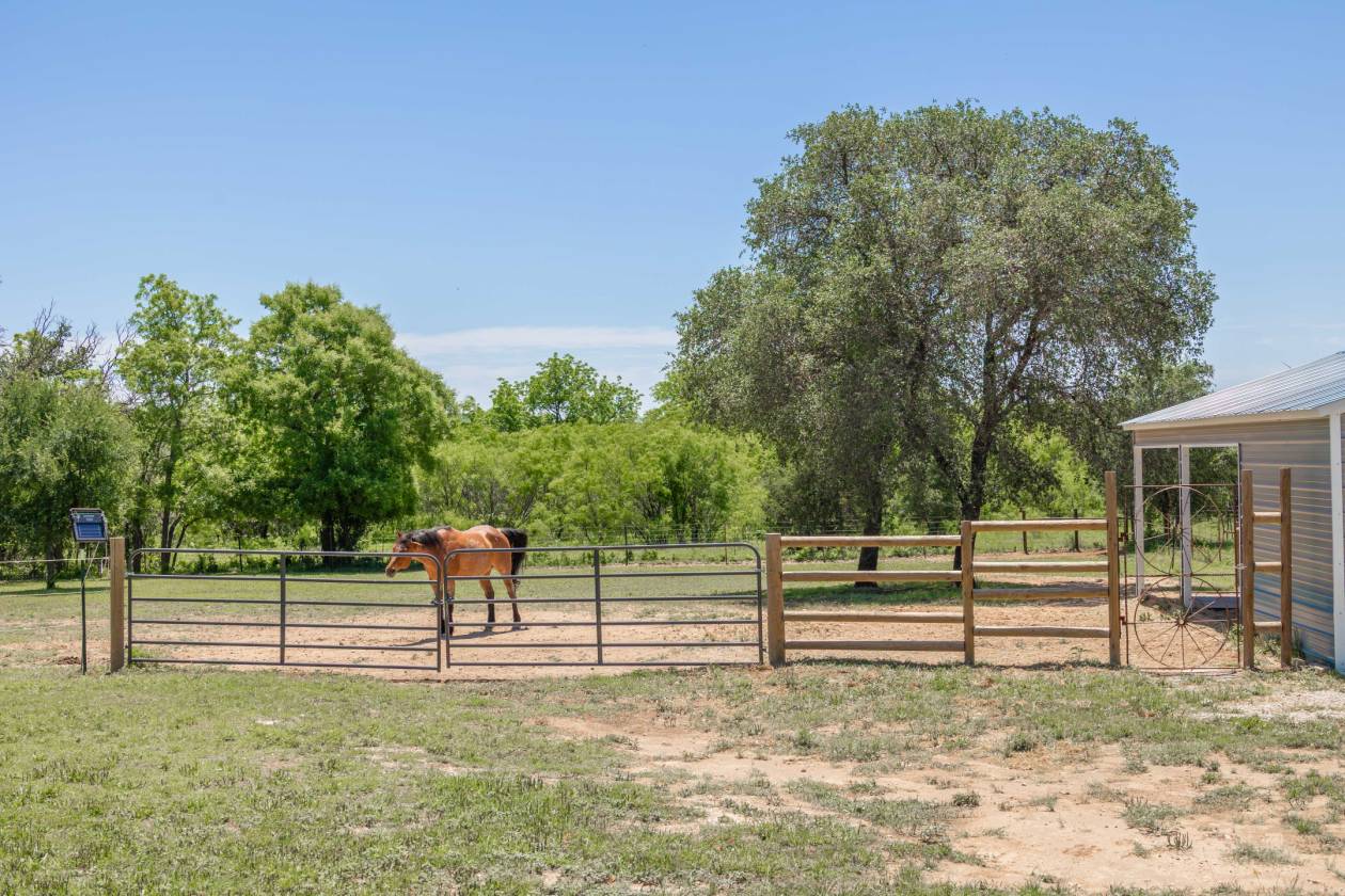 Discover unparalleled privacy and rustic elegance with this stunning 3BR, 3B, luxury ranch home on 3.63 acres. This one-of-a-kind property features a private water well, producing 68 GPM servicing the home and land. Skylights are thoughtfully placed throughout the home creating an inviting atmosphere. Equestrian enthusiasts will appreciate the well-maintained horse barn, while those who value space and solitude will love the wide-open grounds. Heated floors can be found in the secondary bathroom, and kitchen dining areas. Step inside to the spacious living area featuring a cozy stone wood burning fireplace with incredible custom cabinets and a vaulted ceiling. The large sunroom has a wall of windows and is the perfect place for watching wildlife. The spacious kitchen features an abundance of CTs, custom cabinets and a walk-in pantry. The large formal dining area gives you extra space for hosting holiday meals. The primary bedroom has a vaulted ceiling, an en suite bath, separate shower, jetted tub and a walk-in closet. There are two secondary bedrooms with large closets. The back porch was made for entertaining! There is a stone outdoor kitchen equipped with a sink and two flat top grills. Just steps below is a stone wood burning fireplace with breathtaking views. Guests will love the unique partially enclosed outdoor bar and patio area with sink and water hook up. This property also features a garden, peach, pecan, and plum trees on automatic irrigation which make for a gardeners dream. An above ground pool on a concrete slab is ready to go and can be enjoyed all summer long. Greenhouse, storage shed, 2 RV hook ups with 30 and 50 amp electric service and water hook-ups. A 24K generator will convey with sale. Oversized three car garage with a finished attic space could be easily converted into additional living space. You quite literally have everything you need here. Call today to schedule your showing!