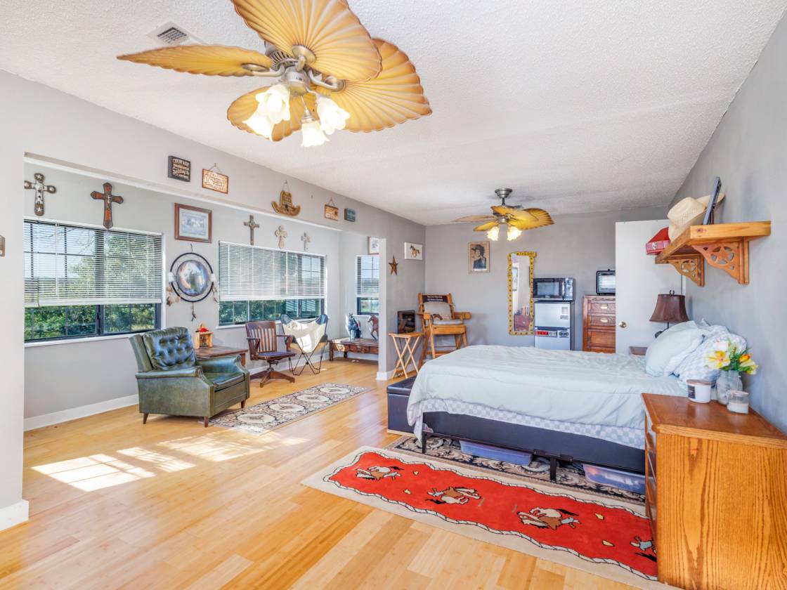 - Experience refined country living at 7911 Highway 1689. Nestled on a picturesque 4-acre farm and ranch estate, this exceptional property combines timeless ranch charm with modern comforts. The stately two-story residence offers 4 generously sized bedrooms and 2 full bathrooms, designed with space and versatility in mind. Inside, you’ll discover two expansive living areas, one enhanced by a warm, inviting fireplace that sets the tone for cozy gatherings. The primary suite occupies the upper level, featuring an impressive layout, elegant decorative ceiling fans, and a private ensuite bath complete with a soaking tub and separate shower for a spa-like retreat.