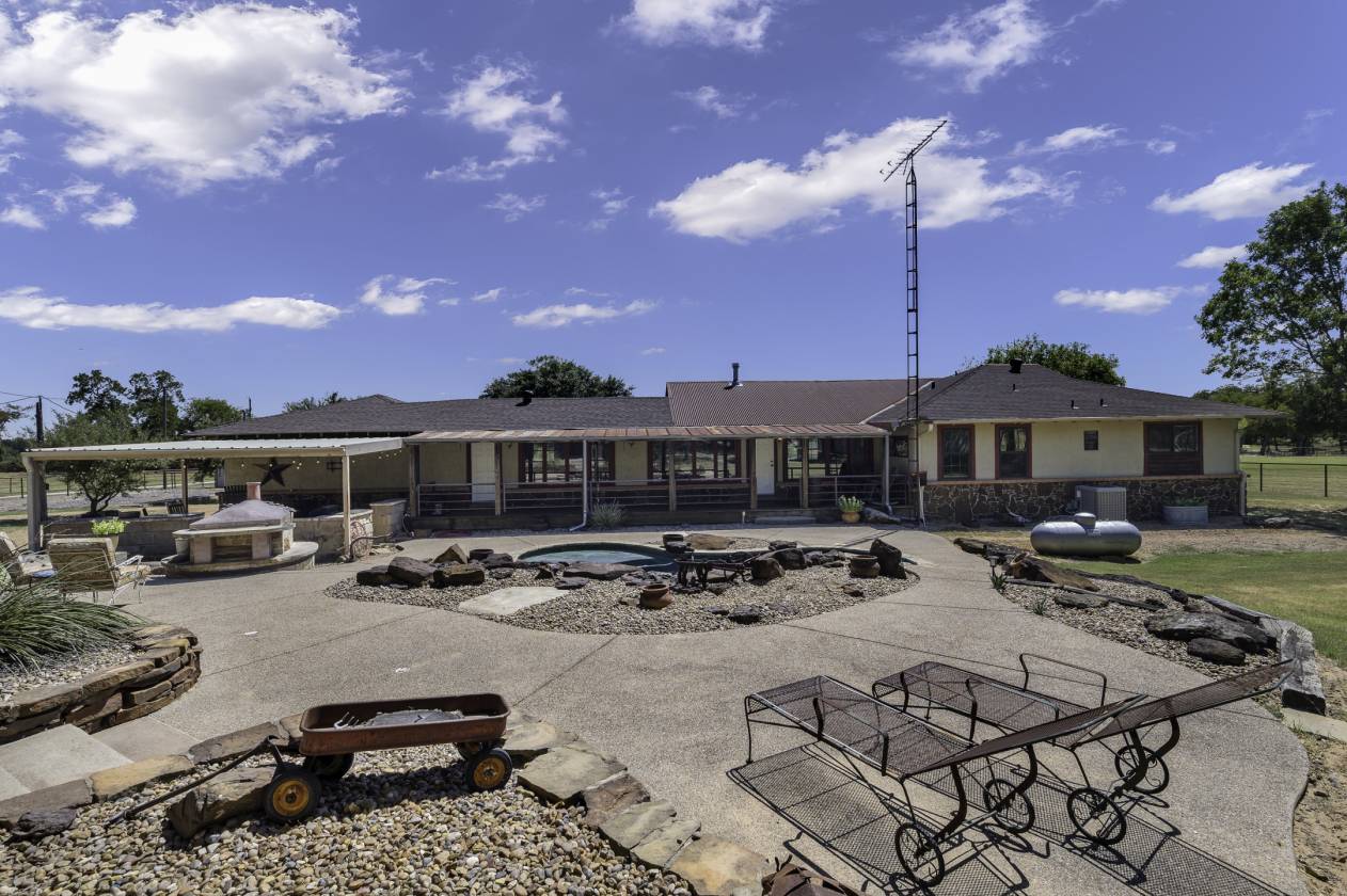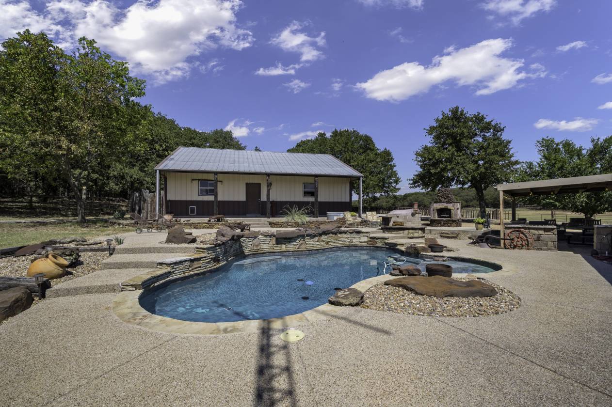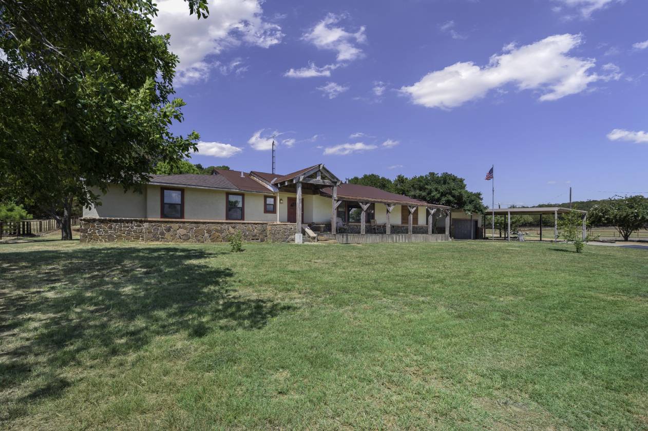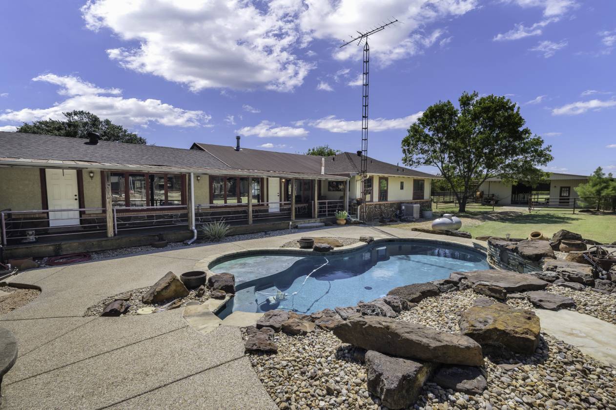 This exceptional equine property offers the perfect blend of rustic elegance and modern comfort in one of the most desirable areas of North Texas Ranchland. The beautifully renovated 3-bedroom, 2.5-bath ranch-style home is built on a pier-and-beam foundation and crafted with striking Montana logs—giving it unmatched character and charm. Thoughtfully redesigned down to the studs, this home boasts a warm, inviting layout with a cozy living area, stylish kitchen, and large windows that frame panoramic views of the surrounding countryside. Enjoy an entertainer’s dream backyard featuring a covered porch, sparkling pool, and full outdoor kitchen—ideal for relaxing or hosting gatherings. The 4-stall barn (3 interior, 1 exterior) and cross-fenced pastures with sandy loam soil and coastal hay make this a turnkey setup for horse lovers. Additional features include: • A charming 1 bed, 1 bath guest bunkhouse • A 30x40 workshop with mezzanine storage and space for your boat or UTV • A 40x24 lean-to for trailer or RV parking • Storm shelter for peace of mind Located just minutes from Lake Ray Roberts, major highways, and within easy reach of the DFW Metroplex, OKC, and nearby casinos—this property truly has it all.