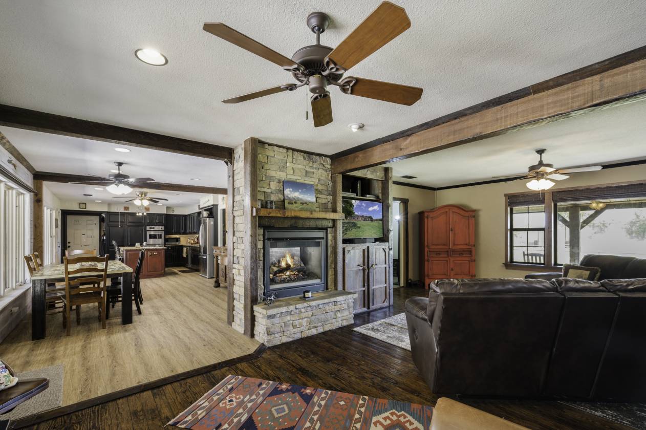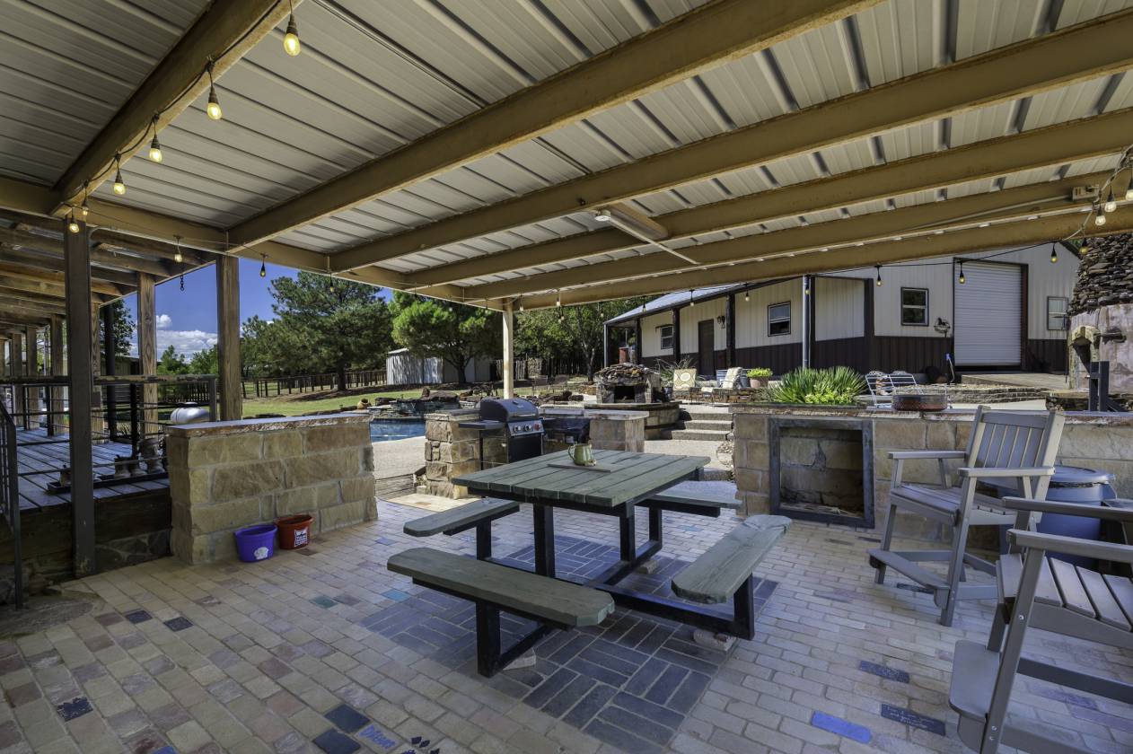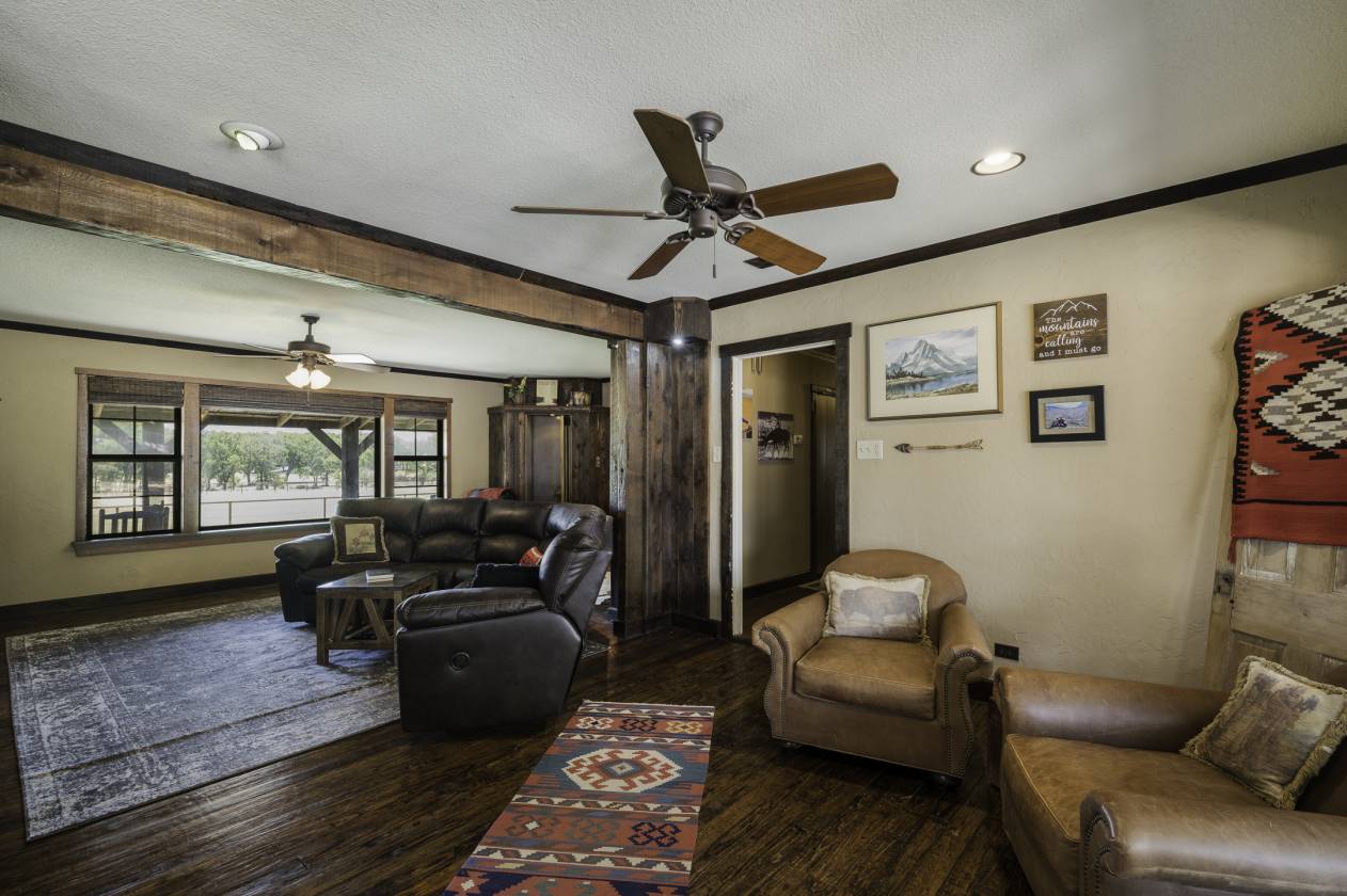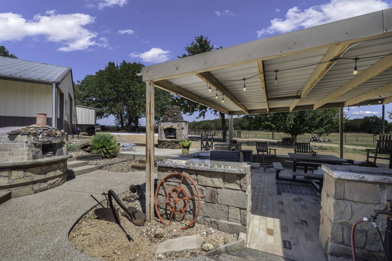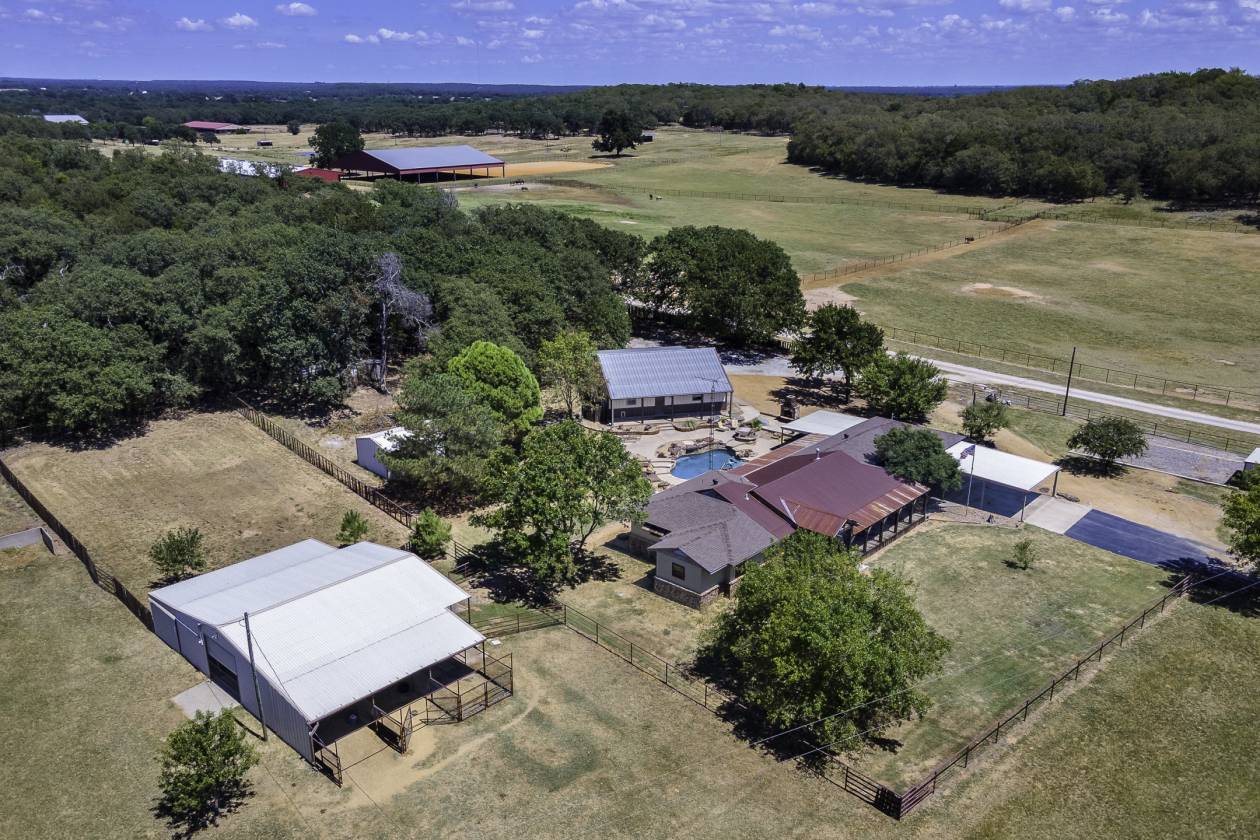 This exceptional equine property offers the perfect blend of rustic elegance and modern comfort in one of the most desirable areas of North Texas Ranchland. The beautifully renovated 3-bedroom, 2.5-bath ranch-style home is built on a pier-and-beam foundation and crafted with striking Montana logs—giving it unmatched character and charm. Thoughtfully redesigned down to the studs, this home boasts a warm, inviting layout with a cozy living area, stylish kitchen, and large windows that frame panoramic views of the surrounding countryside. Enjoy an entertainer’s dream backyard featuring a covered porch, sparkling pool, and full outdoor kitchen—ideal for relaxing or hosting gatherings. The 4-stall barn (3 interior, 1 exterior) and cross-fenced pastures with sandy loam soil and coastal hay make this a turnkey setup for horse lovers. Additional features include: • A charming 1 bed, 1 bath guest bunkhouse • A 30x40 workshop with mezzanine storage and space for your boat or UTV • A 40x24 lean-to for trailer or RV parking • Storm shelter for peace of mind Located just minutes from Lake Ray Roberts, major highways, and within easy reach of the DFW Metroplex, OKC, and nearby casinos—this property truly has it all.