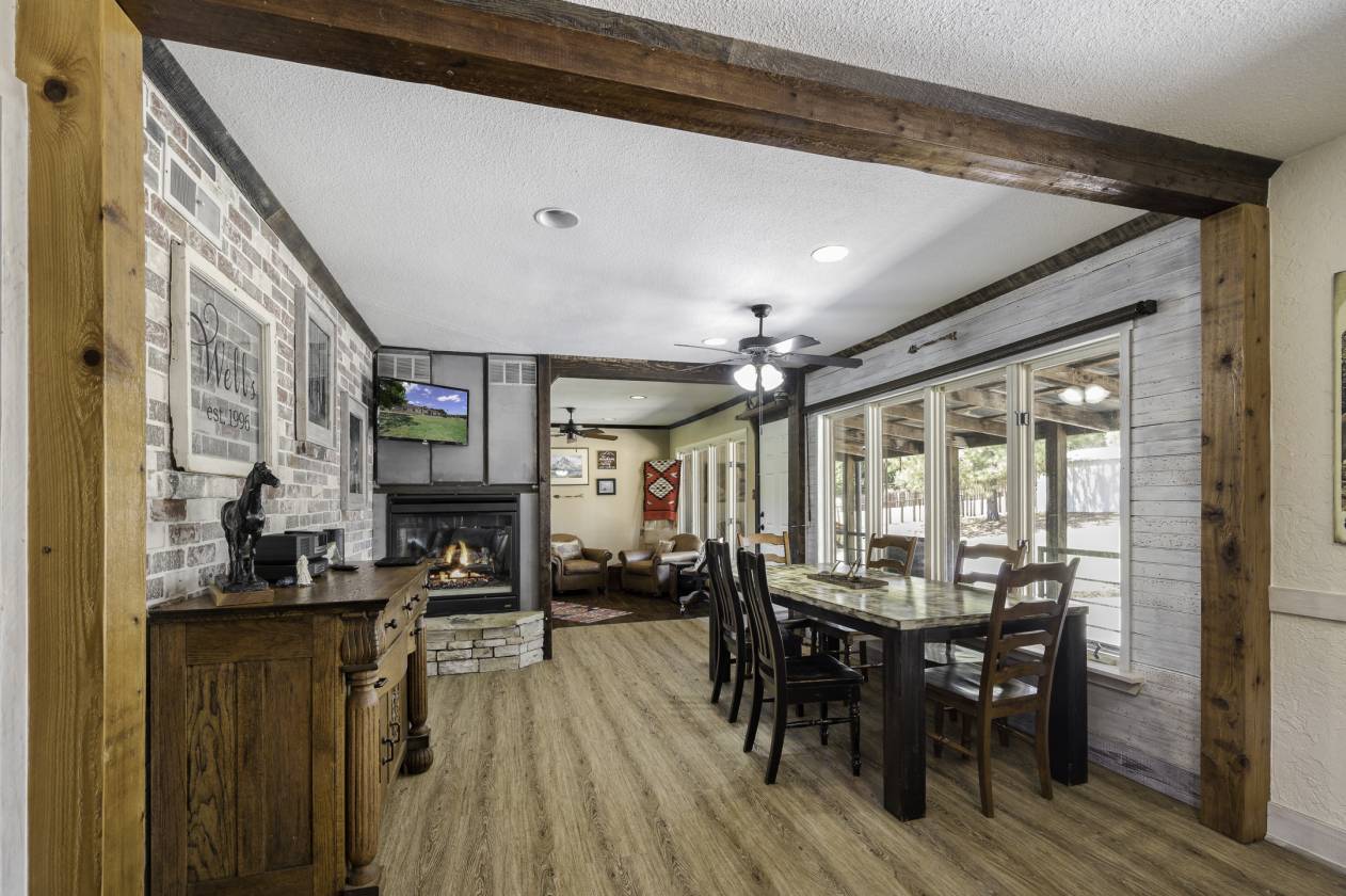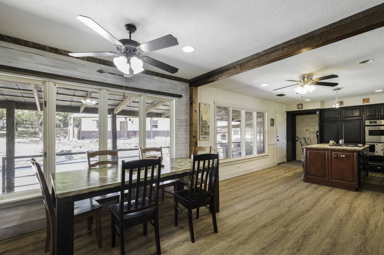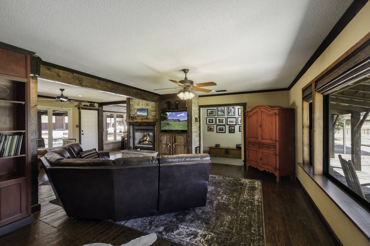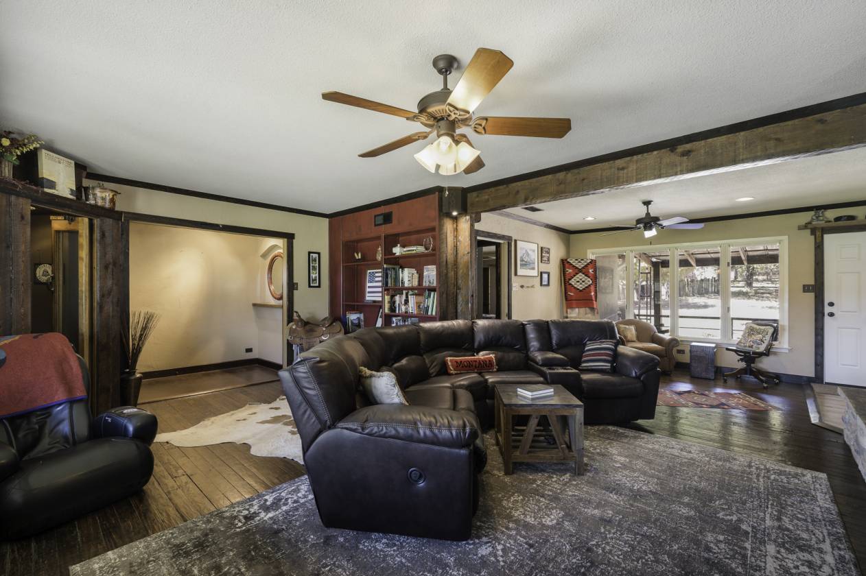 This exceptional equine property offers the perfect blend of rustic elegance and modern comfort in one of the most desirable areas of North Texas Ranchland. The beautifully renovated 3-bedroom, 2.5-bath ranch-style home is built on a pier-and-beam foundation and crafted with striking Montana logs—giving it unmatched character and charm. Thoughtfully redesigned down to the studs, this home boasts a warm, inviting layout with a cozy living area, stylish kitchen, and large windows that frame panoramic views of the surrounding countryside. Enjoy an entertainer’s dream backyard featuring a covered porch, sparkling pool, and full outdoor kitchen—ideal for relaxing or hosting gatherings. The 4-stall barn (3 interior, 1 exterior) and cross-fenced pastures with sandy loam soil and coastal hay make this a turnkey setup for horse lovers. Additional features include: • A charming 1 bed, 1 bath guest bunkhouse • A 30x40 workshop with mezzanine storage and space for your boat or UTV • A 40x24 lean-to for trailer or RV parking • Storm shelter for peace of mind Located just minutes from Lake Ray Roberts, major highways, and within easy reach of the DFW Metroplex, OKC, and nearby casinos—this property truly has it all.