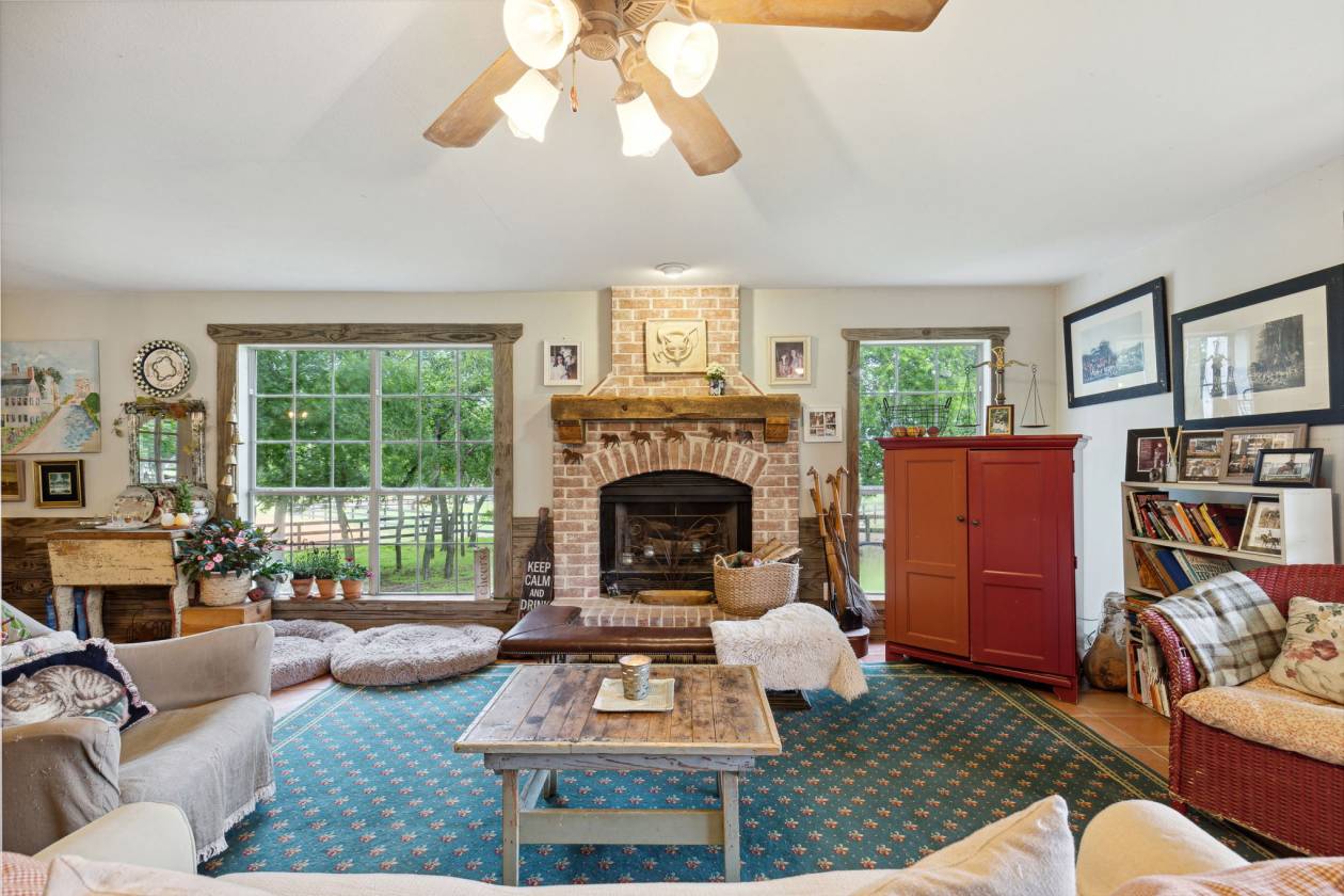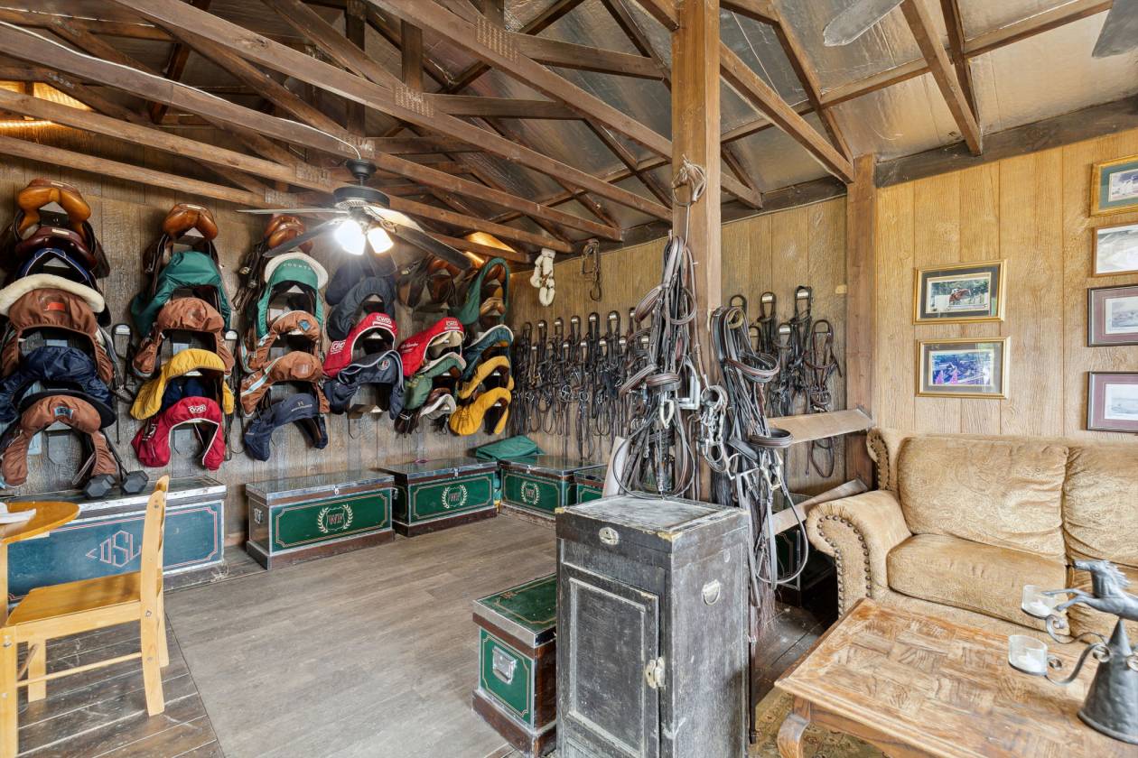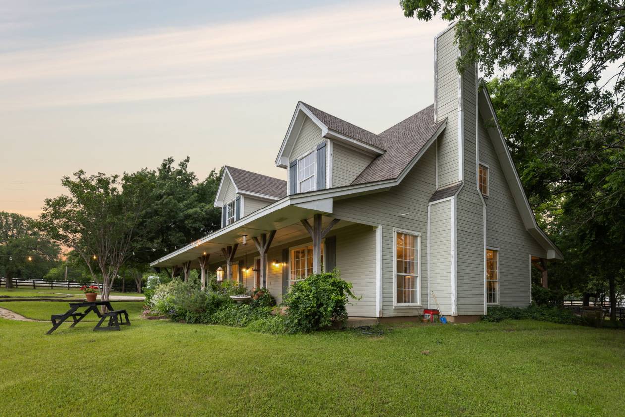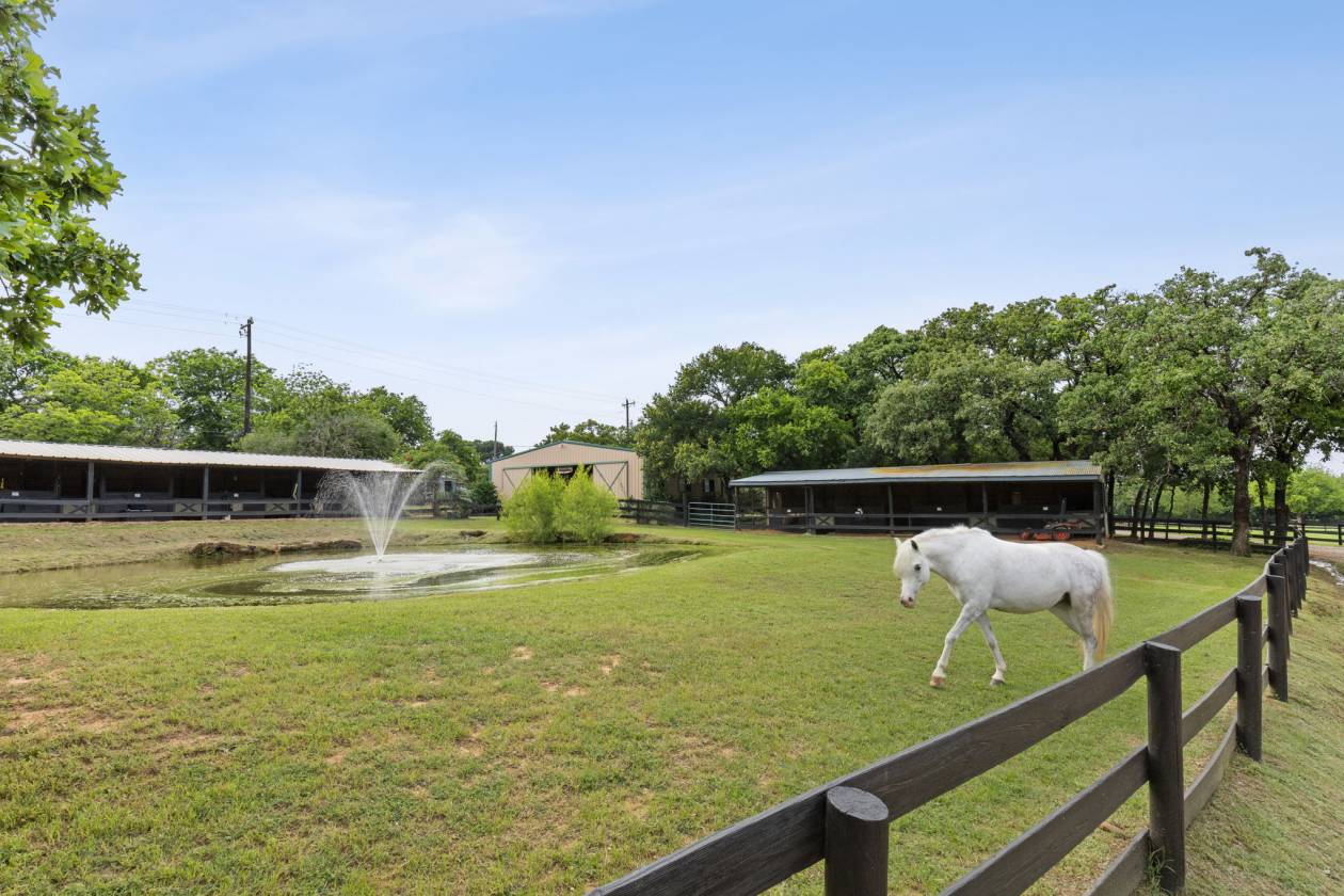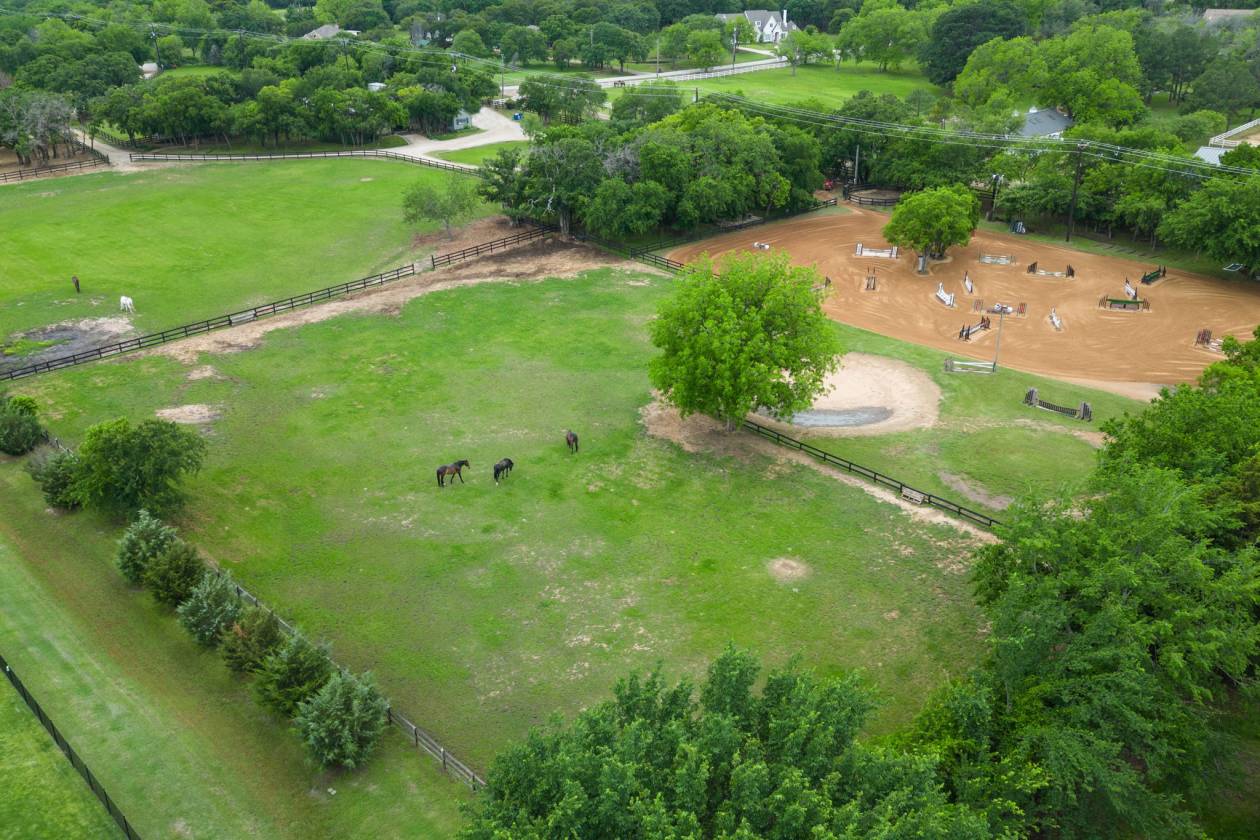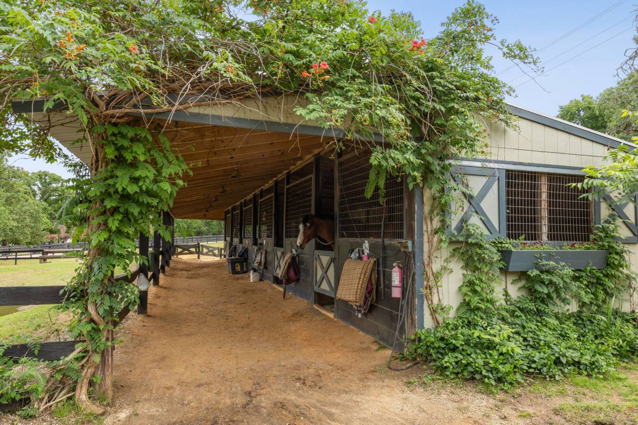 - Fabulous 3 bedroom 2,5 main house with classic interiors. Primary bedroom on level 1 , upstairs has 2 large guest suites with jack and jill bathroom. Wonderful views of the farm from all the windows in the house. Guest quarters attached to the barn is perfect for ranch hand and grooms. Plenty of parking and lovely trees located throughout the property. Outdoor arena is very large and has shade. Several lunge areas. 27 stall barn. Nice grassy sandy loam turn out pastures with plenty of shade. Cash flowing business opportunity in Argyle proper!