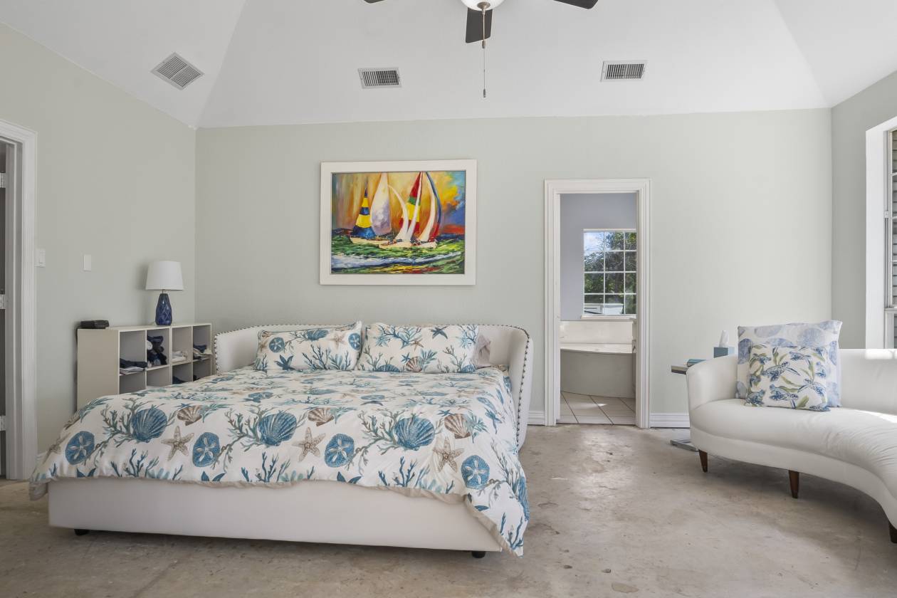 - Home is a unique Grade A custom build, like living on a vacation with highly desired open floor plan! Large grand living room has marble entry popular for holidays and weddings, plenty of large windows with gorgeous views & high ceilings! Primary bedroom is spacious with sitting area, view of the pond. Bathroom features Romeo & Juliette lovers shower! Large kitchen designed for practicality & cooking for parties, opening up to a stylish back patio. Huge laundry room has pass thru cabinet to big primary closet. Large secondary bedrooms opposite of the primary, share a full bathroom. The current garage was designed to be a game room w high tray ceiling. The garage walls are fully insulated, with 4 large double windows. Property was designed for a separate garage or shop, to be added on the existing site next to well. Video & 3D tour available.