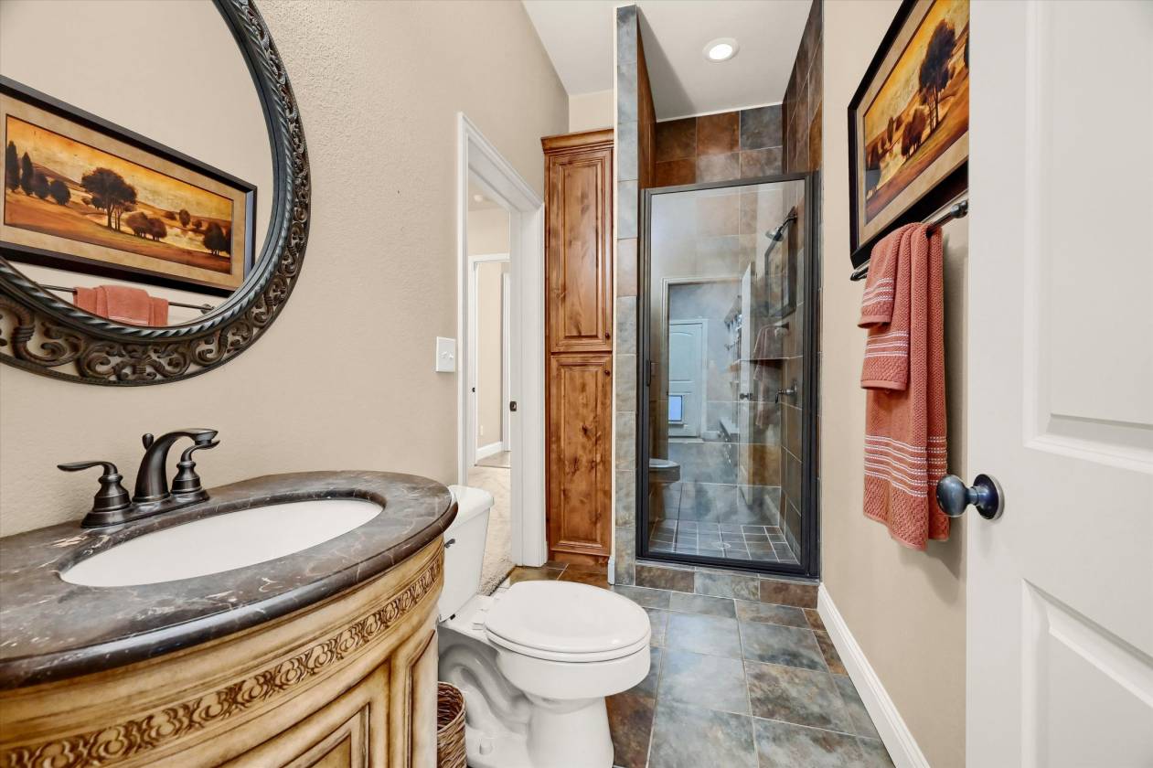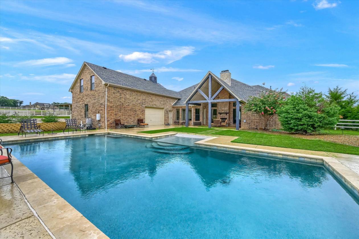 Extraordinary 4-Acre Horse Property nestled in High Trinity Ridge Estates, Aubrey. Just North of Lake Lewisville and minutes from Denton, this immaculate 4-acre horse property is a rare find. Nearly 3,800sf of beautifully designed living space, main level features a spacious floor plan with four large bedrooms, office, living with vaulted ceiling & a fireplace. The open-concept kitchen is a chef's dream, breakfast bar, island, gas cooktop, & walk-in pantry. Upstairs, you'll find a large bonus-media room with plumbing ready for an additional bathroom, providing endless possibilities.Step outside to the covered patio, where a second fireplace & pool create the perfect setting for relaxation or entertaining guests. Horse enthusiasts will appreciate the sandy loam soil, loafing shed, and a top-notch four-stall barn, along with covered trailer parking, a riding pad, and spacious pastures.Located in the desirable Aubrey ISD, this property offers easy access to Highway 380, I-35, and Denton