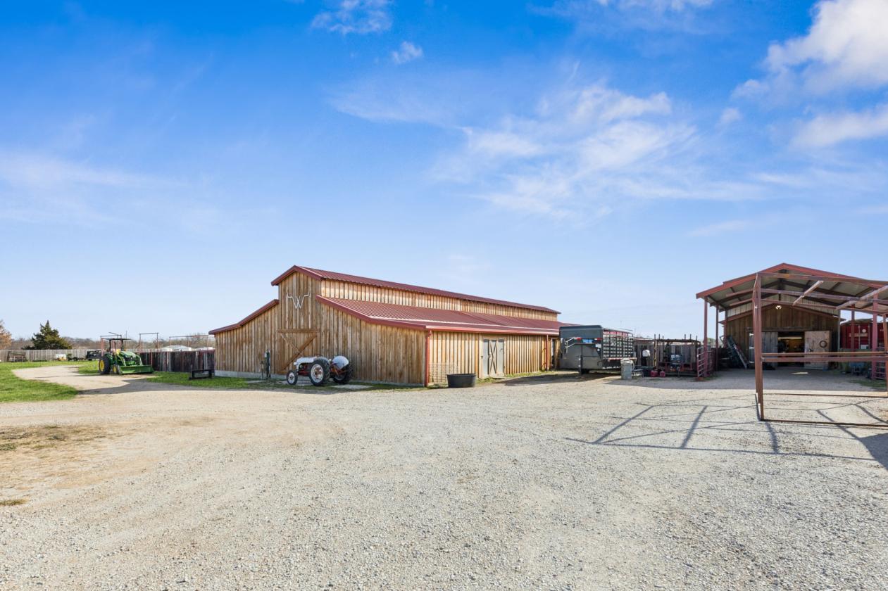 Escape to a rare opportunity where wide-open skies, premier equestrian facilities & refined residential living come together on approximately 42 acres just minutes from Denton & US-380, offering prime frontage & sweeping views of rolling pastures, mature trees + 3 serene ponds. Included on the 42 acres is 2751 Mitchell Rd, a Residential home built in 2008 w-over 5,600 SF, 4 bed, 3.5 bath ranch designed for both everyday comfort & effortless entertaining, featuring a dedicated home office, gourmet kitchen flowing into formal & casual dining spaces, great sized bedrooms & entertainment-ready spaces including a fully equipped media + game rm w-wet bar. Step outside to a 40,000-gallon saltwater pool, perfectly positioned for relaxing under the Texas sun while taking in peaceful, panoramic views of the land. This exceptional property is equally equipped for serious equestrian or ranch use, showcasing a 200X150 arena, 23 indoor stalls w-potential to expand to 40, and over 9,000 SF of covered barn & support space. The nearly all-connected barn complex includes a heated & air-conditioned 50X40 front barn, west stalls measuring 30X30, a 40X10 wash room w-mini-split & water heater, a spacious tack area w-both enclosed & under-roof space featuring dual mini-split systems, a 50X100 covered stall area w-water, electric + lighting to each stall, a 24x20 shop with propane heater & attached 30x40 awning, a 10x40 Conex container w-window AC & electric + a small shed connected to the west stalls. The property is supported by a functioning well and aerobic system offering both independence & convenience, while expansive acreage & excellent road frontage provide outstanding flexibility for future development, agricultural use, or a legacy estate. Whether envisioned as a premier equestrian operation, a private family ranch, or a high-potential investment, this Denton-area property delivers Texas-sized space, infrastructure & lifestyle in one remarkable offering.