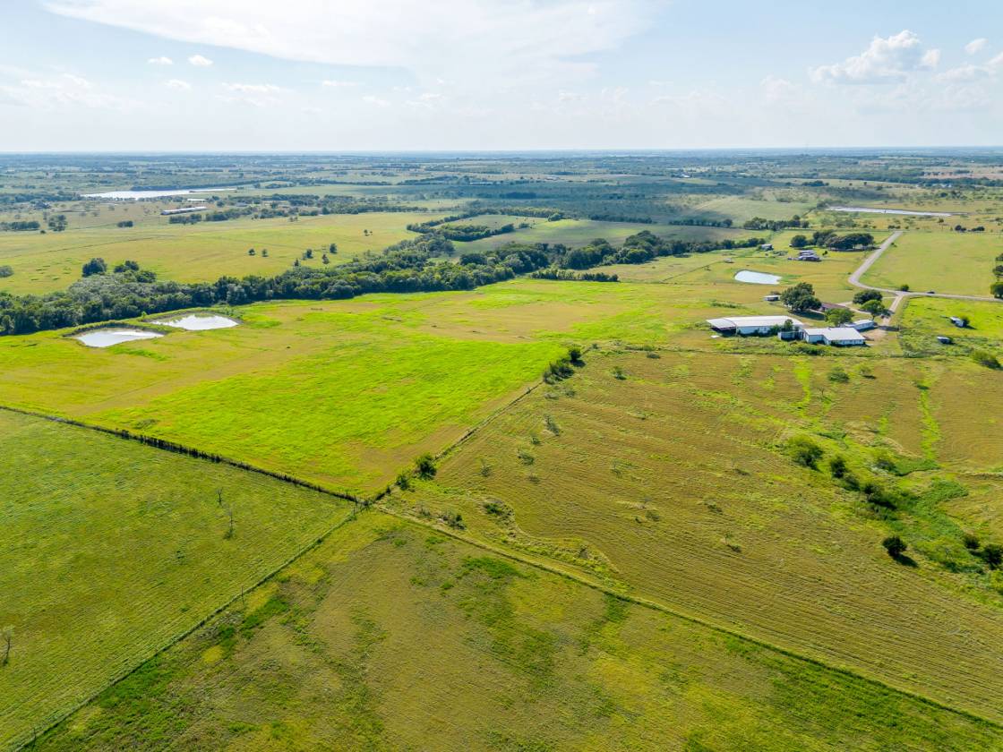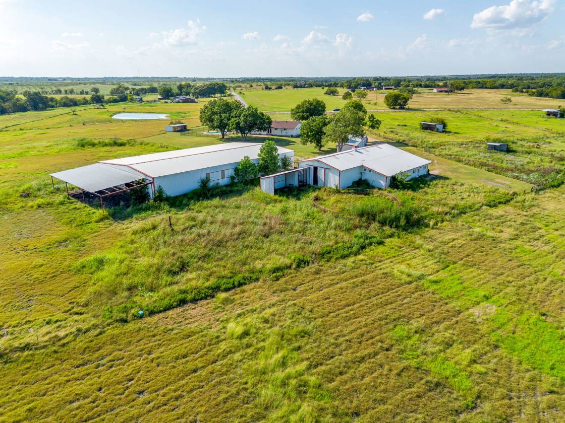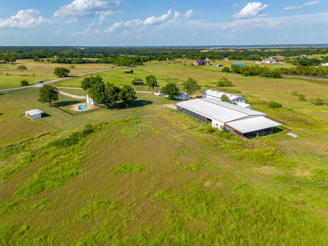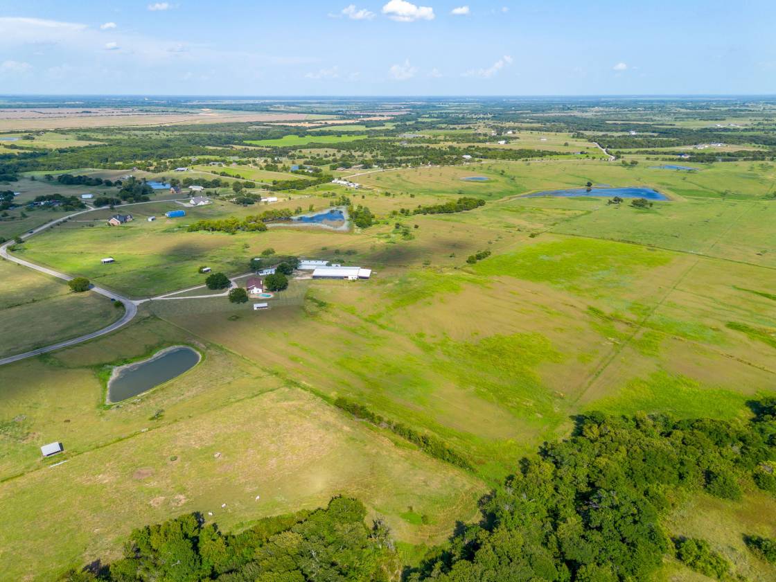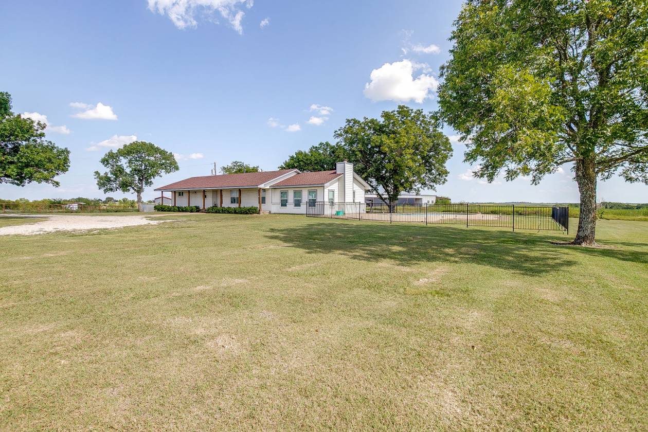 RANCH-STYLE HOME-RETREAT ON 41+ ACRES WITH POOL, PONDS & BARNS!! OUTSIDE THE CITY LIMITS!! LOWER TAXES......Escape the hustle and bustle of the city and embrace peaceful country living with this spacious 4-bedroom, 2 full bath ranch-style home situated on 41.269 acres of beautiful land! Designed for comfort and function, the home features a welcoming wood-burning fireplace in the living room, with a hearth and wood mantel; a kitchen island and 2-dining areas, perfect for gatherings and plenty of room for family and friends. The property is fully equipped for both relaxation and productivity. For those who need space to work and store equipment, the property offers 3 outbuildings, including two barns - ideal for livestock, hay or equipment storage - as well as a workshop with electricity. Whether you are running cattle, starting a farm or expanding your operation, this property is designed to support a wide variety of uses. You can also enjoy the Texas summer days by the sparkling pool, or quiet mornings on your large covered front porch, and evenings filled with BREATHTAKING SUNSETS stretching across the horizon. Or taking a ride on your horses or your 4-wheeler, to the 2 ponds and just enjoy the expansive room to ride! With over 41 acres to roam, this property offers endless opportunities for ranching, recreation, or simply enjoying the wide-open spaces. Here, you can experience the best of country living - privacy, land, and freedom - all while still being within reach of modern convenience and entertainment. This property has it all....room to work, play and truly enjoy the ultimate experience in country living!!
