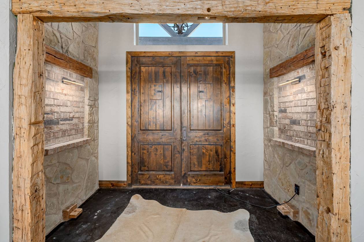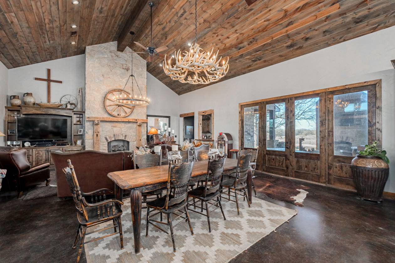 2-story brick home built in 2020 has everything you could want 3200 square feet first floor & 610 square feet second floor. Large foyer, living, dining all connected for an amazing open floor plan. Living room has a floor to ceiling stone wood-burning fireplace with custom wood mantle & stone hearth. There are plenty of windows along the east wall to let in natural light & wood look concrete floors for a warm and inviting feeling. Eat-in kitchen has beautifully placed island with knotty alder cabinets & granite countertops and has slate stainless appliances including a gas range that will convey. Primary bedroom has vaulted ceilings & an ensuite bathroom which has a walk around private shower, dual sinks, separate walk-in closets & a garden tub. Guest bedrooms have stained concrete floors, windows for natural light & nice size closets. There is a reading room attached to the primary, wet bar, and a coffee station! The home is a complete custom home, with ample amounts of antique wood!
