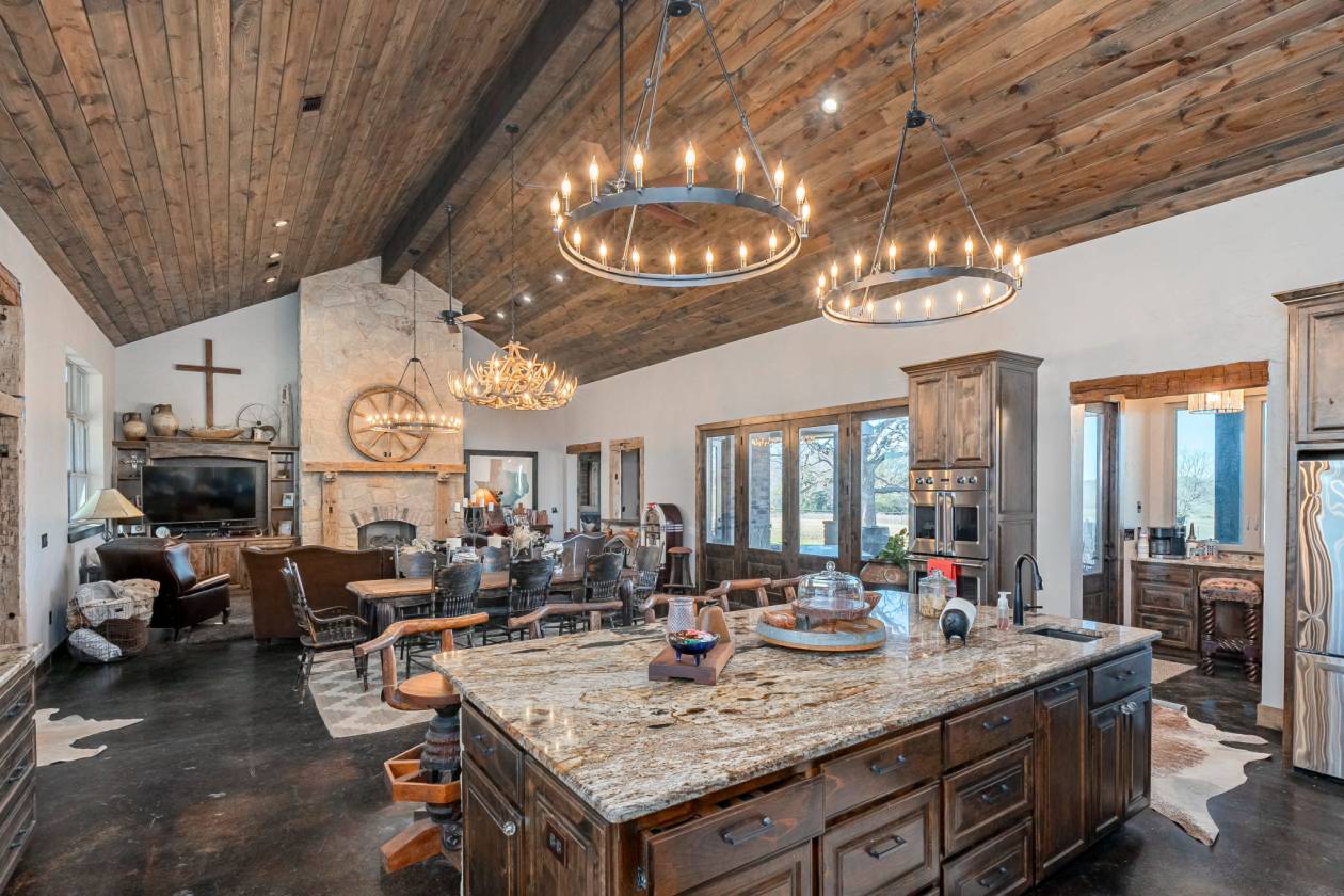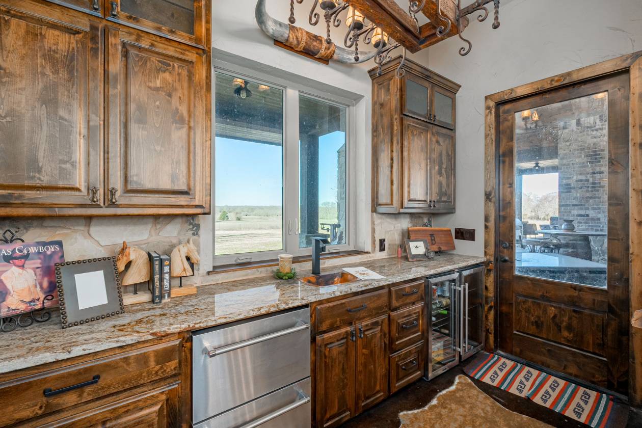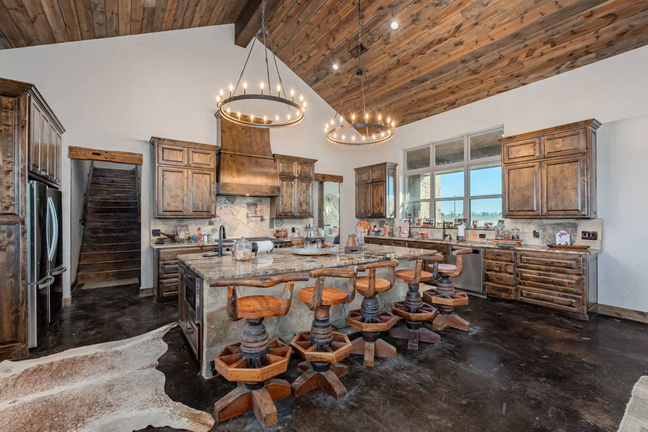 - Interior Feat: Built-in Features, Cathedral Ceiling(s), Chandelier, Decorative Lighting, Dry Bar, Eat-in Kitchen, Flat Screen Wiring, Granite Counters, High Speed Internet Available, Kitchen Island, Natural Woodwork, Open Floorplan, Pantry, Sound System Wiring, Vaulted Ceiling(s), Walk-In Closet(s), Wet Bar
