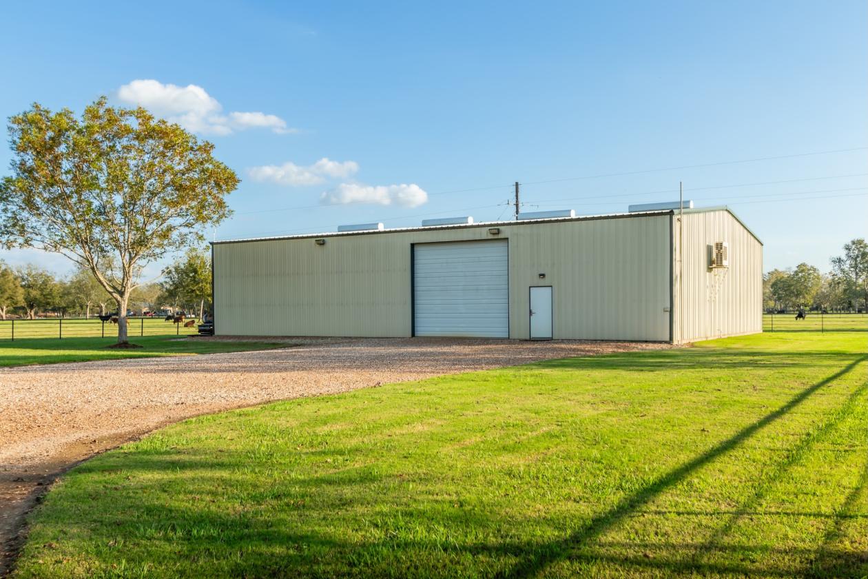 - Built in 2005 – 3/4 bedrooms, 3 1/2 bath home, and 3 AC units. Austin limestone exterior and open concept floor plan. Expansive stained oak built-ins and tons of custom cove lighting throughout. Stainless steel KitchenAid appliances, 2 ovens, warming drawer and 5 burner gas cooktop, Granite countertops, 2 islands and 2 sinks. Primary bath with stone walk-in shower and marble countertops, Bedrooms have walk-in closets. Additional hobby room with granite countertops and custom built-ins. Bonus room upstairs with a full bathroom and multiple storage closets. Hurricane clips were installed throughout the exterior and interior walls and roof Additional highlights include a water softener system, double-pane insulated windows, and blown-in cellulose insulation. BARN 7,440 sq ft mixed-use steel barn with pipe working pens. SHOP 60’ x 80’ steel shop building with 6” insulation. Horse Boarding potential.