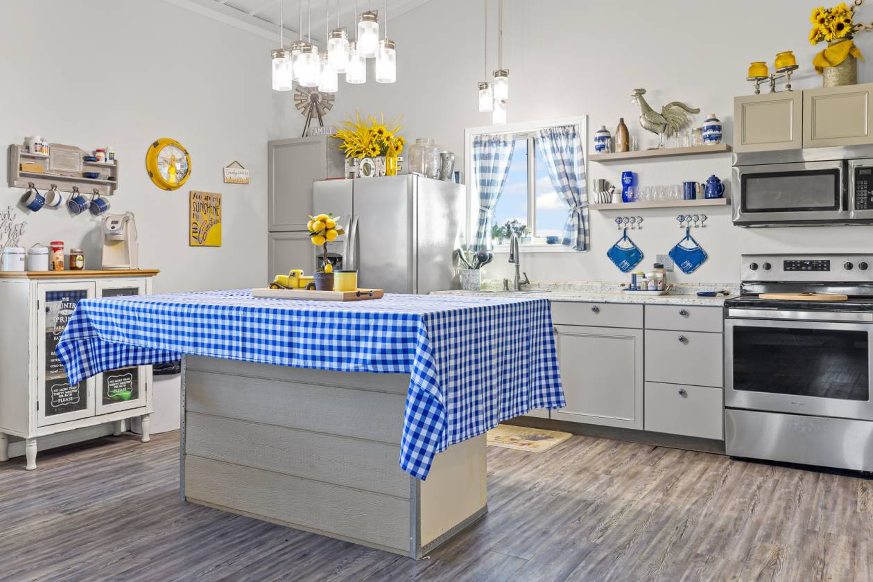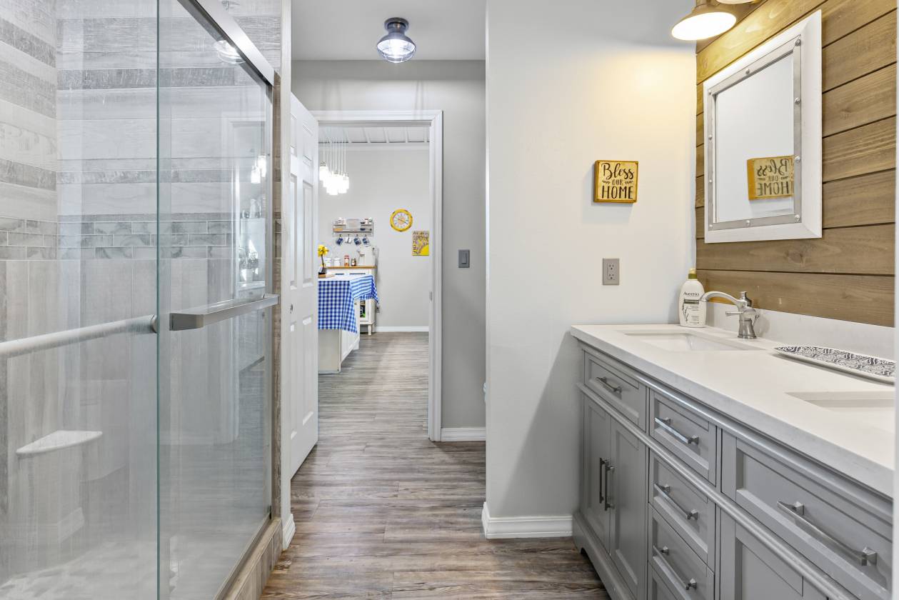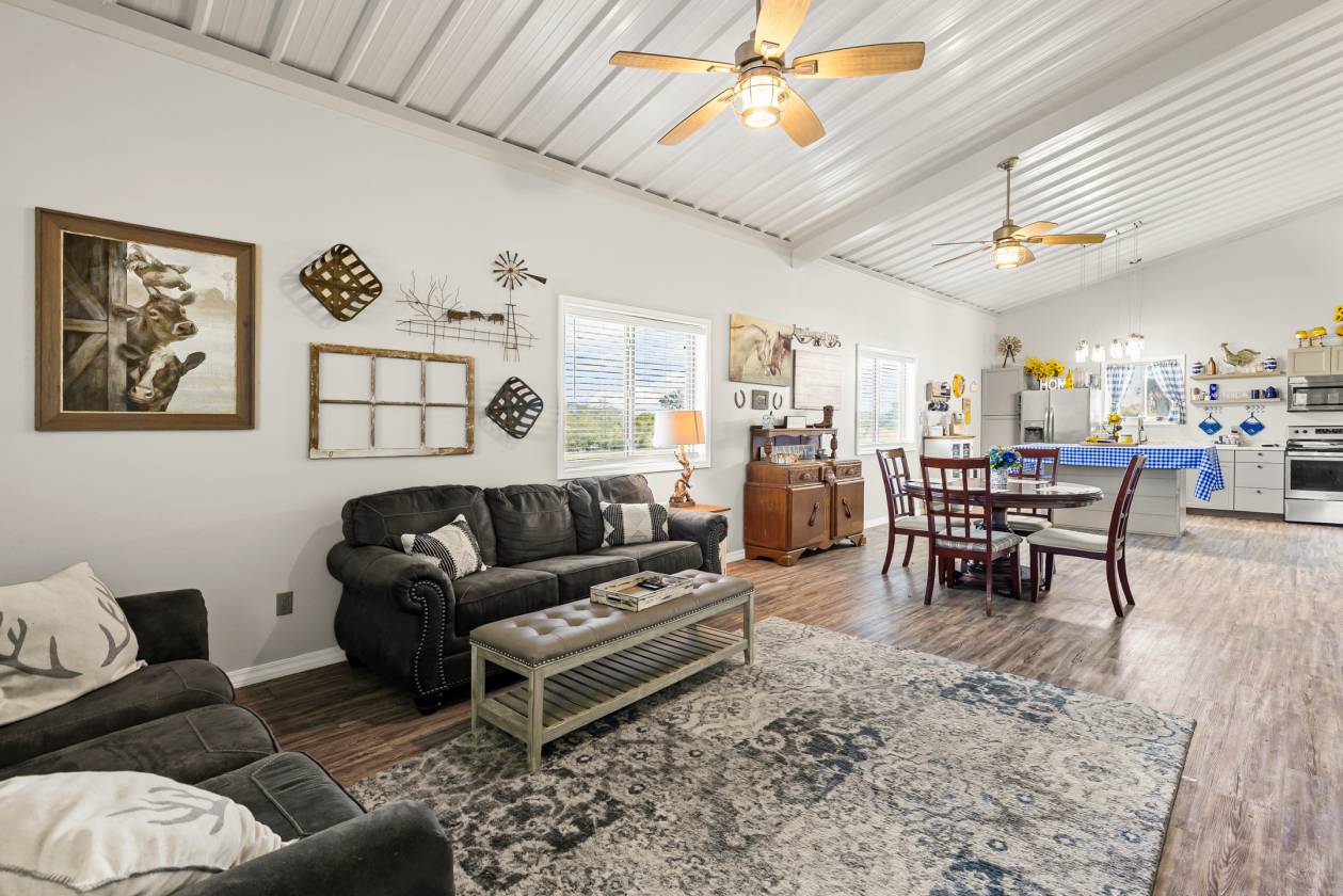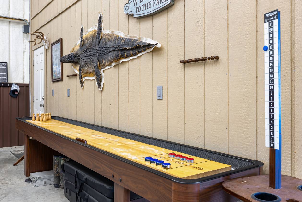 - Custom built shop with spacious living area and is Selling fully furnished. A bonus of two sleeping rooms and bath upstairs provides plenty of room for guest. A portion of the shop is also set up for entertainment area with plenty of seating, TV, bar, shuffleboard table and more.