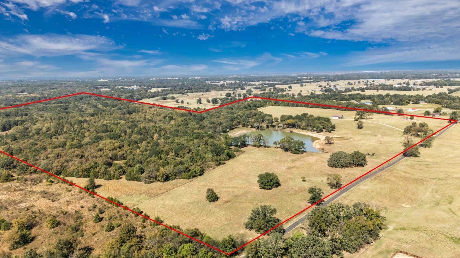 - Over 50 acres of fenced meadow with cross fence, large stock pond, large Oak trees.