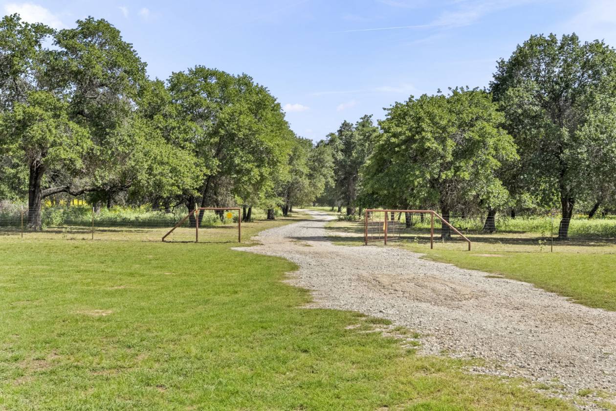 - Private long gravel driveway that meanders through wooded post oak groves that would make a beautiful area to ride your horse. Back pasture has near horse quality Hay production over 7 Acres with a secondary well. Captivating views which would also be another great build site and a great spot to build a barn. The property is perimeter fenced and cross fenced with a separate holding area pen close to the house. Only 5 minutes to downtown Fredericksburg!