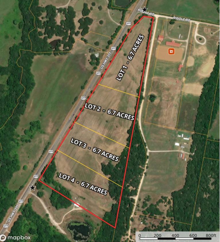 Build Without Limits – 1-27 acre tract or 4 Lots in Gordonville, TX. Whole property is un-zoned in Grayson County. Outside of city limits no ETJ. Discover the freedom to build your dream home in the charming lake town of Gordonville. Just 8 miles north of Whitesboro and minutes from the sparkling shores of Lake Texoma. This property offers incredible flexibility and prime location. Enjoy the peaceful, rural surroundings with convenient access to major roads and nearby towns Gordonville & Whiteboro. Whether you're looking to invest, develop, or build your weekend getaway, these lots offer unmatched potential in a fast-growing area near the lake. - Un-zoned – No zoning restrictions, ideal for custom homes, cabins, Storage Facility, Boat & RV storage, or industrial flex commercial complex. - Close to Lake Life – Quick access to popular destinations like Rock Creek Resort, Cedar Mills Marina, and endless outdoor recreation - Rising Area Value – Located only 15 miles south of the upcoming Hard Rock Hotel & Resort in Kingston, Oklahoma. Lots 1-4 - 6.67 Acres a piece $350K per lot.