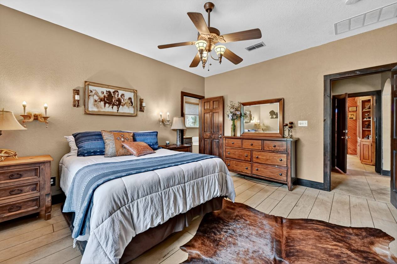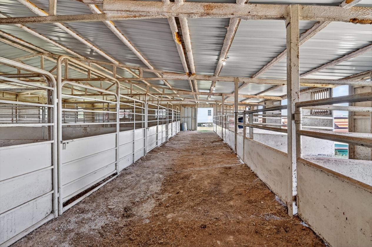 - Horse facilities include a 70x120 covered riding arena, large outdoor arena, and two barns offering a total of 24 stalls. The show barn features 14 stalls, 2 tack rooms, and an office. The mare barn offers 11 stalls with 5 turnouts. The property also includes a 38x60 shop, 12x38 hay storage, multiple paddocks, fenced and cross-fenced pastures, and ample trailer parking. Ponds, gated entrances, and well-planned infrastructure make this a fully operational property.