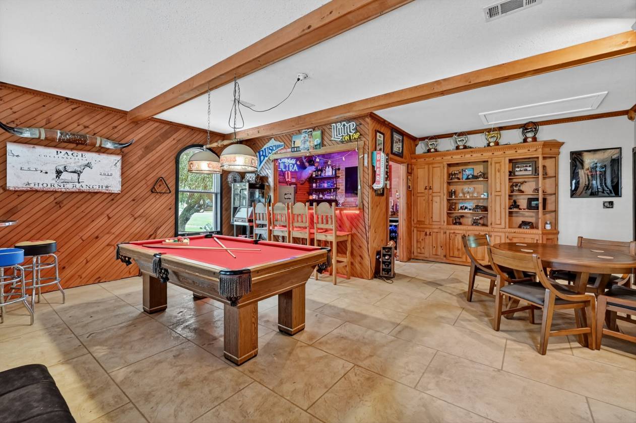 Turnkey horse property on 27 acres located in Collinsville, TX, in the heart of Horse Country USA. This professionally maintained equestrian estate offers multiple homes, extensive horse facilities, and a private, functional layout ideal for any horse operation. The main home is 3,967 square feet and was fully remodeled six years ago, with additional updates in 2024 including new windows and roof. The residence includes 3 bedrooms, 3 full bathrooms, a half bath, an updated kitchen, spacious living areas, and a large backyard with pool, patio, and separate pool house with a full bath and living area. Horse facilities include a 70x120 covered riding arena, Large outdoor arena, and two barns offering a total of 24 stalls. The show barn features 14 stalls, 2 tack rooms, and an office. The mare barn offers 11 stalls with 5 turnouts. The property also includes a 38x60 shop, 12x38 hay storage, multiple paddocks, fenced and cross-fenced pastures, and ample trailer parking. Three ponds, gated entrances, and well-planned infrastructure make this a fully operational property. Additional living spaces include an updated apartment attached to the barn and an optional tiny home that can be included for purchase outside the sale of the property for expanded living or guest accommodations. This rare offering provides a complete setup for horses, ranch operations, and multi-generational or staff housing. Located in a peaceful and highly sought-after area with easy access to major equine facilities, this property is ready for immediate use and future expansion.