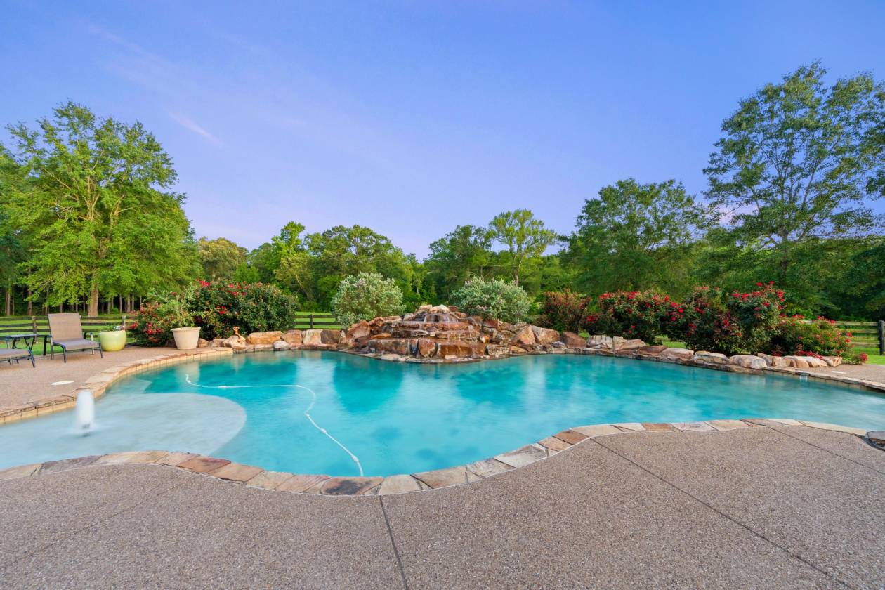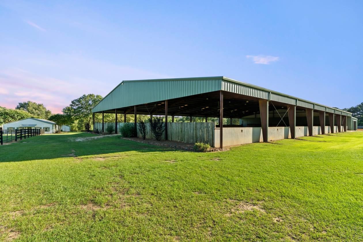 Welcome to 1852 Northridge Rd — A Rare and Remarkable Equestrian Estate in Longview, TX. Set on 45.7 scenic acres in East Texas, this one-of-a-kind Southern Colonial estate blends upscale living, ranch functionality, and event-ready charm. With over 3,900 sq ft of beautifully maintained space, the 4-bedroom, 4-bathroom home is ideal for horse enthusiasts and entertainers alike. Inside, the open-concept layout features a warm living area, private office, formal dining room, and a sunroom full of natural light. The updated kitchen boasts granite countertops, stainless steel appliances, and ample storage. The main-level primary suite offers a spa-style bath, while upstairs includes three spacious, well-appointed bedrooms. Step outside and enjoy your own resort-style pool, perfect for relaxing or entertaining. Surrounded by mature landscaping and expansive views, it’s an ideal retreat after a day of riding or hosting. The true magic lies beyond the home. Equestrian lovers will be thrilled with two horse barns including a barn apartment and 13 custom stalls, a covered riding arena, a large outdoor arena, and a hay barn all thoughtfully designed to accommodate both daily riding and professional-level training. The grounds are fully fenced and cross-fenced, with 9 paddocks and a peaceful East Texas backdrop. This property isn’t just practical—it’s iconic. 1852 Northridge has hosted the Cattle Barons Ball and other prestigious events, making it a standout venue for gatherings. The grounds are impeccably maintained and offer limitless possibilities for both work and play. Whether you're looking for a luxury ranch, private retreat, or an unforgettable training facility, this East Texas gem delivers it all.