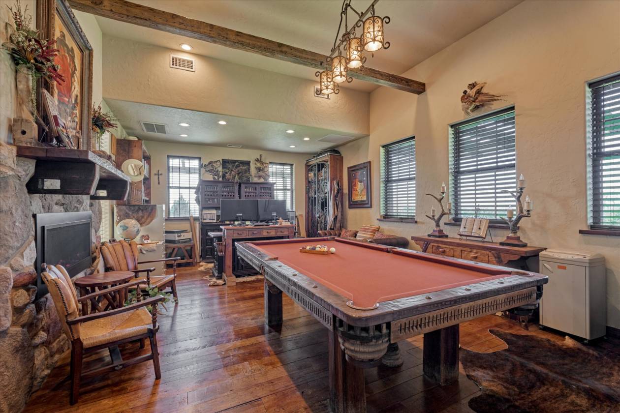 - Great room ceilings feature 1940's spruce planking and authentic Hand-Hewn 10"x10" wood trusses.