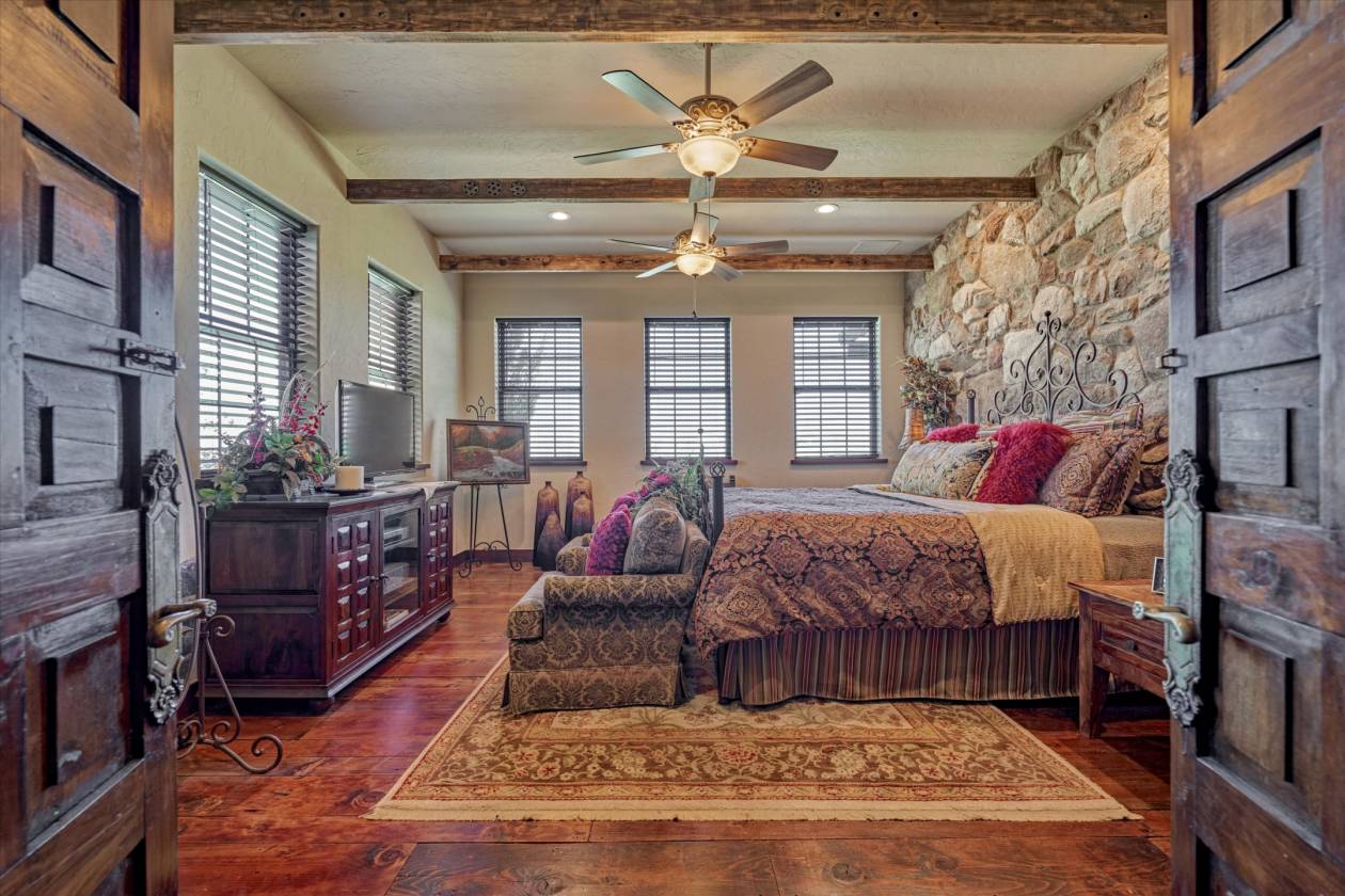 PRICE IMPROVEMENT!!! Authentic Tuscan Villa resting on 12 +/- acres in the beautiful and sought after Whitehall area! This rare estate is surrounded by rolling hills, 400' elevations and panoramic views for miles. The gorgeous home and property include extensive landscaping to complement the Tuscan setting and vibe...magazine ready! The 3,829 sq ft home features 18' ceilings in the 19'x49' open concept Great Room/Dining & Kitchen area, seamless flow. Great room ceilings feature 1940's spruce planking and authentic Hand-Hewn 10"x10" wood trusses. Natural light and views from all directions. Gourmet kitchen includes extensive cabinetry, 6 burner gas stove, dual fuel ovens, farmhouse sink and large Butler’s Pantry. Improvements include 800 sq ft Casita, 4,800 sq ft barn, storage, exercise area, 4 stalls, 24'x36' run in barn, fenced & cross fenced. Located 3 miles from the new FM 249 Aggie Expressway, 1.5 miles from Whitehall grocery and feed! Minutes to Navasota, College Station, Montgomery, The Woodlands.