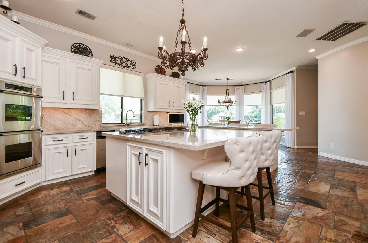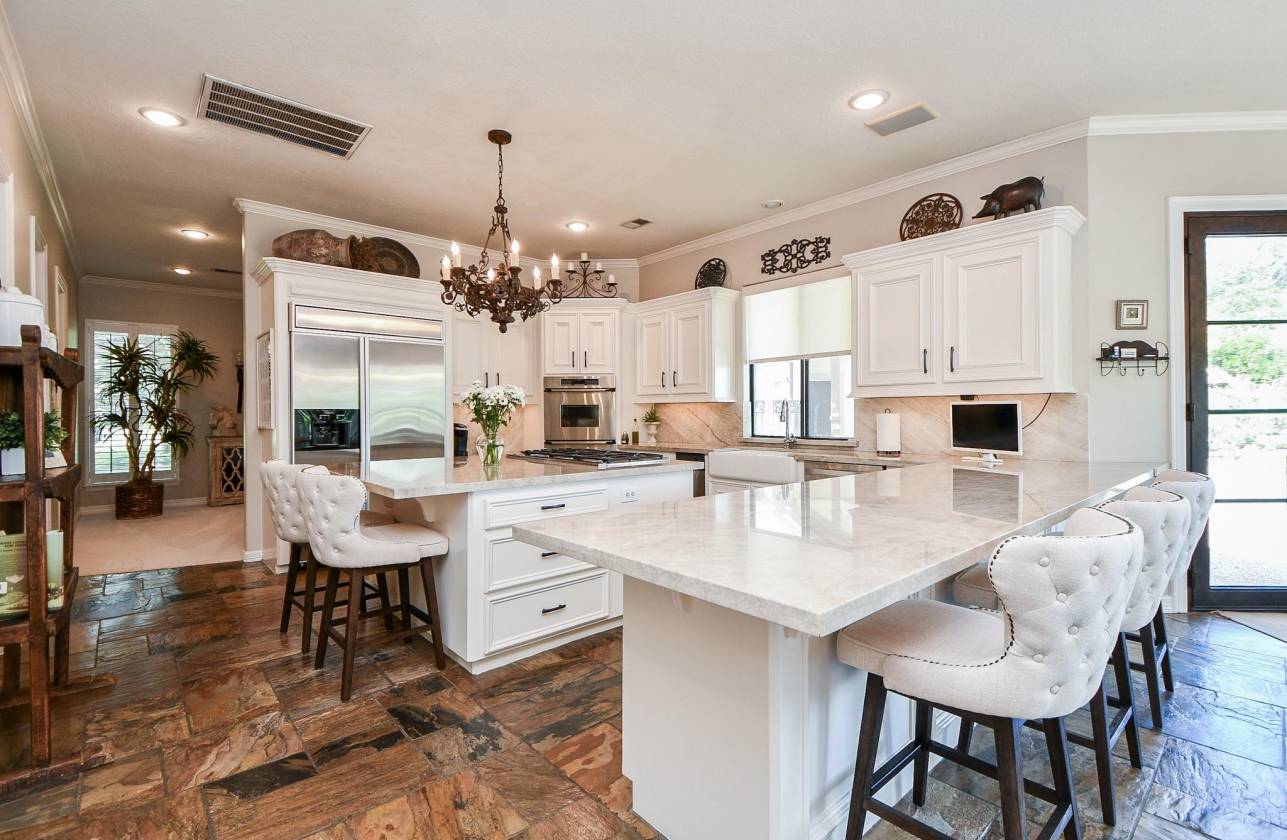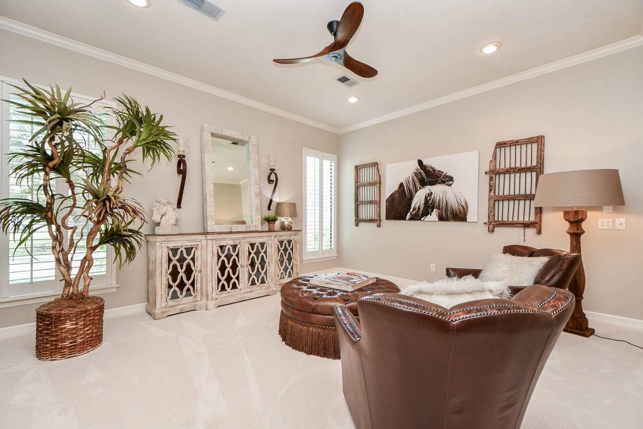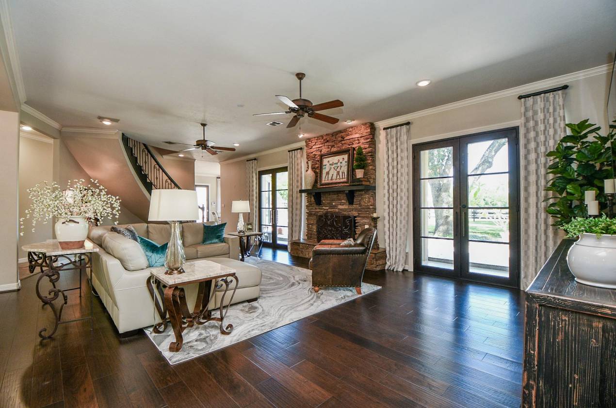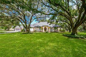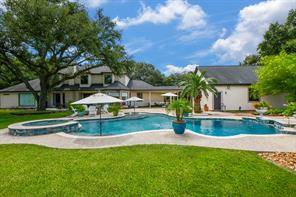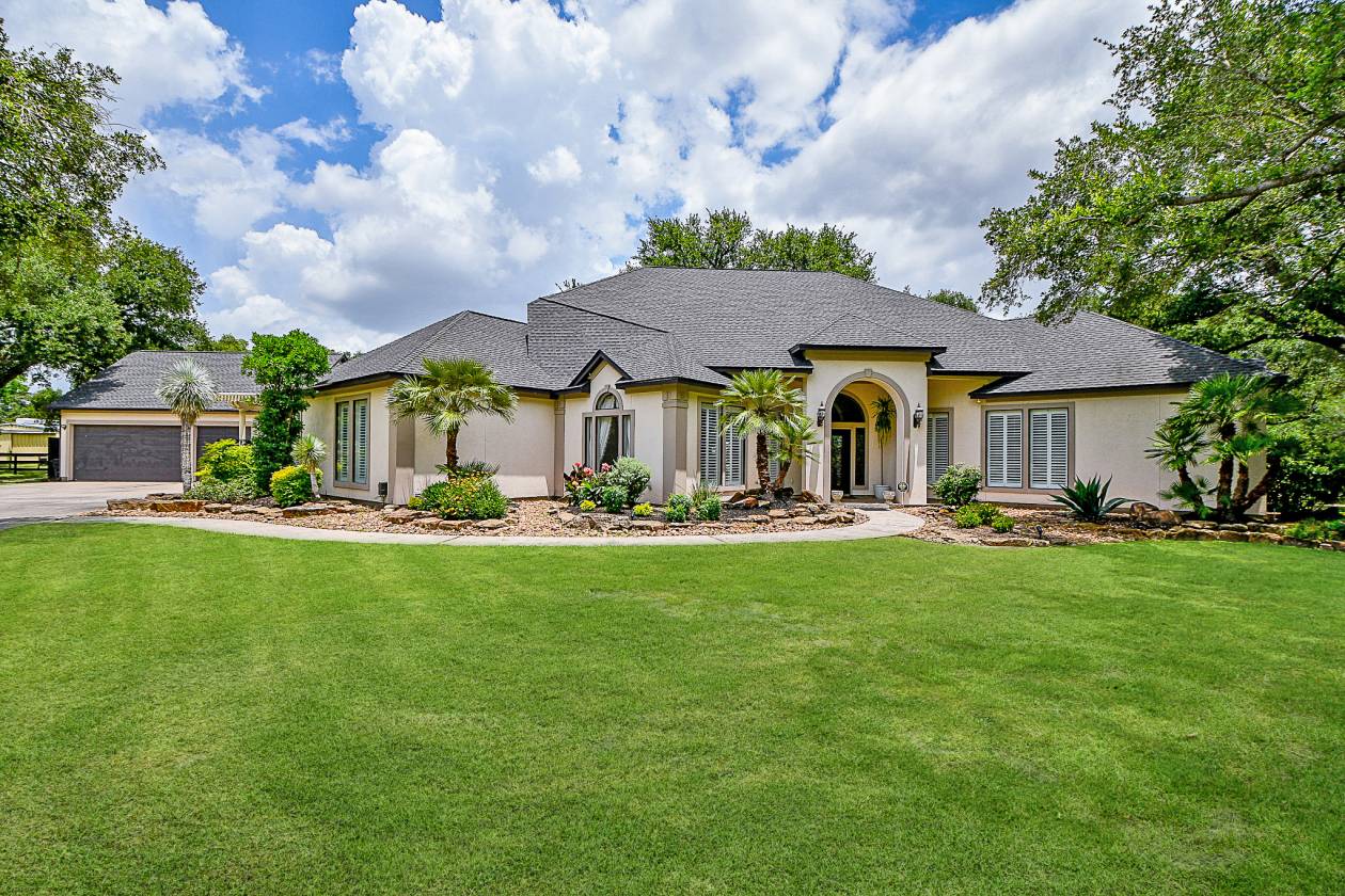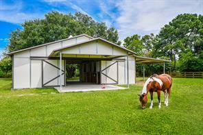 STUNNING CUSTOM HOME ESTATE in CYPRESS on 4.6 Acres surrounded by GORGEOUS Mature Live Oak Trees! This 4373 sq ft 1.5 story has been meticulously maintained. Plenty of outdoor area to entertain with a 16 ft radius deck off the main living & steps to a Beautiful Sparkling Pool, Hot Tub, Outdoor Firepit & Astro Turf patio area. DOWNSTAIRS offers a Cozy Living Area with a gas log stone F/P, hardwood floors, an Updated Gourmet Chefs Kitchen w/Quartz Countertops, Double Oven, Island Gas Cooktop, Breakfast area along w/a lounging room off the kitchen. Also downstairs is the primary bedroom, Remodeled Primary Bathroom, Study & Formal Dining Room. UPSTAIRS has 3 bedrooms & a full bath. This property also includes 2 barns, a Texas Classic 2 Stall Horse Barn with tack & feed rooms, a 40x60 metal building with office, a/c & half bath with a porte-cochere to entertain & have BBQ's. Fully fenced into 3 separate areas with plenty of room for a Garden. A DREAM COME TRUE, THIS WONT LAST LONG!
