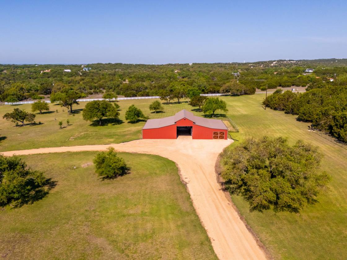 Step into a world of timeless Hill Country charm on this breathtaking 10.03-acre, wildlife-exempt retreat in Dripping Springs, tucked behind Sunset Canyon, just 20 miles from downtown Austin. A dream for equestrian and livestock enthusiasts, this property features a large Mueller barn with potential for 6-horse stalls, making it ideal for creating your equestrian paradise. Set on meticulously cleared land with stately oak trees accenting the landscape. It includes two beautifully crafted homes designed in a distinctive German-influenced Texas Hill Country style. Expansive deep porches, metal roofs, and walls of windows with French doors blur the boundaries between indoor and outdoor living. Inside, a rich blend of warm wood and natural stone creates a rustic yet elegant atmosphere, perfect for embracing the serene Hill Country lifestyle.