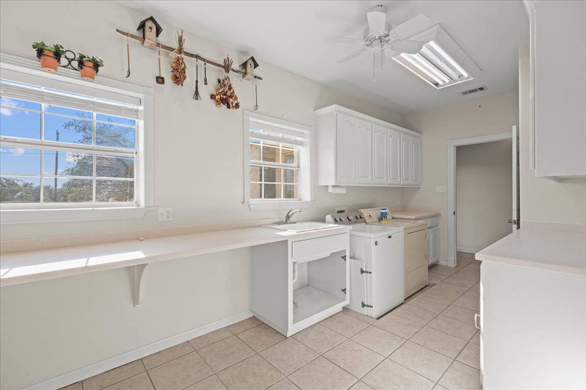 - *Expansive laundry room featuring ample built-in storage and a versatile area perfect for crafting or projects