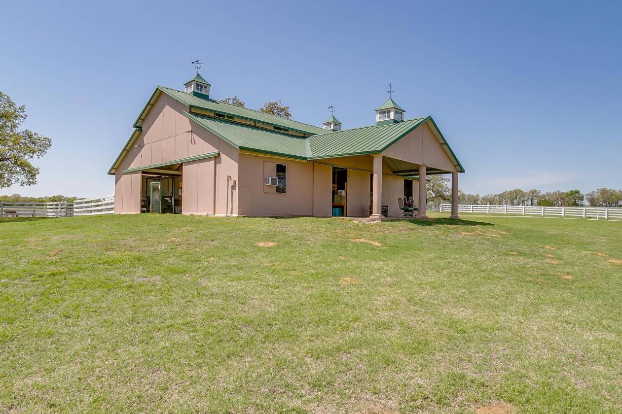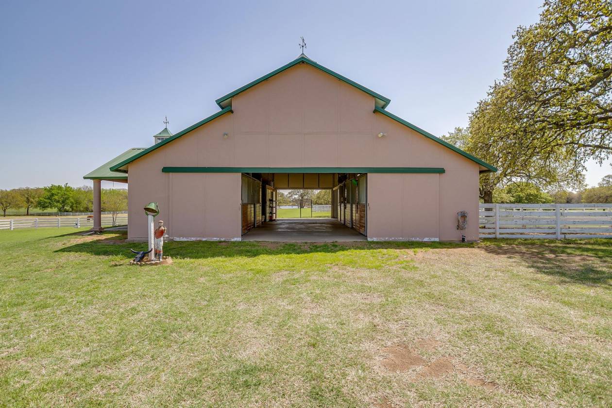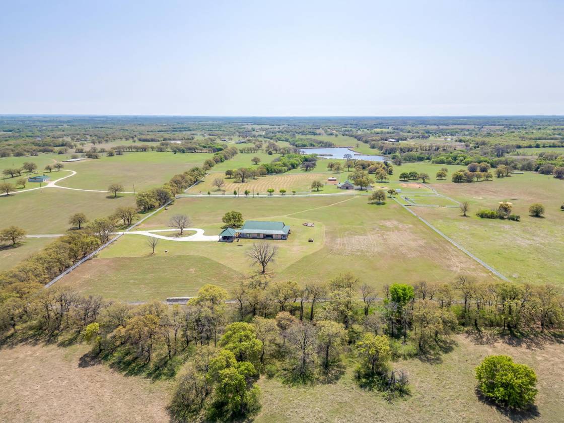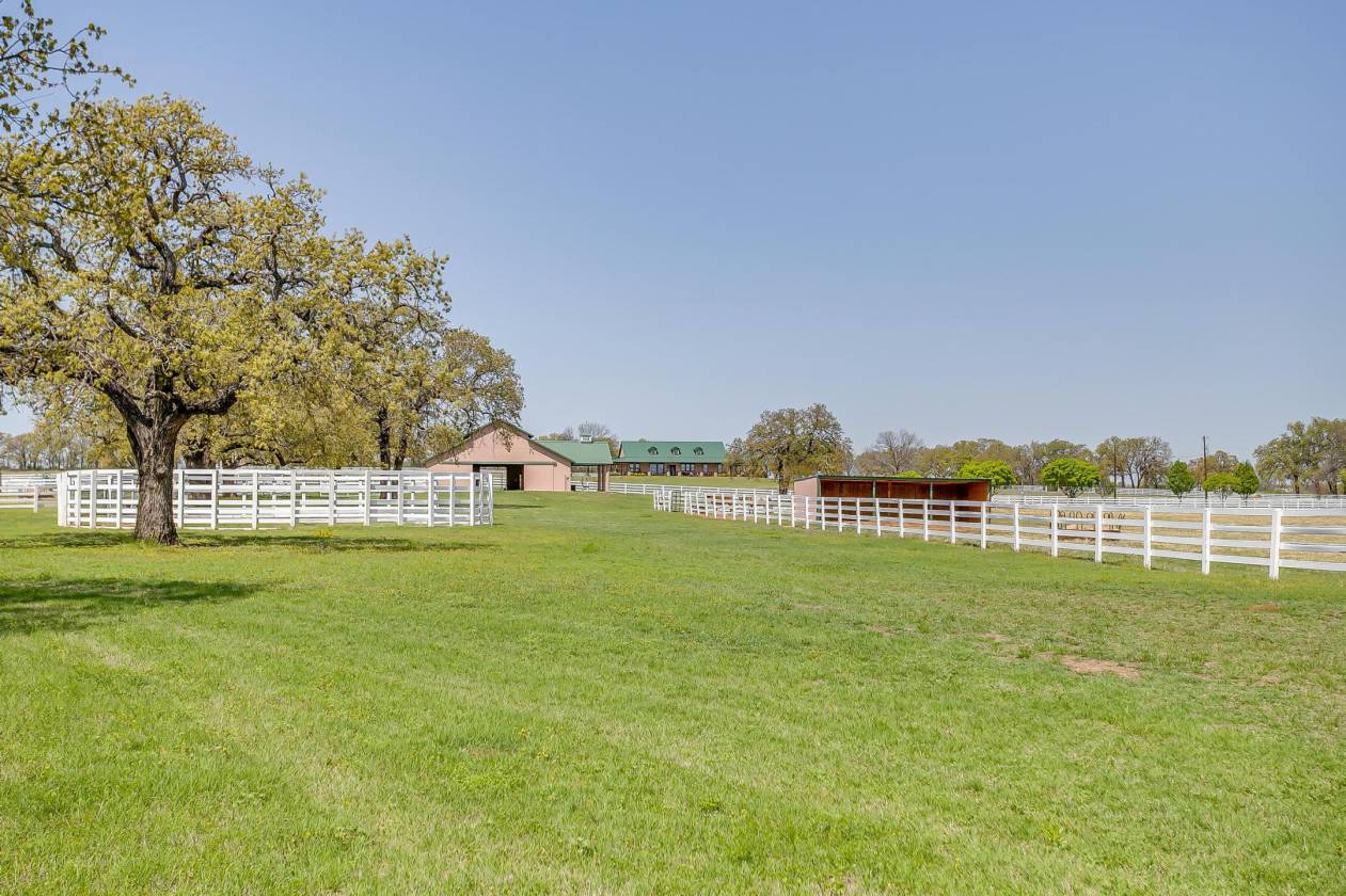 Welcome to Covington Oaks Farm: — a premier 240-acre estate nestled just south of Fort Worth and north of Waco. Meticulously developed over the past 20+ years, this exceptional property has been a true labor of love. With sandy loam soil and lush coastal Bermuda grass, it’s ideally suited for livestock and equestrian pursuits. The fertile pastures produce high-quality hay, yielding over 1,500 bales last season alone Accessed via a state-maintained asphalt road and conveniently located near I-35W, the farm offers privacy without sacrificing accessibility. At its heart is a stunning 3,302 sq ft custom home, built in 2020 and thoughtfully positioned to capture panoramic views of the surrounding landscape — including a horse barn, paddocks, tranquil water features, and unforgettable sunrises and sunsets, all enjoyed from the wraparound porch. Inspired by the elegance of Kentucky horse farms, the property features white vinyl-clad wood fencing surrounding the home and equestrian facilities. The insulated horse barn includes five stalls, a tack room, horse stock, half bath, and a covered porch overlooking four rounded-corner paddocks and a round pen — all designed with horse safety and comfort in mind. Water features are plentiful, including a 9-acre Corps of Engineers Lake at the edge of the property and a stocked 2+ acre pond with a covered dock — perfect for peaceful fishing days at home. Inside, the home boasts 10-foot ceilings throughout, creating a light and open atmosphere. The kitchen is equipped with top-tier appliances, including a Jenn-Air dual oven with a six-burner gas range and griddle, a Chameleon double farm sink, quartzite countertops, and a butcher block island. Adjacent to the kitchen is a spacious coffee bar area, additional refrigerator space, and a Butler’s pantry with built-in shelving — perfect for appliances and pantry needs. The primary suite is a true retreat, offering abundant space for relaxation and customization. The en-suite bathroom is equally impressive, featuring a chandelier, double shower heads in a walk-in shower, Jacuzzi tub, dual vanities, and an expansive open-concept closet A separate drive leads to a 2,800 sq ft equipment barn, offering ample space for machinery and storage. Covington Oaks Farm is a rare opportunity to own a turnkey, luxury estate with both functionality and beauty — an ideal blend for those seeking the best in rural living. Seller will consider subdividing. Call for more details.