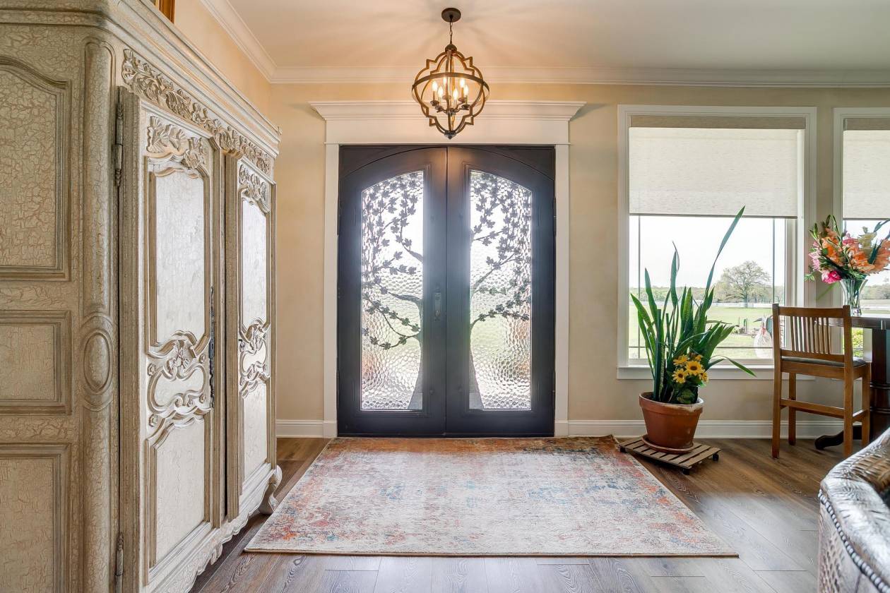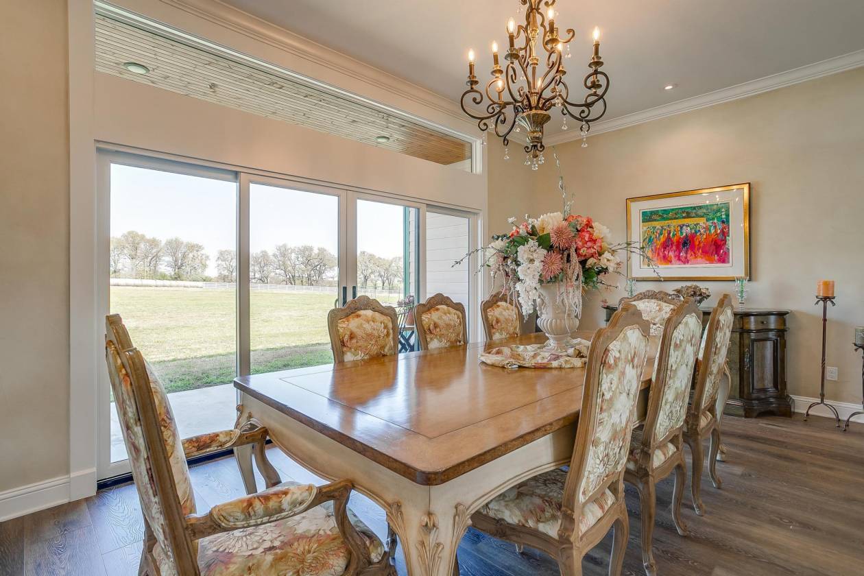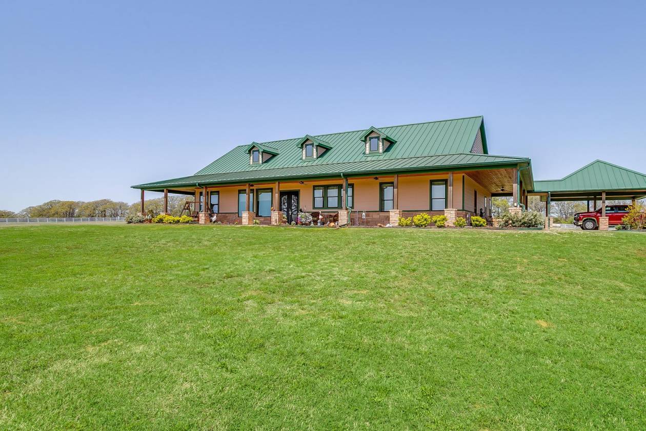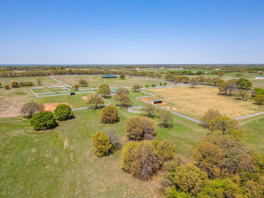 Welcome to Covington Oaks Farm: — a premier 240-acre estate nestled just south of Fort Worth and north of Waco. Meticulously developed over the past 20+ years, this exceptional property has been a true labor of love. With sandy loam soil and lush coastal Bermuda grass, it’s ideally suited for livestock and equestrian pursuits. The fertile pastures produce high-quality hay, yielding over 1,500 bales last season alone Accessed via a state-maintained asphalt road and conveniently located near I-35W, the farm offers privacy without sacrificing accessibility. At its heart is a stunning 3,302 sq ft custom home, built in 2020 and thoughtfully positioned to capture panoramic views of the surrounding landscape — including a horse barn, paddocks, tranquil water features, and unforgettable sunrises and sunsets, all enjoyed from the wraparound porch. Inspired by the elegance of Kentucky horse farms, the property features white vinyl-clad wood fencing surrounding the home and equestrian facilities. The insulated horse barn includes five stalls, a tack room, horse stock, half bath, and a covered porch overlooking four rounded-corner paddocks and a round pen — all designed with horse safety and comfort in mind. Water features are plentiful, including a 9-acre Corps of Engineers Lake at the edge of the property and a stocked 2+ acre pond with a covered dock — perfect for peaceful fishing days at home. Inside, the home boasts 10-foot ceilings throughout, creating a light and open atmosphere. The kitchen is equipped with top-tier appliances, including a Jenn-Air dual oven with a six-burner gas range and griddle, a Chameleon double farm sink, quartzite countertops, and a butcher block island. Adjacent to the kitchen is a spacious coffee bar area, additional refrigerator space, and a Butler’s pantry with built-in shelving — perfect for appliances and pantry needs. The primary suite is a true retreat, offering abundant space for relaxation and customization. The en-suite bathroom is equally impressive, featuring a chandelier, double shower heads in a walk-in shower, Jacuzzi tub, dual vanities, and an expansive open-concept closet A separate drive leads to a 2,800 sq ft equipment barn, offering ample space for machinery and storage. Covington Oaks Farm is a rare opportunity to own a turnkey, luxury estate with both functionality and beauty — an ideal blend for those seeking the best in rural living. Seller will consider subdividing. Call for more details.