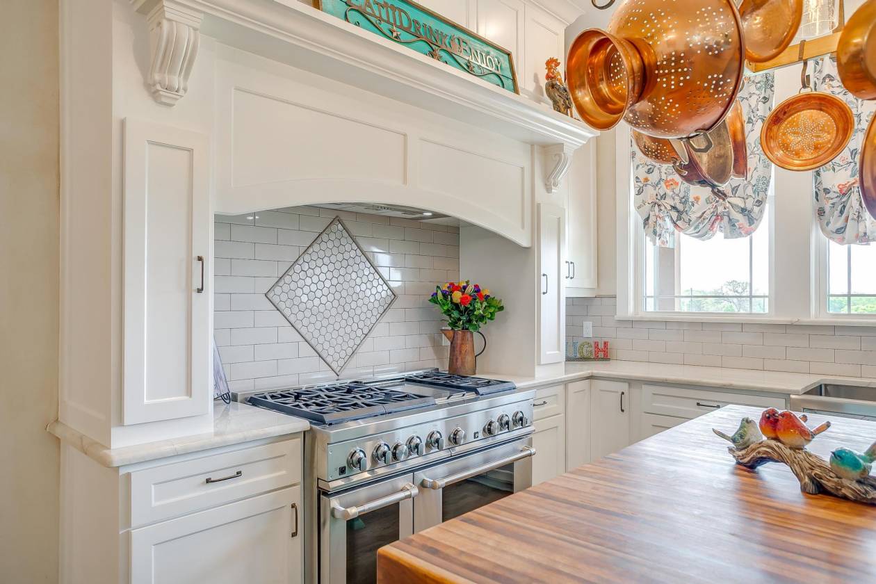 - Jenn Aire double oven with 6 burners and griddle