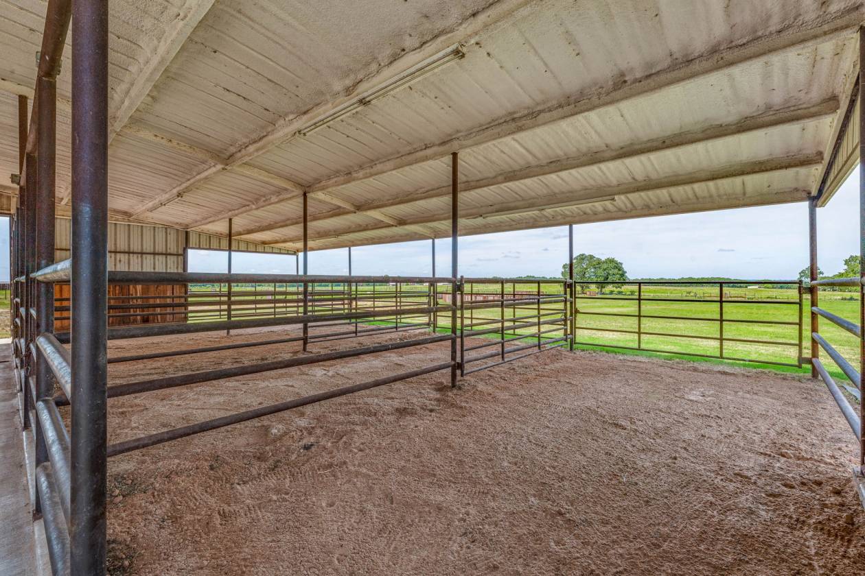 - 4-stall barn (convertible to 8), hay barn, powered shop, two RV connections, and 10 turnouts with sheds and automatic waters. The cutting pen is ready for the cutting enthusiasts, and there's plenty of sandy, flat ground for the team ropers or cowhorse folks to build a full-size arena. The pastures can be connected with the simple opening of a gate, and livestock are easy to move through the alleyway between pens.