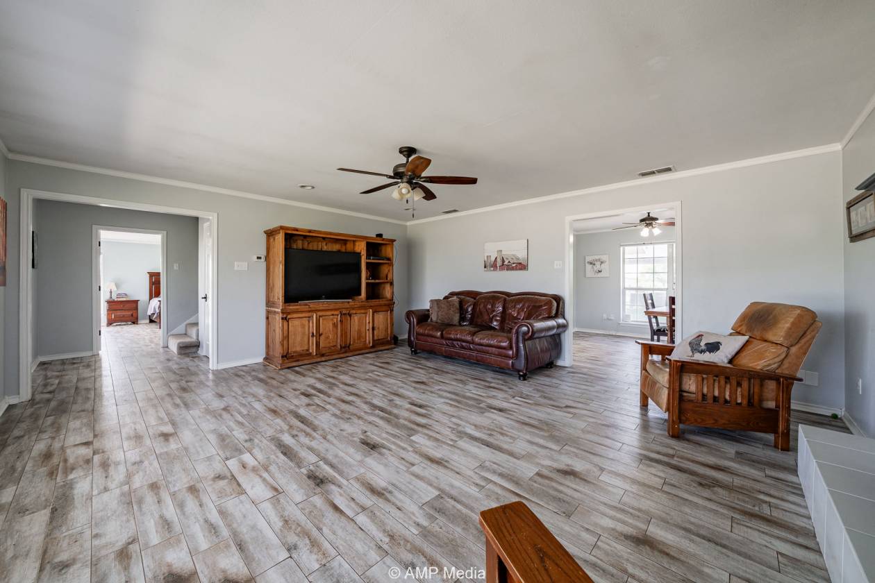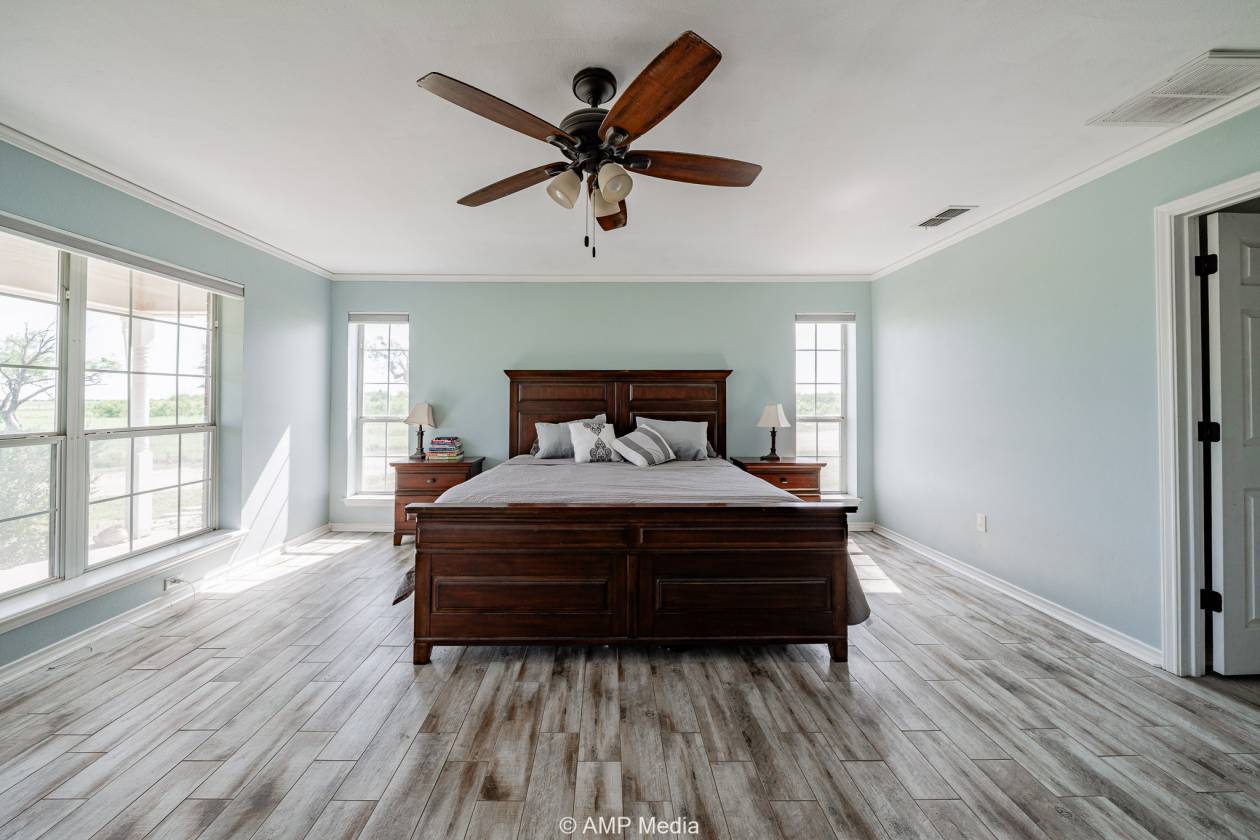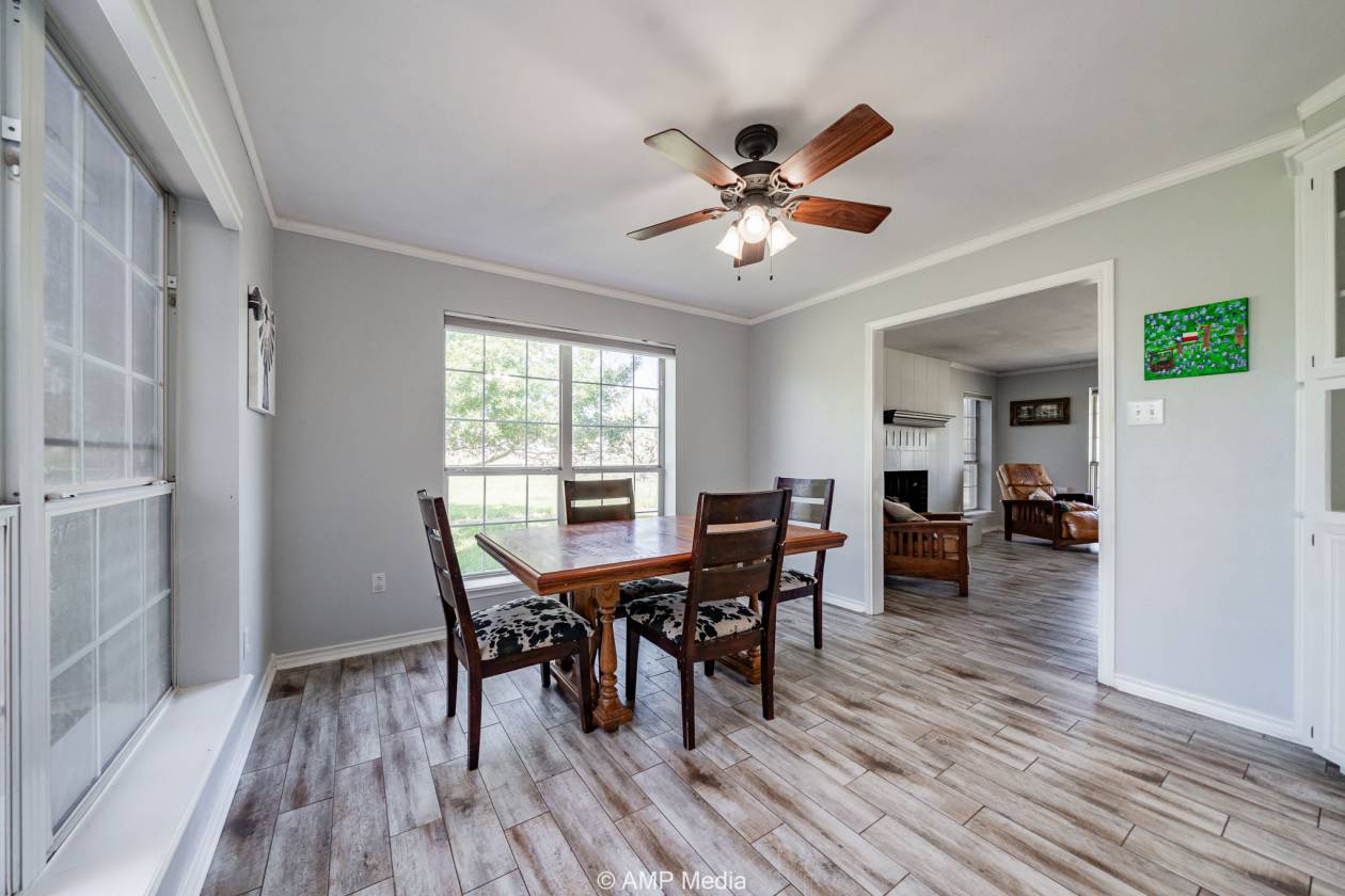 Welcome to your dream country retreat! This stunning four bedroom boasts 2 full bathrooms and 2 half bathrooms. The home sits proudly on 9.94 spacious acres. This beautiful property offers a classic farmhouse feel with modern updates and neutral tones throughout. With an inviting curb appeal, a full-length front porch, and dormer windows, this home exudes warmth and timeless charm. Step inside to find a meticulously maintained interior with ample space for family living and entertaining. The thoughtful floorplan includes an updated kitchen with granite countertops, a cozy living room with a fireplace and a mud room with functional custom storage. The primary suite is expansive with separate his and her toilet rooms and a shared bath and shower combo! The other bedrooms are very spacious, and the upstairs main bathroom has been finished with a modern look. Every detail has been carefully chosen to create a comfortable and welcoming atmosphere. One of the property highlights is the 30 by 80 barn, with 1200 square foot of open storage and a 986 square foot enclosed shop. The barn also features a 213 square foot office with a separate bathroom in the shop area. A large rv shed can also be used as the perfect spot to entertain your guest. The land is fenced and cross fenced making it perfect for your livestock. The property is well established with a water well, chicken coop, loafing shed and working pens. This home and land encompass the best parts of living in Texas!