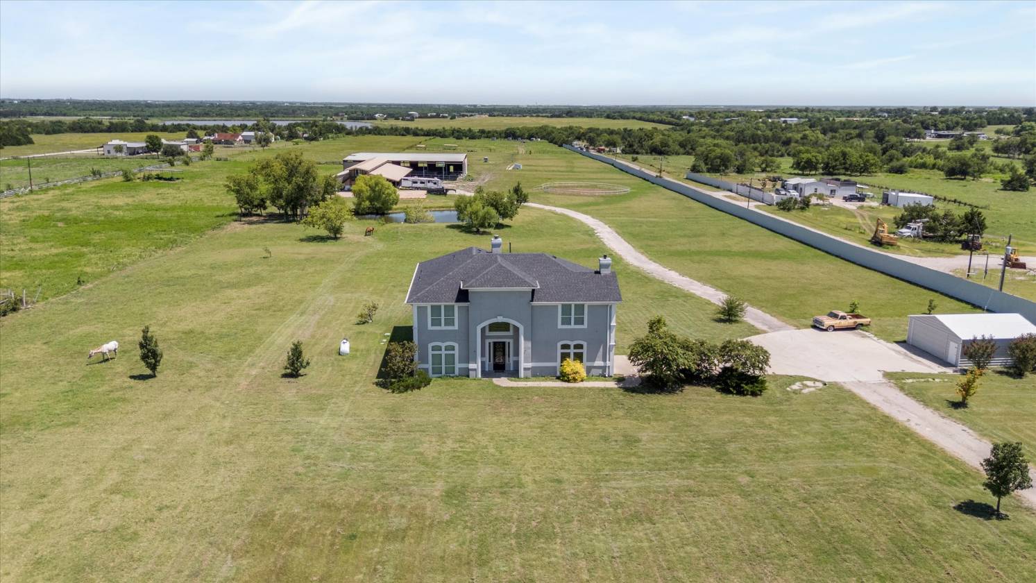 Welcome to your own slice of paradise at 9583 Neal Rd, Forney, TX—a remarkable 18.89-acre equestrian estate designed for those who desire space, elegance, and versatility. This expansive property features a beautifully crafted 3,202 sqft home with 4 bedrooms, 2 full baths, and a convenient half bath. Enjoy ample parking and storage with both an attached 2-car garage and an additional detached 2-car garage. Entering through the electric gate, you're greeted by an blissful setting that immediately invites relaxation and tranquility. The residence is thoughtfully positioned to overlook your own private pond, adding to the estate's serene ambiance. Equestrian lovers will delight in the 10-stable horse barn complete with a wash rack, spacious show arena, and a round pen, providing exceptional facilities for both recreational and competitive horse enthusiasts. Above the barn, you'll find comfortable living quarters ideal for guests, caretakers, or as a private retreat. Entertain friends and family under the property's expansive covered area, perfect for gatherings, celebrations, or simply enjoying peaceful evenings under the Texas sky. This exceptional estate blends functionality with comfort, offering a lifestyle of privacy, and boundless opportunity. Embrace country living at its finest, just moments from city conveniences. Don't miss the chance to make this incredible property your own.