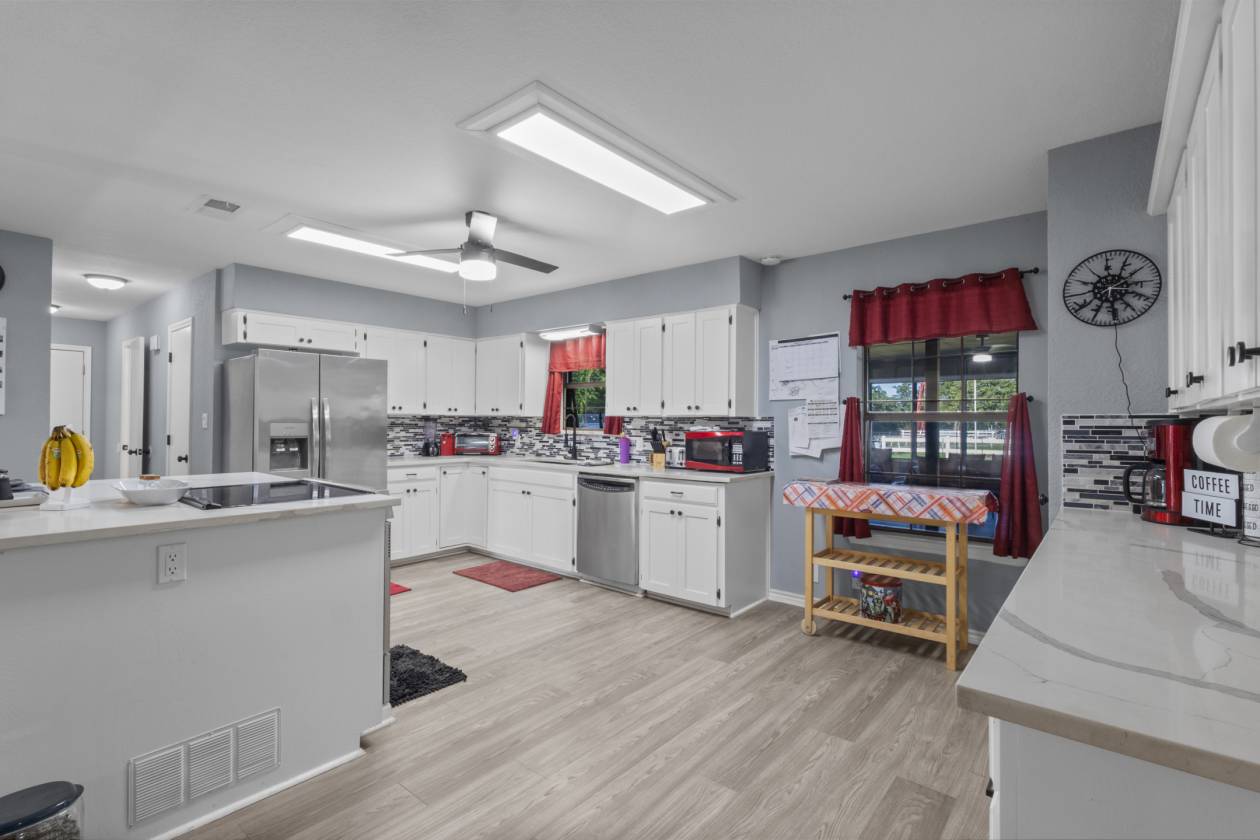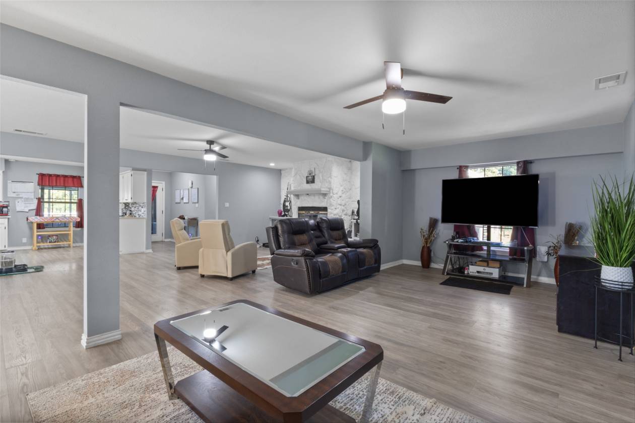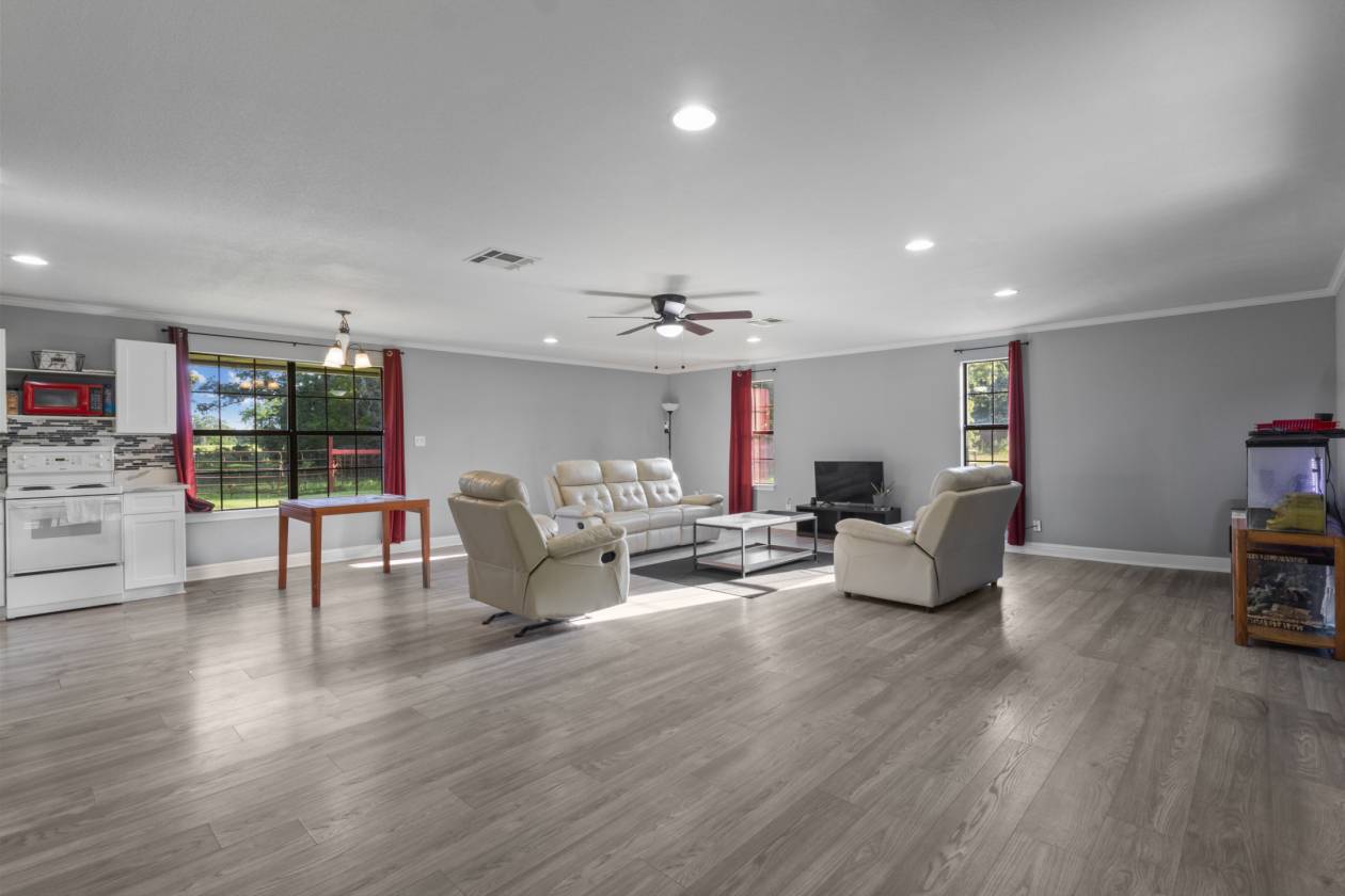 • This stunning 19.8± acre ranch offers the ultimate country living experience. Featuring 6 bedrooms, 4.5 bathrooms, over 4,100 square feet, and a 2-car garage, this property has been designed for comfort and convenience. The home boasts an open floor plan, modernized with top-to-bottom updates completed in 2020, combining style and functionality. The kitchen, complete with natural lighting and updated finishes, flows seamlessly into a bright living area, while the primary suite impresses with an oversized layout, spacious closets, and luxurious ensuite. Additional bedrooms are well-sized for comfort and flexibility. For extended family or guests, enjoy a separate living area with its own kitchenette and private entrance—perfect for multi-generational living. . Solar panels enhance energy efficiency and keep utility bills in check. Relax on the screened-in porch, soaking in peaceful views of your land.