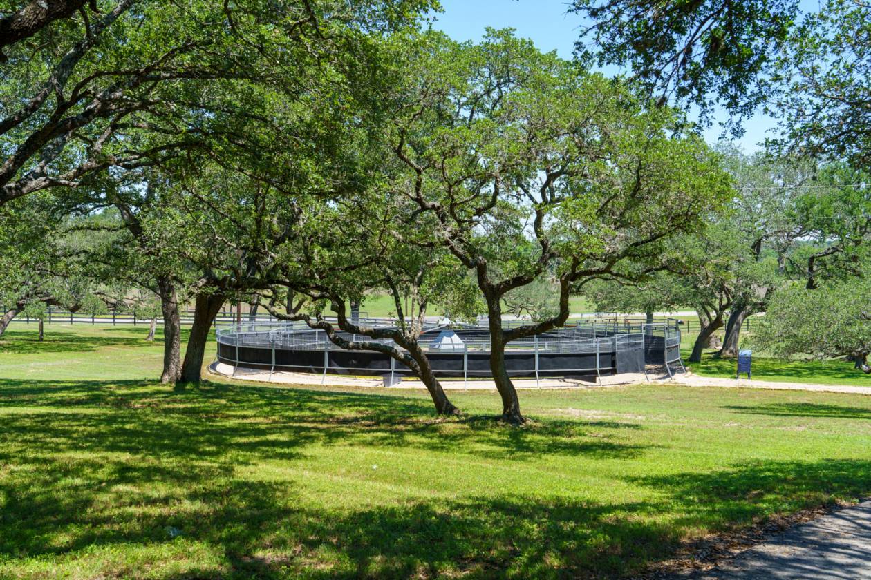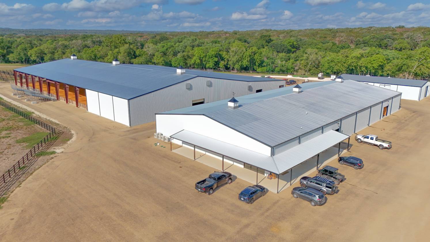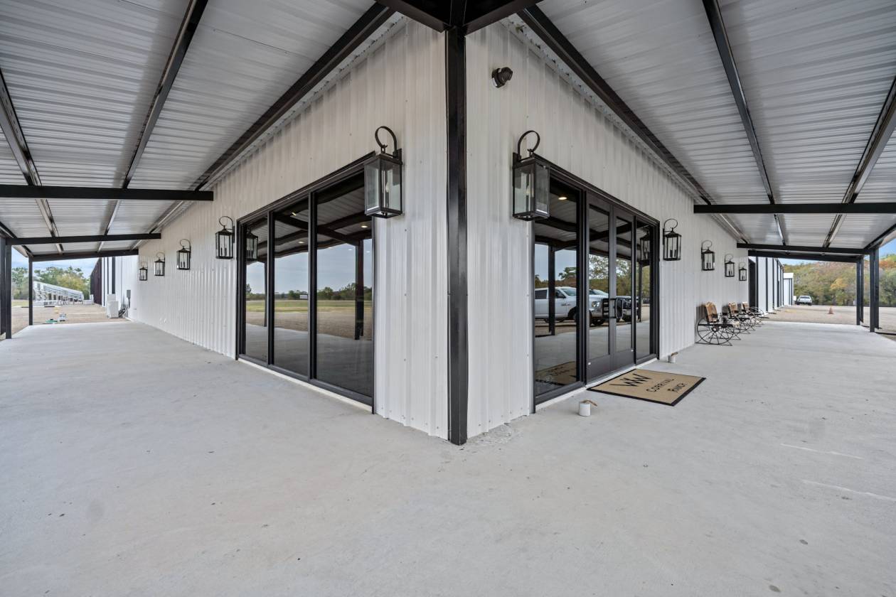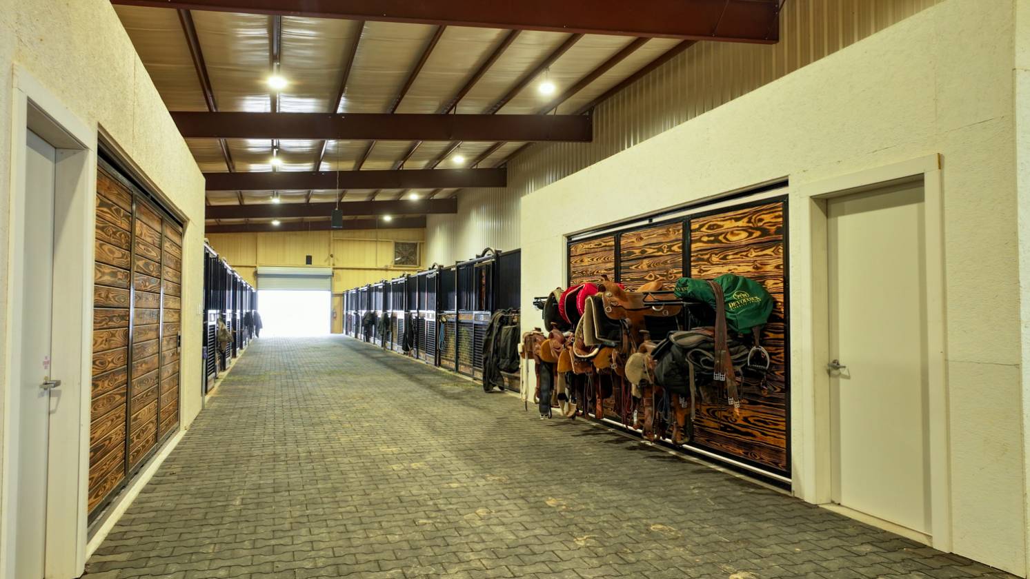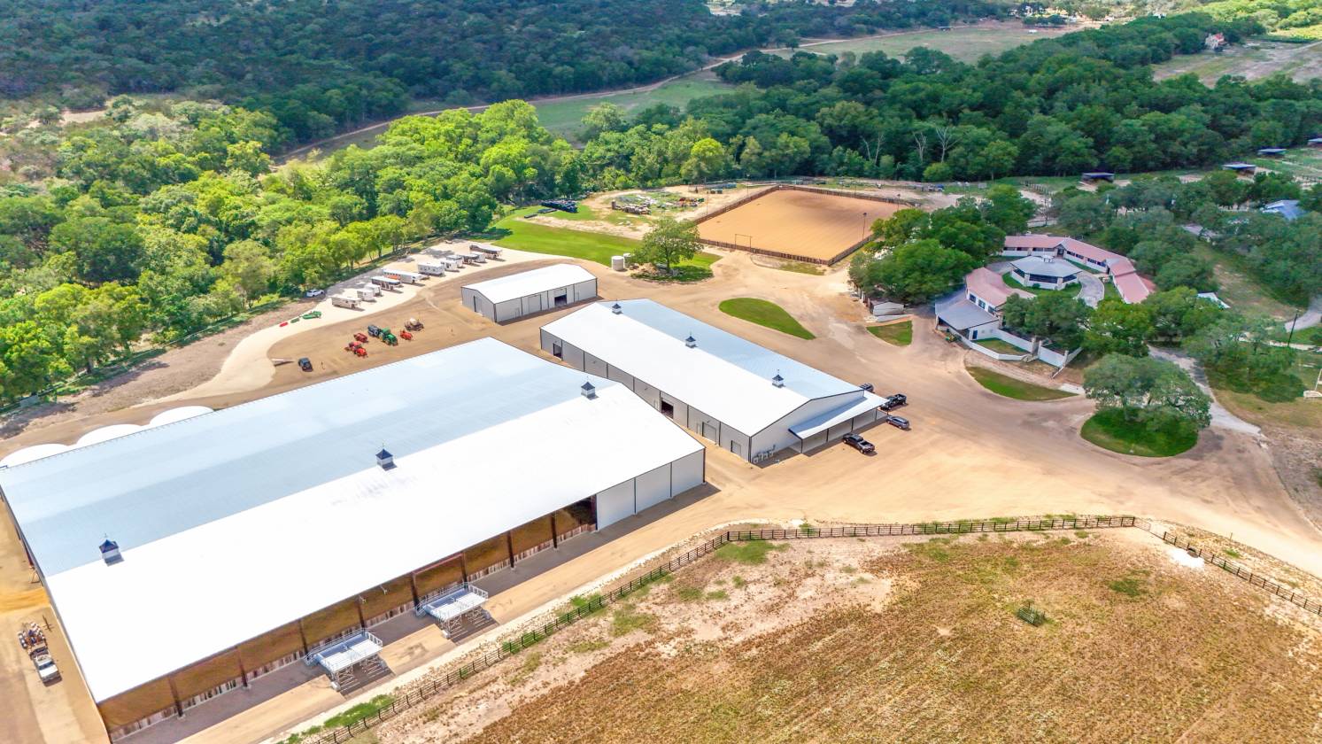 - Beginning in 2021, three large facilities were added to the property, adding to the pre-existing 22 – 12’ x 12’ stalls, 60’ round pen and eurosizer, in order to create this one-of-a-kind equestrian center. The new facilities include a 14-stall rehab and conditioning barn with a veterinary office and a full surgical suite. This barn houses all of the therapy equipment including an AquaPacer, hot and cold saltwater spa, and theraplate. All of the stalls in the new facilities are 14’ x 14’ with StableComfort mattresses to offer ultimate care and comfort for the horses boarded within. In addition, there is a 46-stall boarding barn with an attached 135’ x 225’ covered arena, a 7-horse Priefert panel walker and an 80-foot round pen. Both of the new stable barns incorporate 1 ¾” rubber pavers in the aisles offering a quiet, peaceful barn. Finally, there is a 15-stall breeding barn with three stallion stalls which houses all facilities a breeder needs on-site, including an AI lab. Overall, 97 horses can be stabled indoors within the over 100,000 sq/ft of barn space.