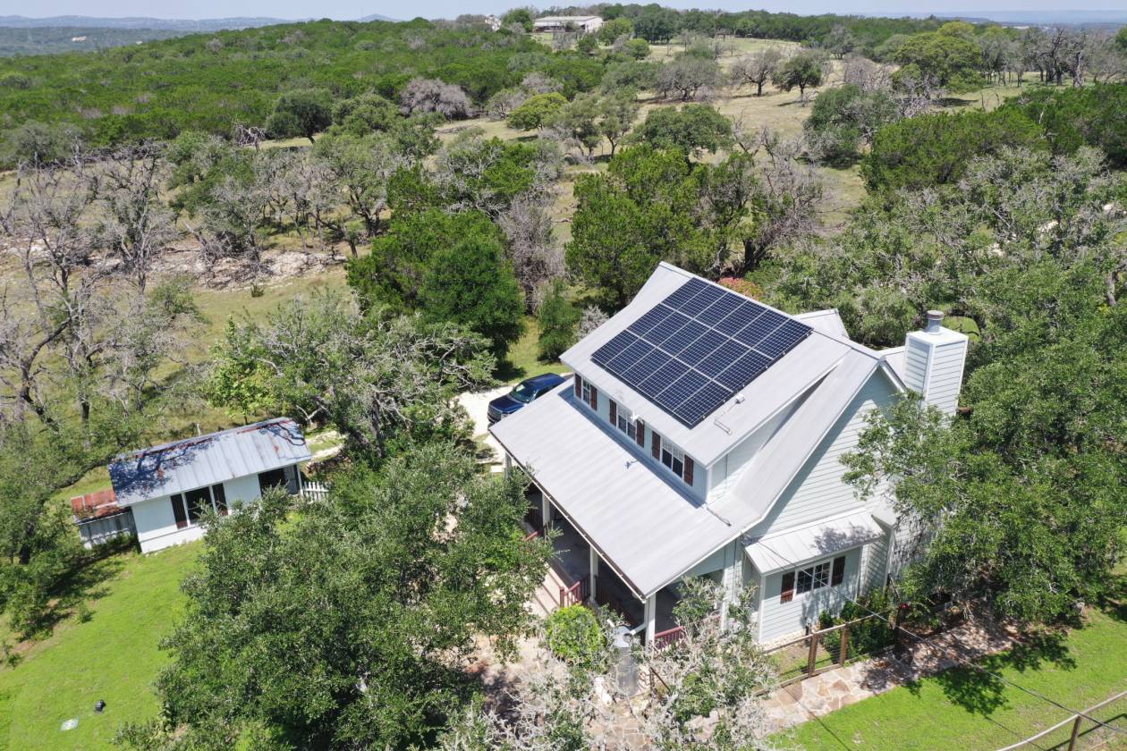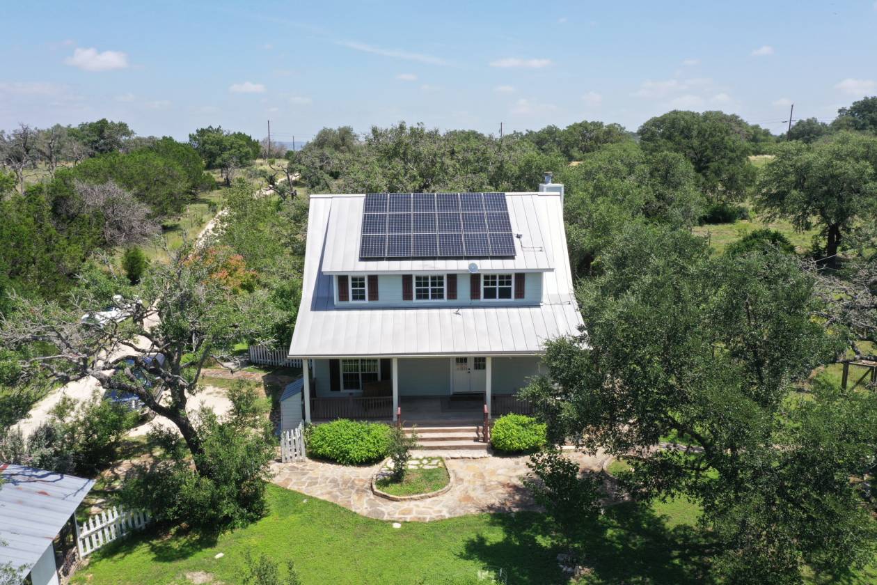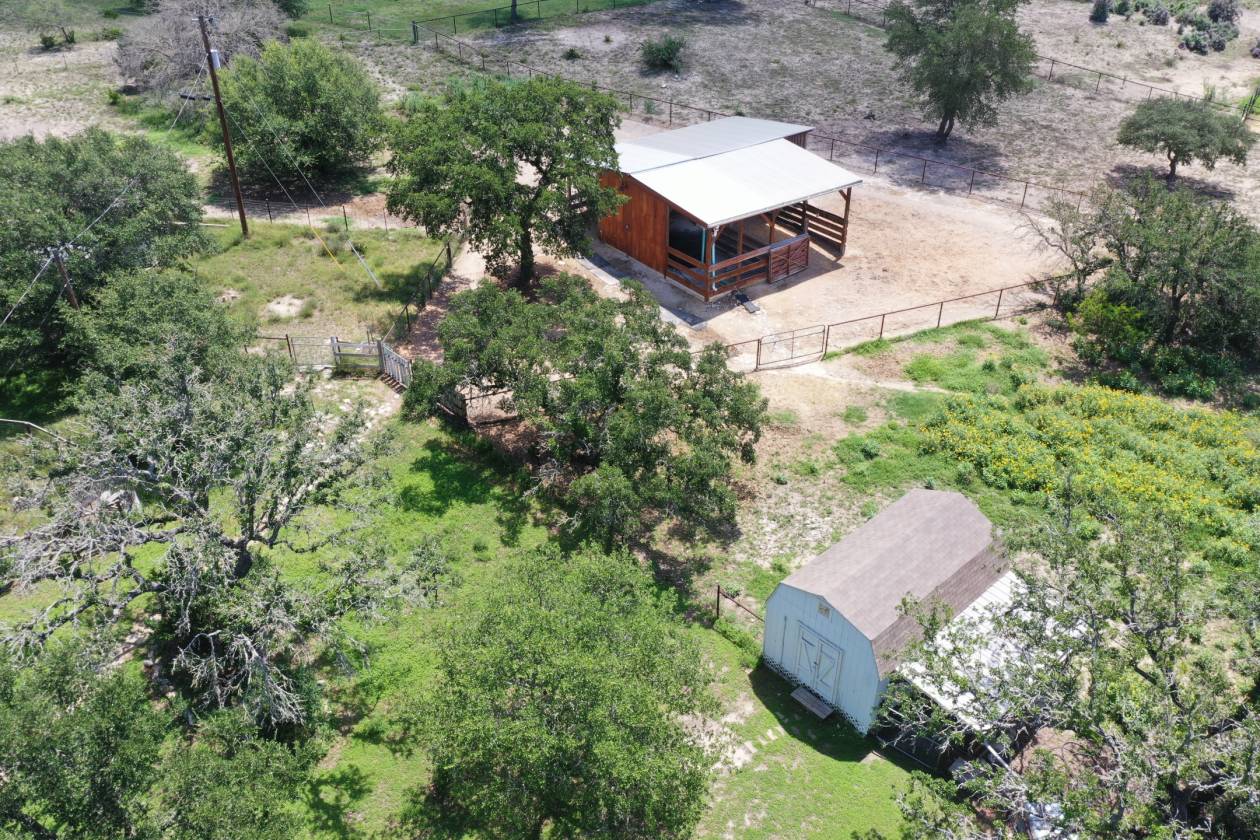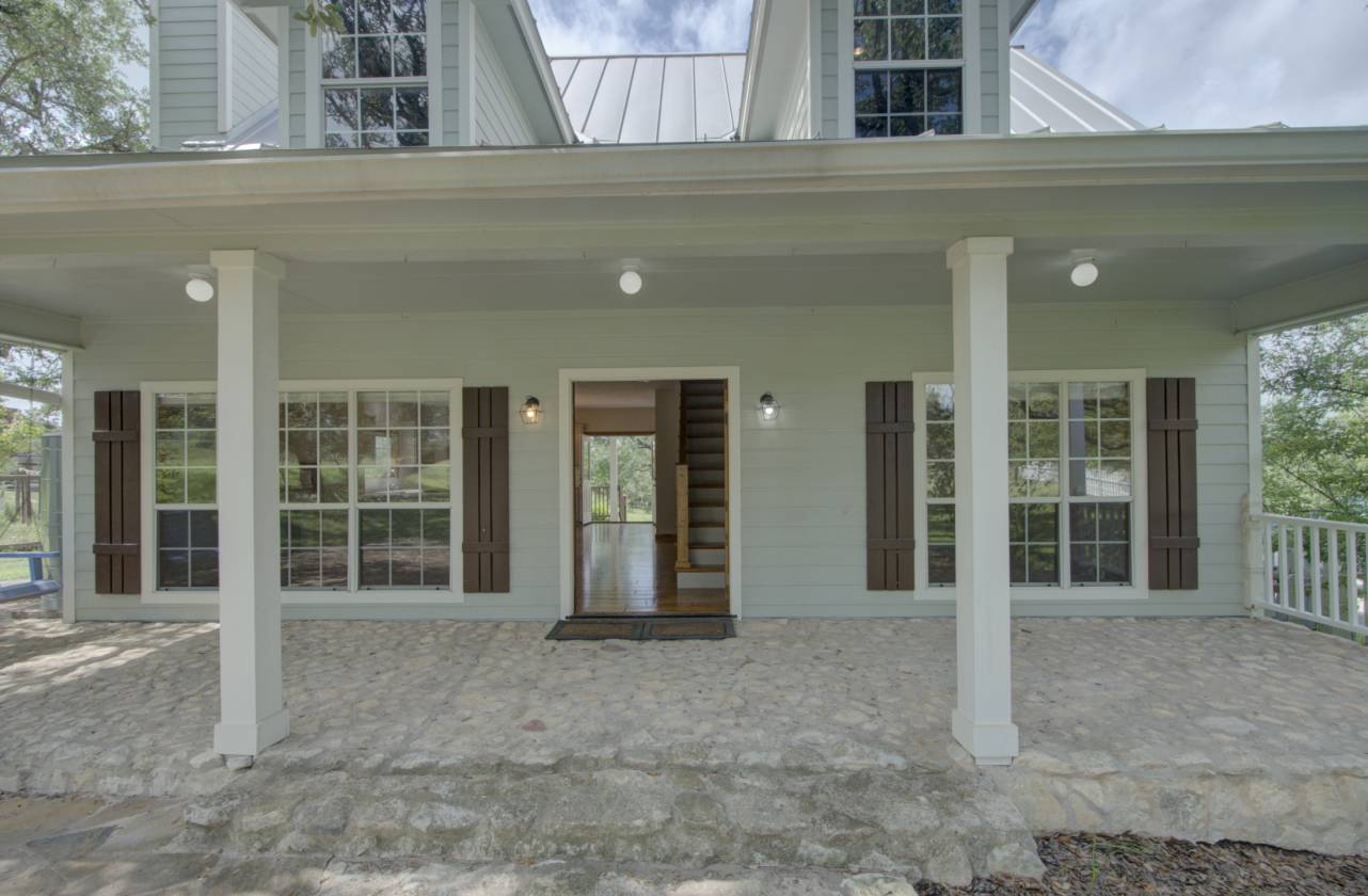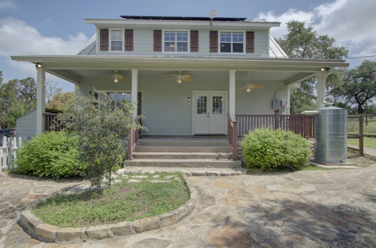 Exterior features include front and back covered porches, a 12x20 storage/garden room, and a horse barn with two large stables, tack room, paddock and multiple fenced pastures. Gated entrance provides privacy. Energy-efficient upgrades include thermal pane windows and solar panels. Durable standing seam metal roof and Hardie Plank siding. Great mix of comfort, functionality, and space-ideal for country living just minutes from IH-!0. Located in Welfare, Comfort ISD