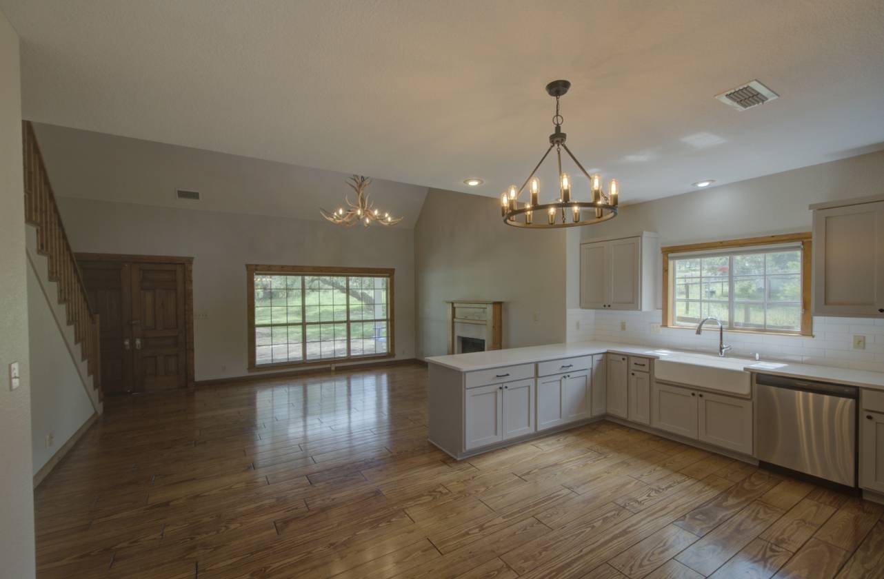 Charming 3-bedroom, 2-bath home with loft, situated on 5.011 peaceful acres surrounded by beautiful century Oaks. Open Floor plan with high ceilings. A brand new kitchen features quartz countertops and high ceilings. New paint and wood plank flooring in all rooms. spacious loft overlooking Livingroom offers additional living space or bedroom. Detached office/workroom offers flexible use.