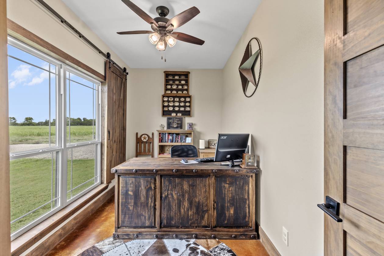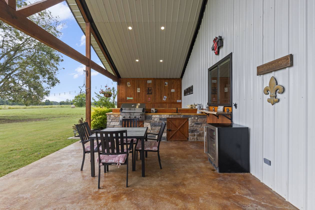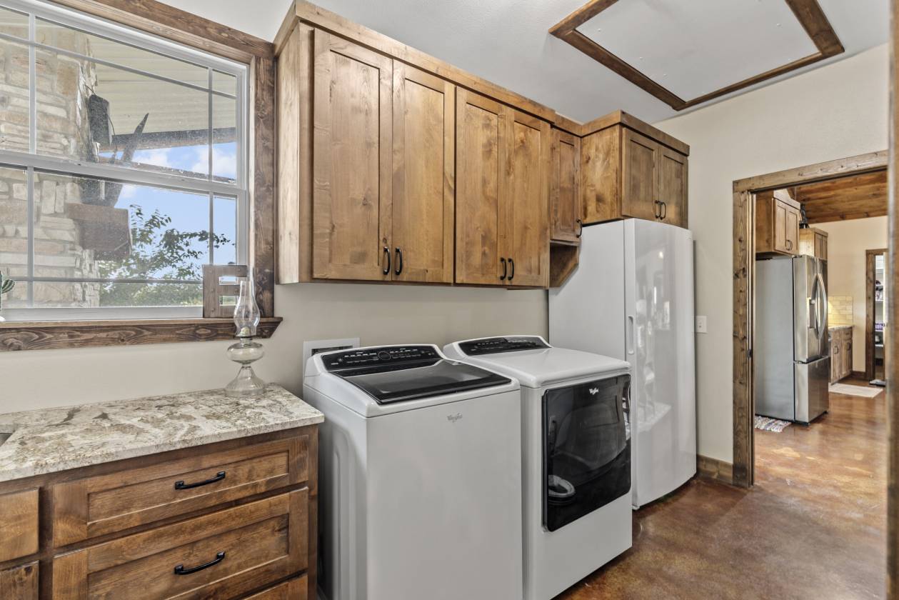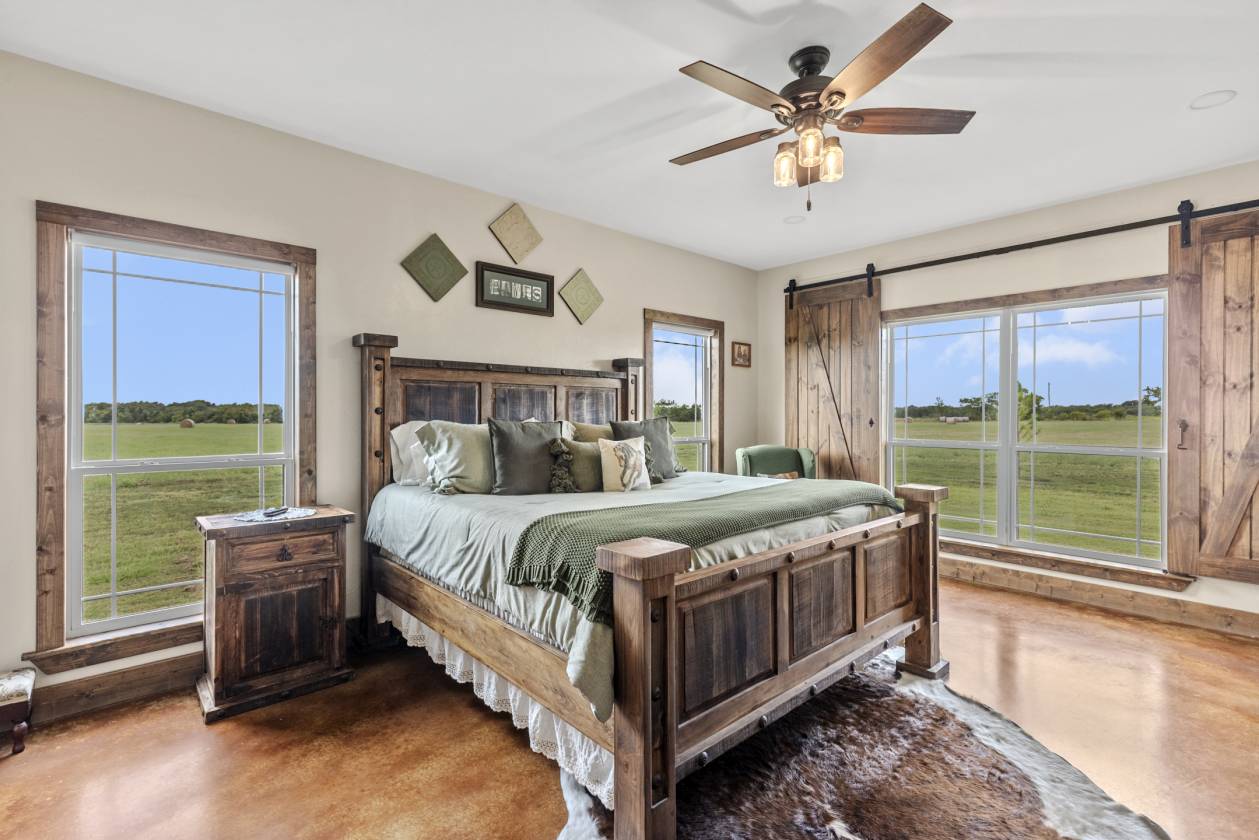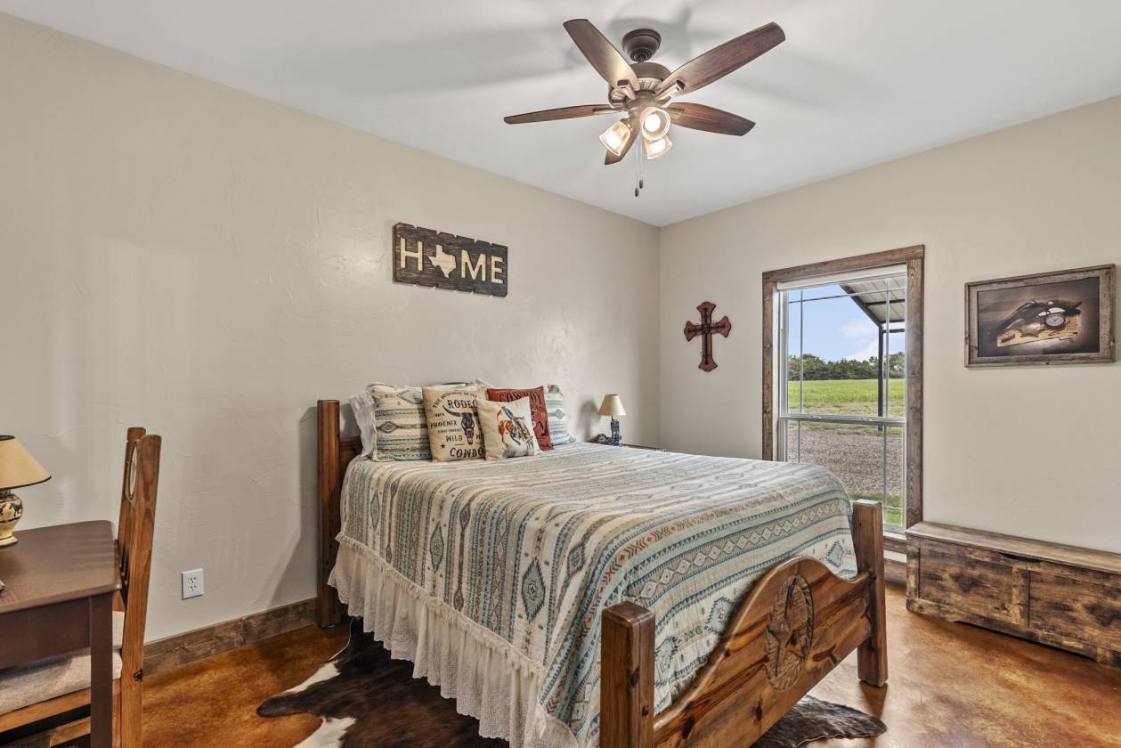 Looking for seclusion, this is it! 120.35 acres with 1,520 sq ft custom built home featuring 2 bedrooms, an office could be 3rd bedroom, 2 baths. The abundance of natural light enhances the beauty of the wood ceiling in the open floor plan. The custom wood cabinets with granite countertops and large walk-in pantry make this kitchen a delight for the cook. The primary bedroom has large a walk-in closet, sliding barn door type window covers. You'll love the dual sinks and tiled shower in the primary bath. The outdoor kitchen with wood burning fireplace and serving window to interior kitchen is the perfect relaxation spot. 30 x 45 detached garage with covered carport. The acreage is good hay producing property. You need to see this one!