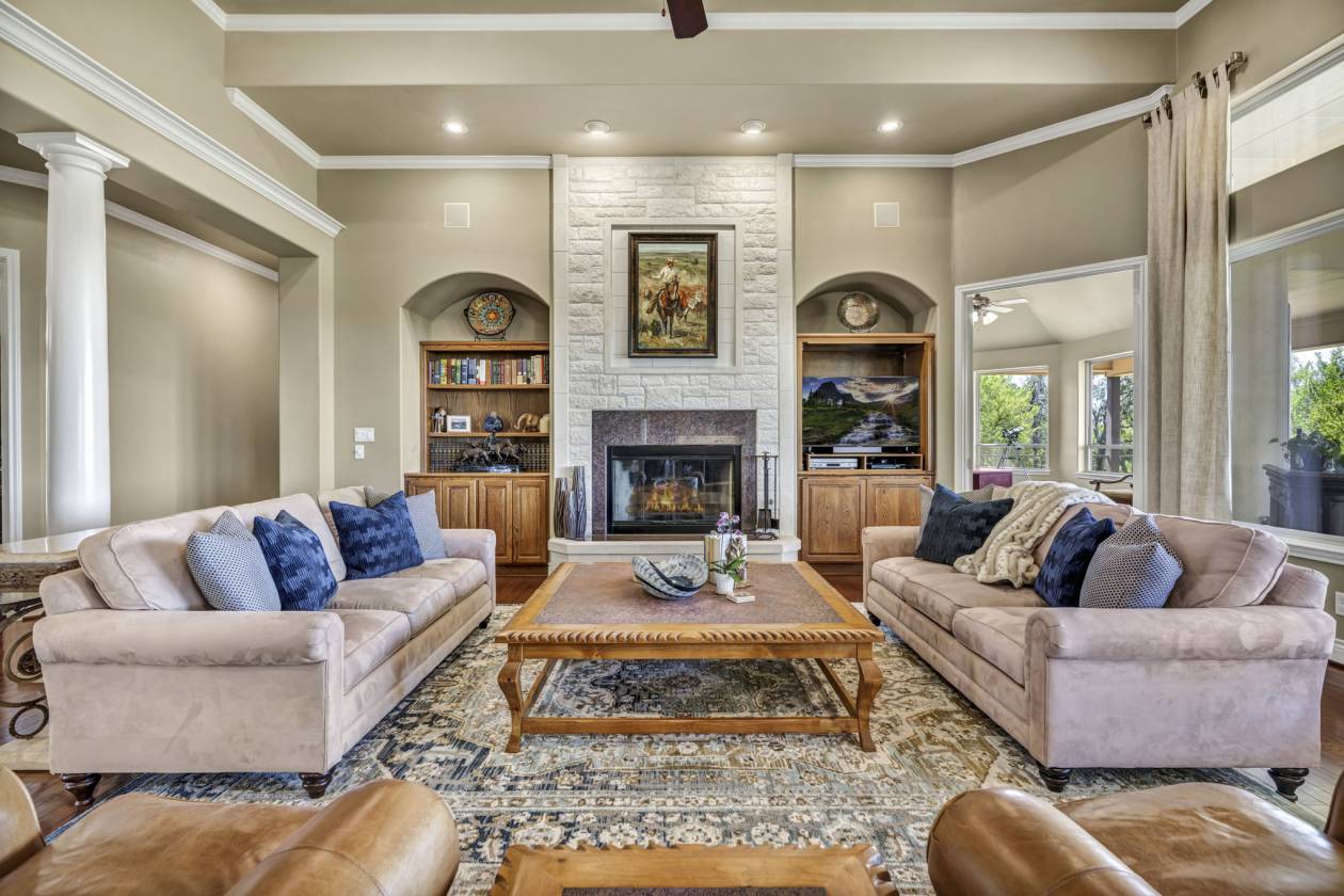 Discover a one-of-a-kind property in the heart of Horseshoe Bay! Spanning just over 7 acres, this stunning, Glen Salem built estate is AG exempt and allows livestock, offering a rare blend of luxury and country living. The beautifully designed and maintained home, in the exclusive "The Hills" subdivision, boasts 4-bedrooms, 4-baths, spacious living areas, a dedicated office and a bonus room with breathtaking Hill Country Views. The attached 1-bedroom 1-bath Casita comprising the 4th bed and bath, provides the perfect retreat for visitors or extended family. Perfect for entertaining or relaxing, the spacious outdoor areas provide stunning views, ample seating and a serene ambience perfect for morning coffee or evening entertaining. Enjoy the serenity of country living while being just minutes from the amenities of Horseshoe Bay Resort such as the four Horseshoe Bay Resort golf courses which are just 5 minutes away (membership required), Lake LBJ and local attractions. This exceptional property is a must-see for those seeking elegance, privacy and ranch-style charm. (Unlike other land in this region, this property has no rock issues)