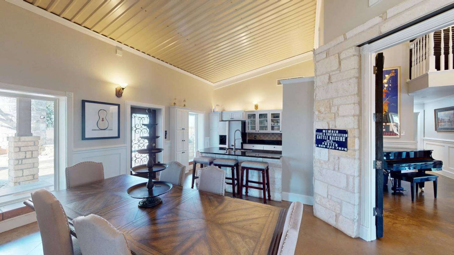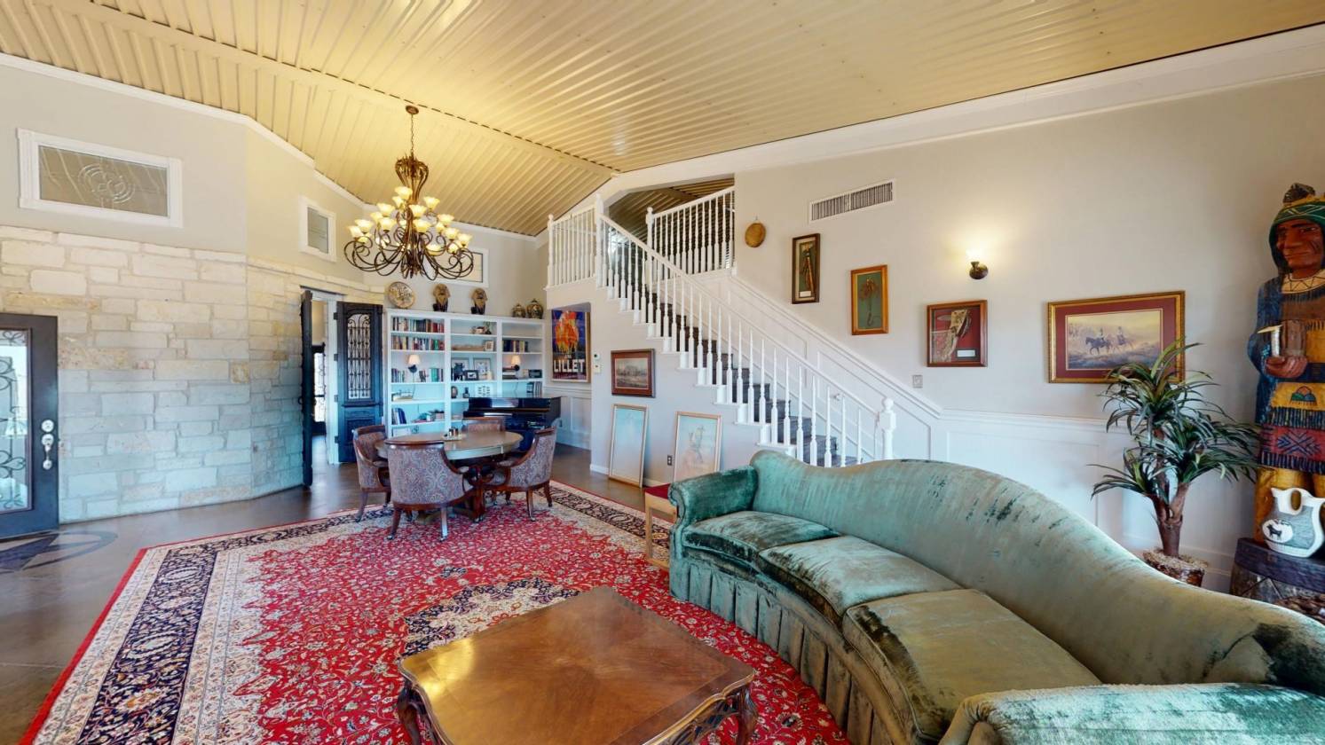 The main house features a floor-to-ceiling Austin stone fireplace, custom-built shelving, and handcrafted Spanish doors that add warmth and character. A versatile loft space can serve as a third bedroom, game room, or office. The detached guest house offers a private living area, bedroom, and bathroom, making it perfect for visitors or additional rental income. A four-car carport with storage and a workshop adds even more functionality.