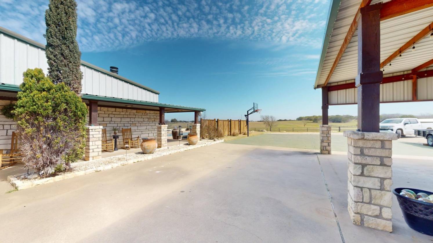 Situated on 65.01 acres of rolling countryside, this one-of-a-kind property in China Spring offers unparalleled 360-degree views, a mix of open pastures and wooded areas, and endless potential for ranching, recreation, or development. A gated entrance and winding paved drive leads to a barndominium-style main house and guest house, designed for comfort, function, and breathtaking scenery.