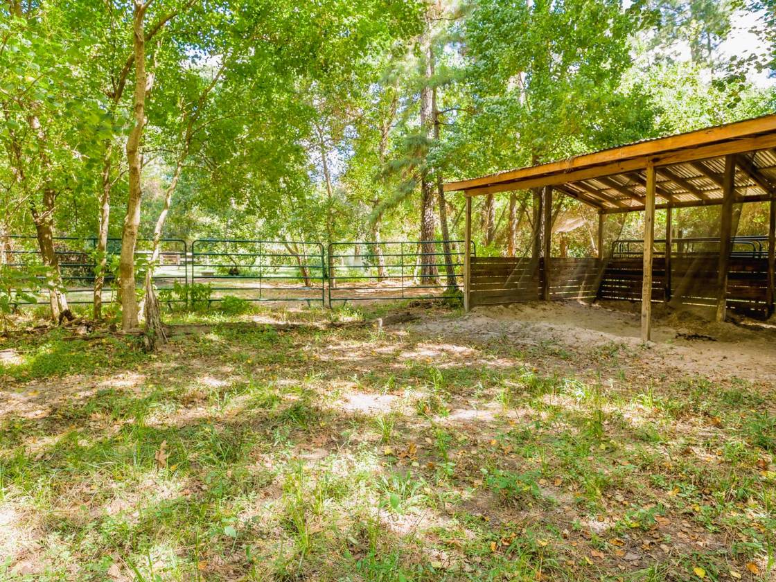 Equine-oriented Barndominium on 6 Acres in the Growing Woodlands/Magnolia Area Barndo and 6 ac- offering flexible living and working space designed for an equine or veterinary setup. The property features approximately 2,000 SF of living space upstairs with 3 bd/2ba, plus 3,000 SF of functional space downstairs, including a 2,000 SF office/work/barn area with a 1/2 bath and a 1,000 SF stall area. Equestrian facilities include four 12x12 stalls (with the option to convert a fifth stall) in the a/c), a feed room, and a large tack and/or living space. There’s also an office/kitchenette room, providing versatility for a vet practice, small business, or personal use. The 6-acre tract is thoughtfully laid out with rotational grazing pastures and a 16x24 loafing shed, offering a perfect blend of functionality and open space. Located in a rapidly expanding corridor near The Woodlands and Magnolia, this property combines modern country living with exceptional business potential.