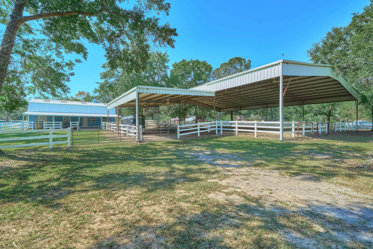- 8 stall barn with paddocks and tack room. Sturdy and durable barn. Barn has concrete slab and stalls are packed sand fill. Room to add more barn and stalls if needed