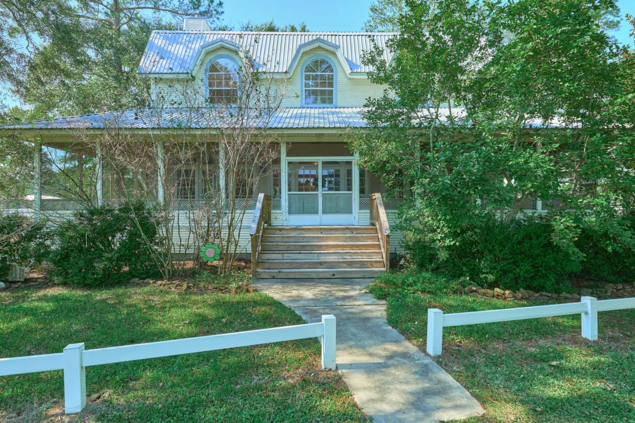 - There are two homes. The main house was built in 1994 with all modern conveniences and style, make to look like authentic farmhouse with tongue and groove pine wood floors, wrap around screened porch, gas log fireplaces and solid surface counters with expansive kitchen island. There is only one bedroom currently, but room to convert to add one, maybe two more bedrooms and a bath.