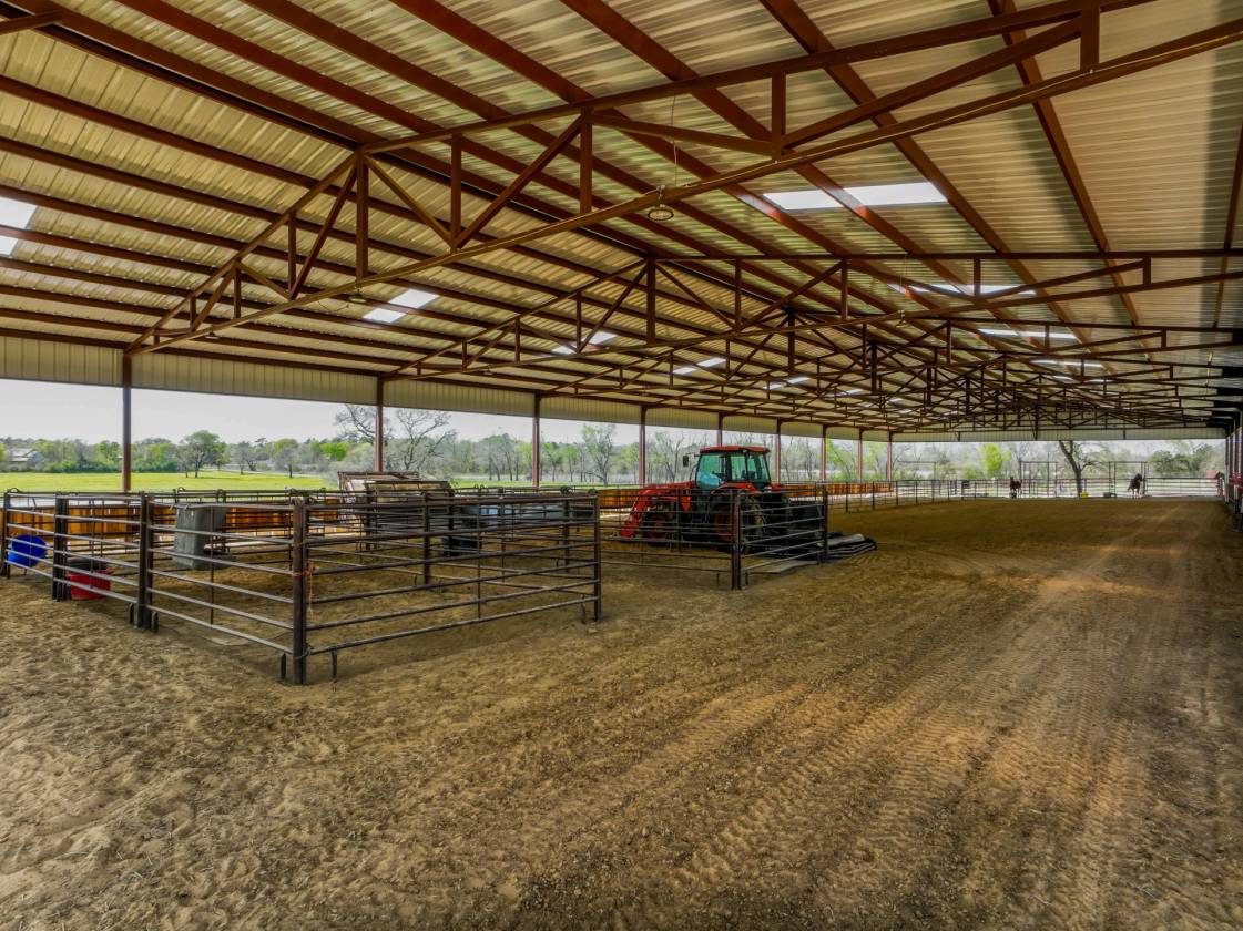 - 16 stalls w/ five additional stalls available with portable panels (8 complete indoor stalls with automatic waters & fans)