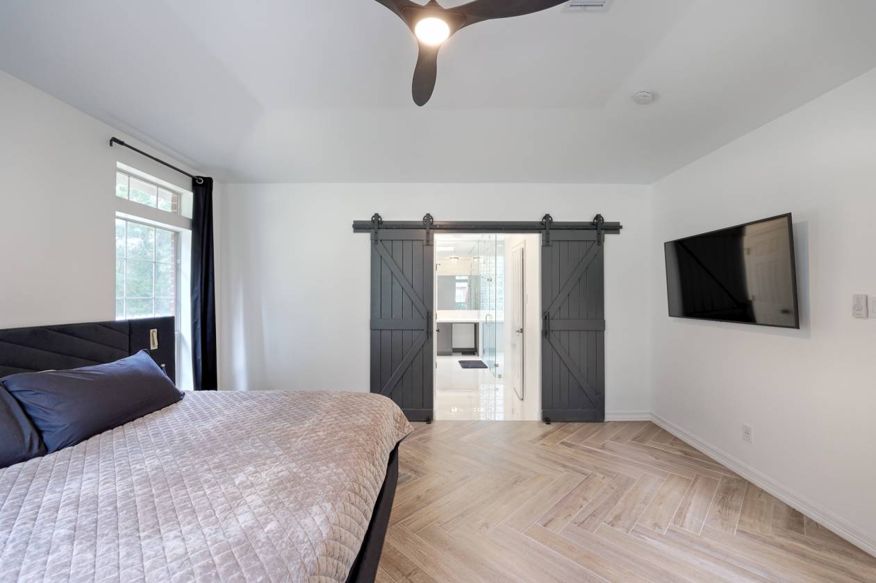 Beautiful 6-acre property in the prestigious Crown Oaks subdivision — horses allowed! This stunning 4-bedroom, 4.5-bath home features a fully updated interior with high-end finishes and an open, flexible floor plan. The immaculate kitchen showcases custom marble countertops that bring color and class to the space. Multiple living areas provide versatility for a home gym, sunroom, media room, or playroom. Outdoors, enjoy a private pool, a 4-horse barn with tack room, and a covered RV parking area with space for multiple vehicles — the perfect blend of elegance, comfort, and country charm. Refrigerator, washer, and dryer are included in the lease, along with select furnishings. The expansive upstairs bedroom offers endless possibilities — ideal as a game room, guest suite, or shared room for multiple children. Located in a serene gated community with trails, lakes, and a peaceful setting just minutes from shopping, dining, and top-rated Montgomery ISD schools.